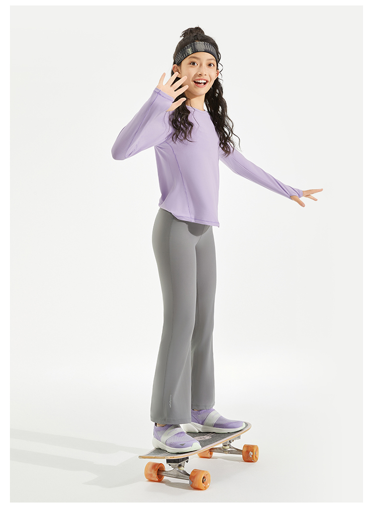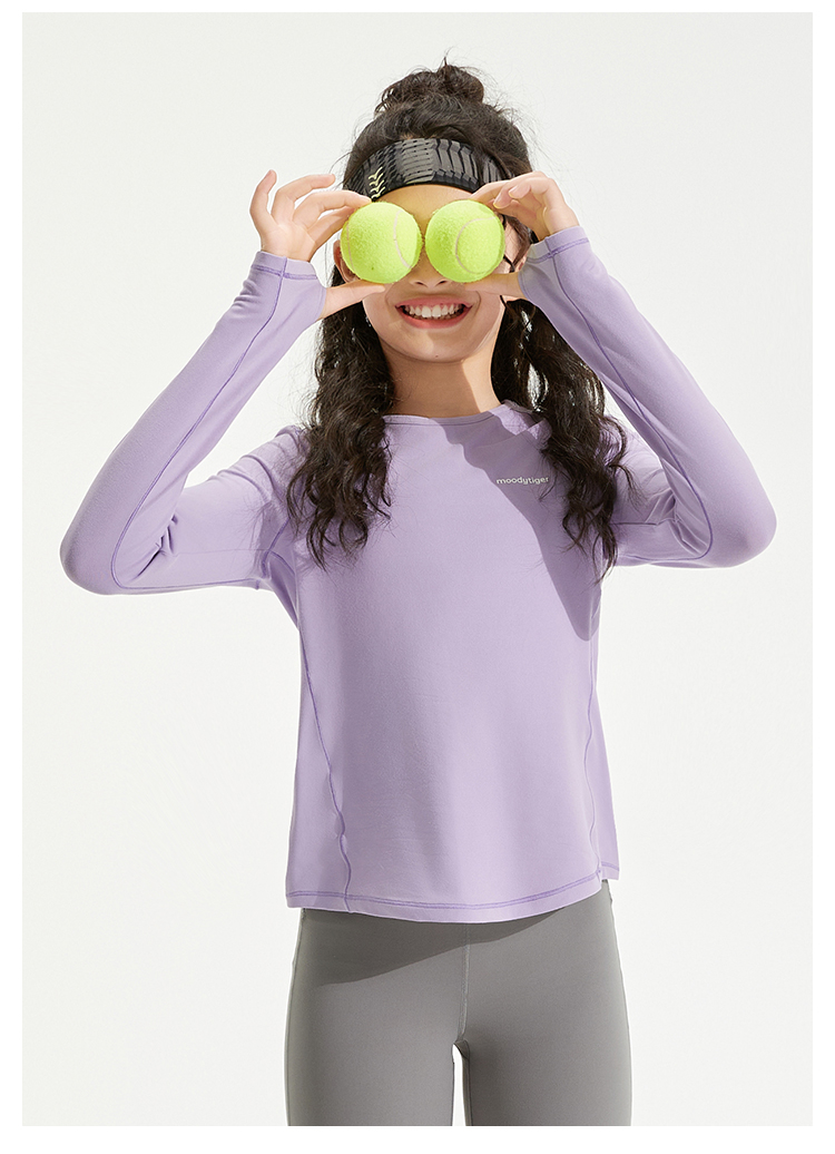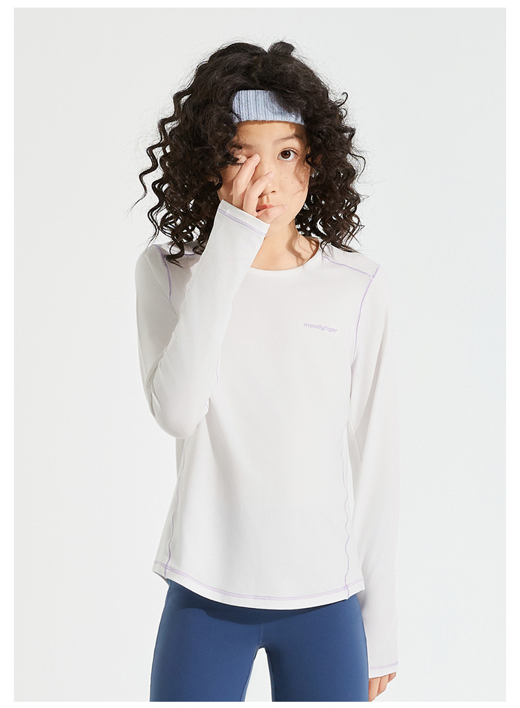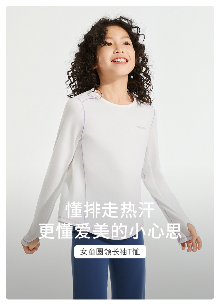 【24年秋新品】moodytiger儿童T恤24秋新款女童圆领透气吸湿排汗长袖上衣43210108