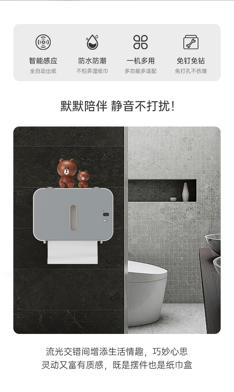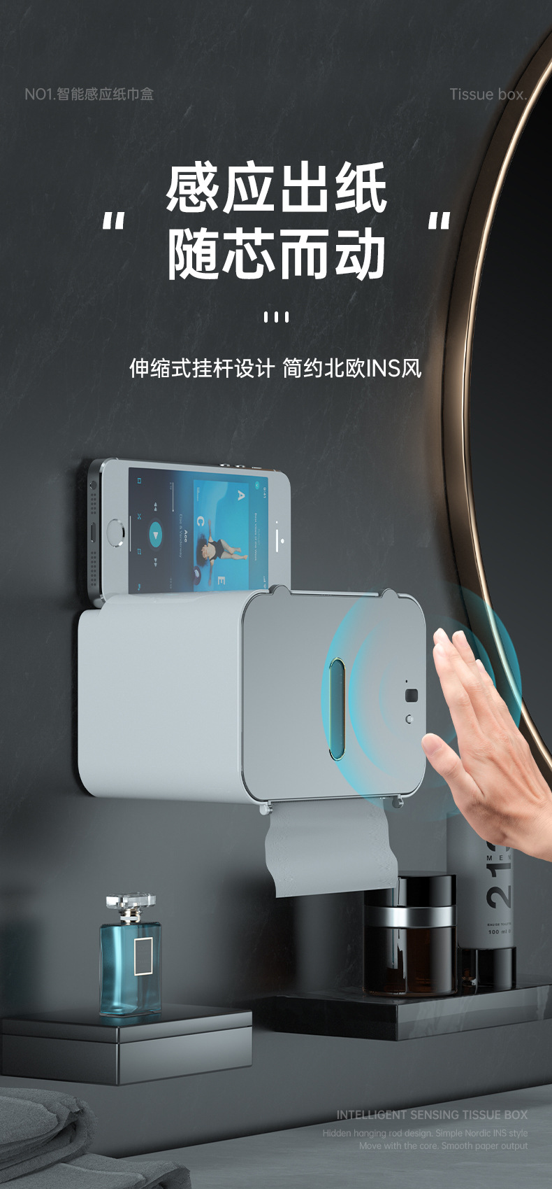 卫生间洗手间厕所纸巾盒感应自动出纸免打孔防水壁挂式抽纸卷纸盒