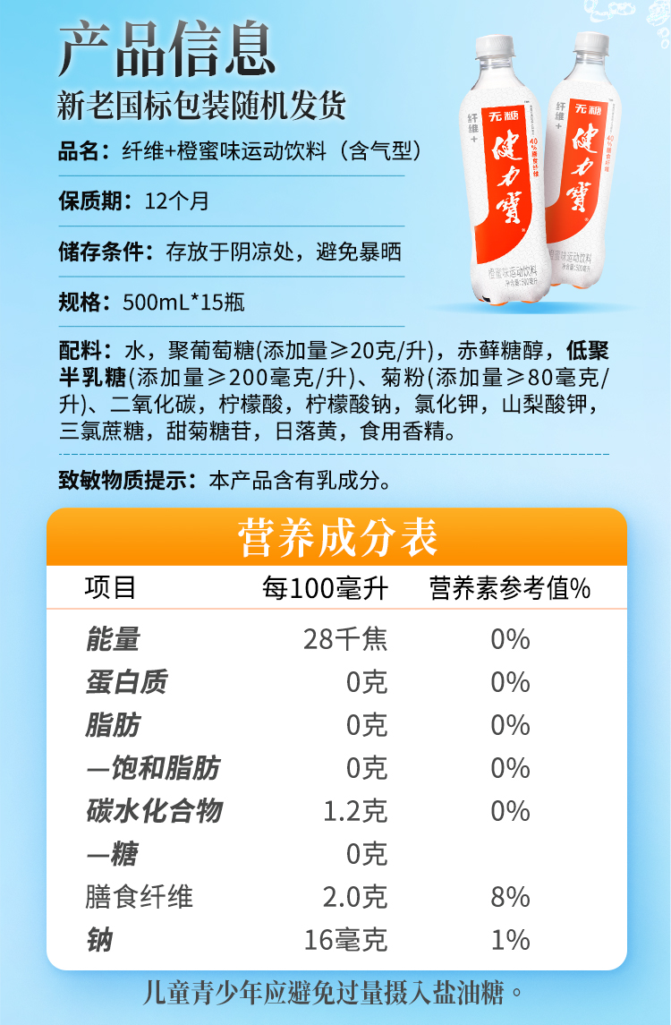 健力宝纤维+ 橙蜜味500ML*15瓶