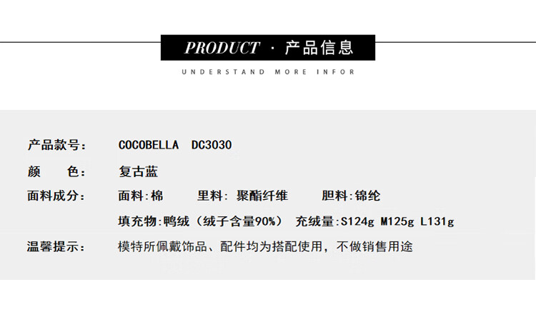 COCOBELLA[可溯源安心90绒]高支棉刺绣立领短款羽绒服DC3030