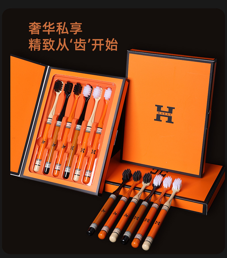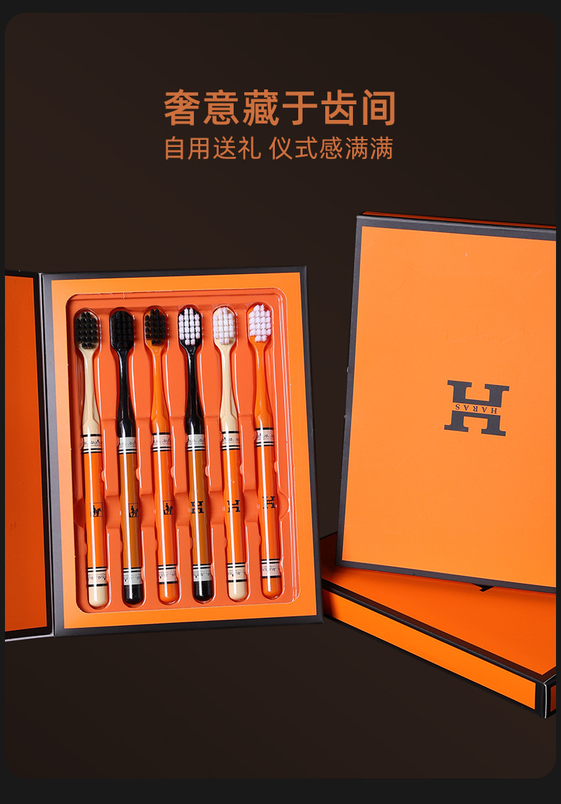 「轻奢颜值!6支装礼盒」高颜值宽头牙刷 成人家用旅行情侣细丝软毛牙刷口腔护理