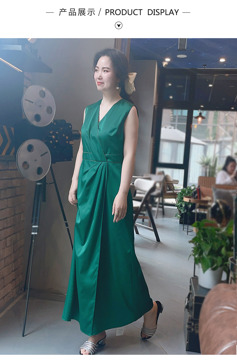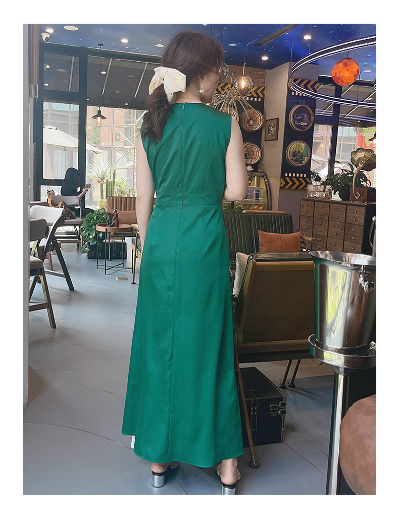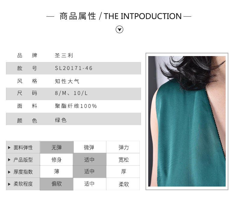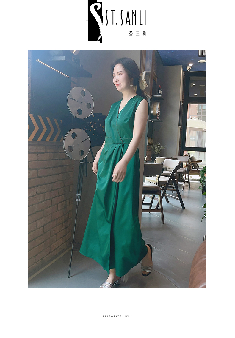 圣三利女装V领无袖纯色连衣裙SL2017146