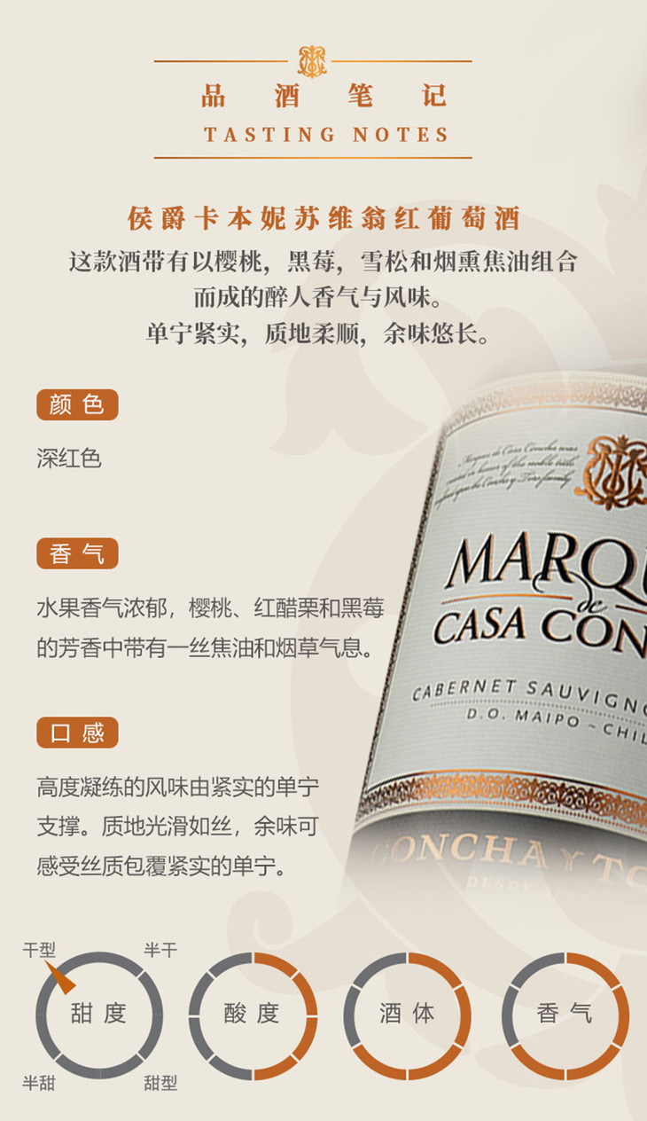 进口智利干露侯爵卡本妮苏维翁红葡萄酒750ml官方包邮精选红酒