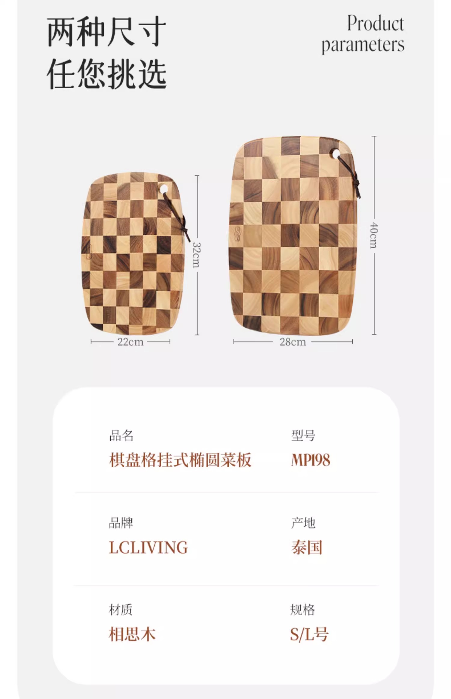 【4月优享】Llcliving泰国相思木切菜板无漆无蜡粘板家用切水果砧板厨房案板