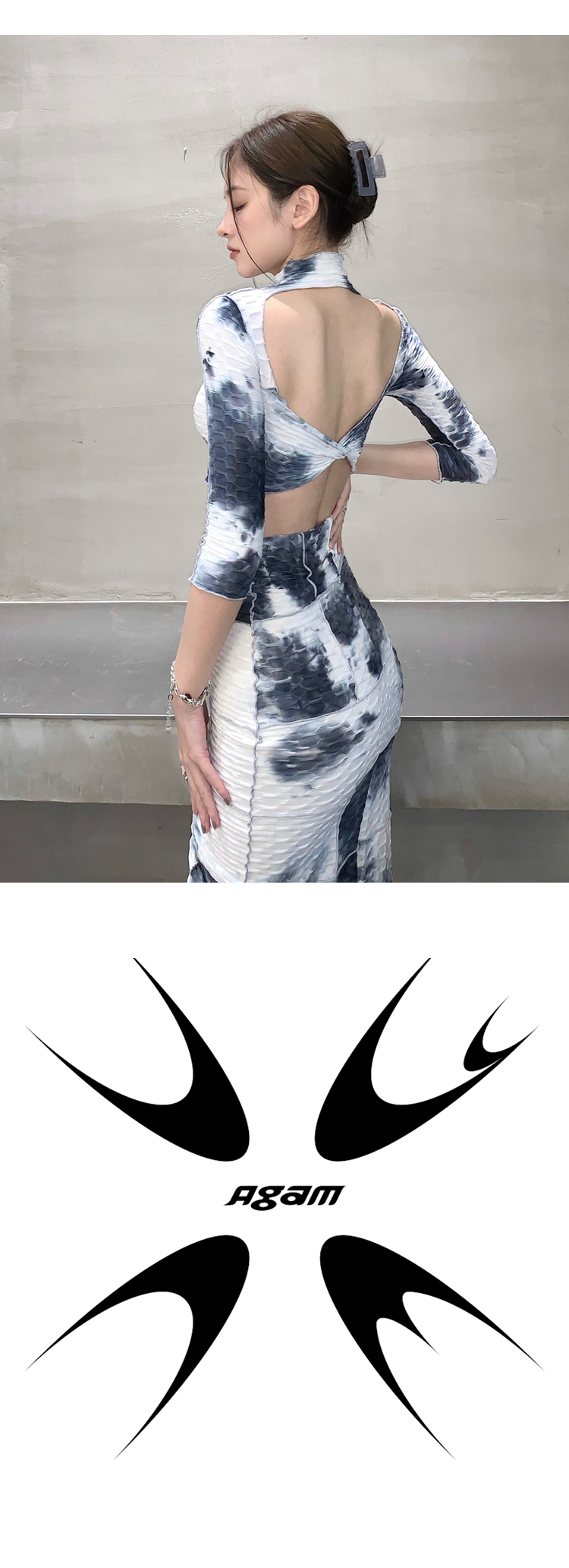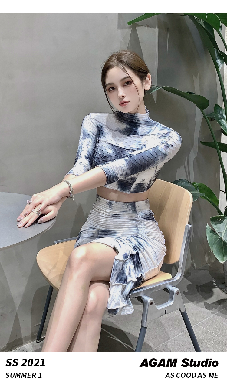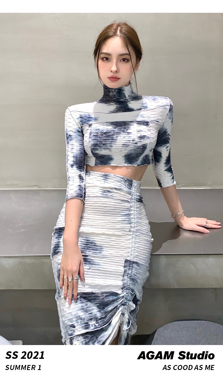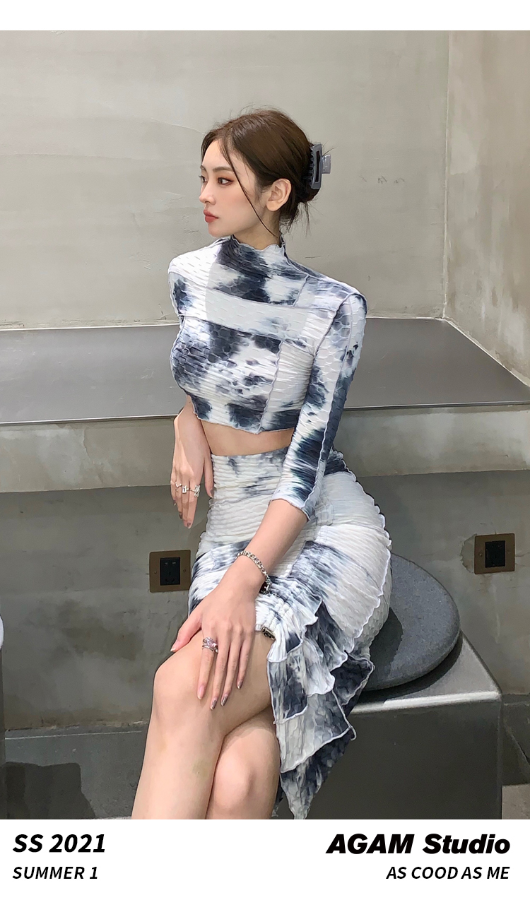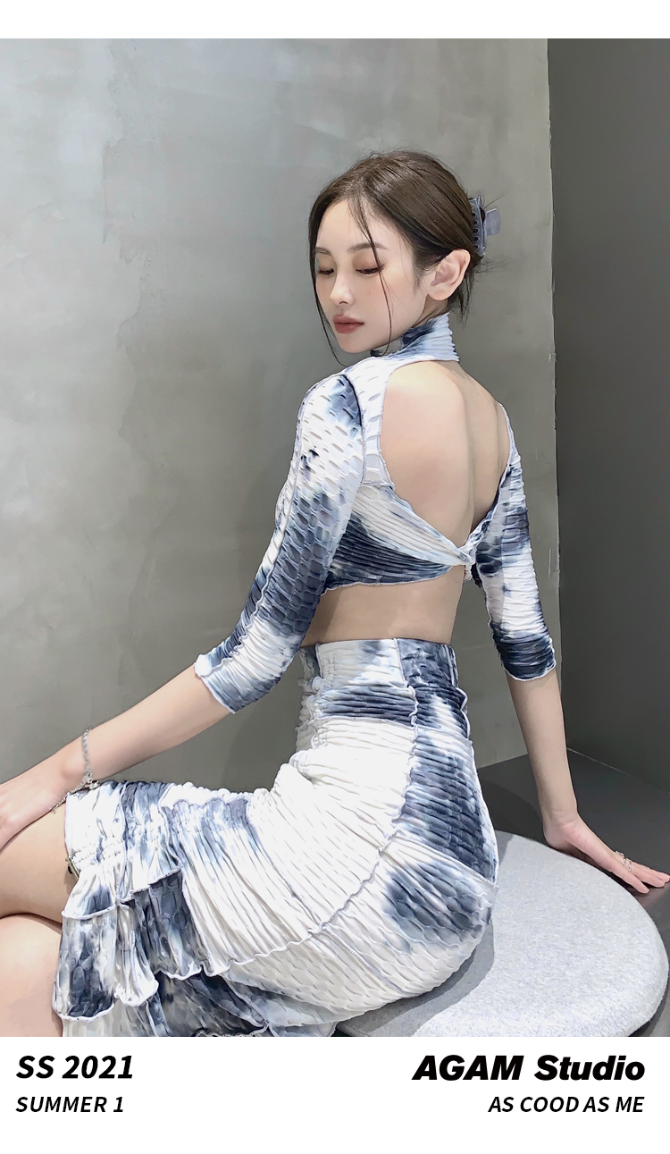 AGAM STUDIO 21SS原创 性感露背扎染半裙长裙显瘦套装连衣套装裙