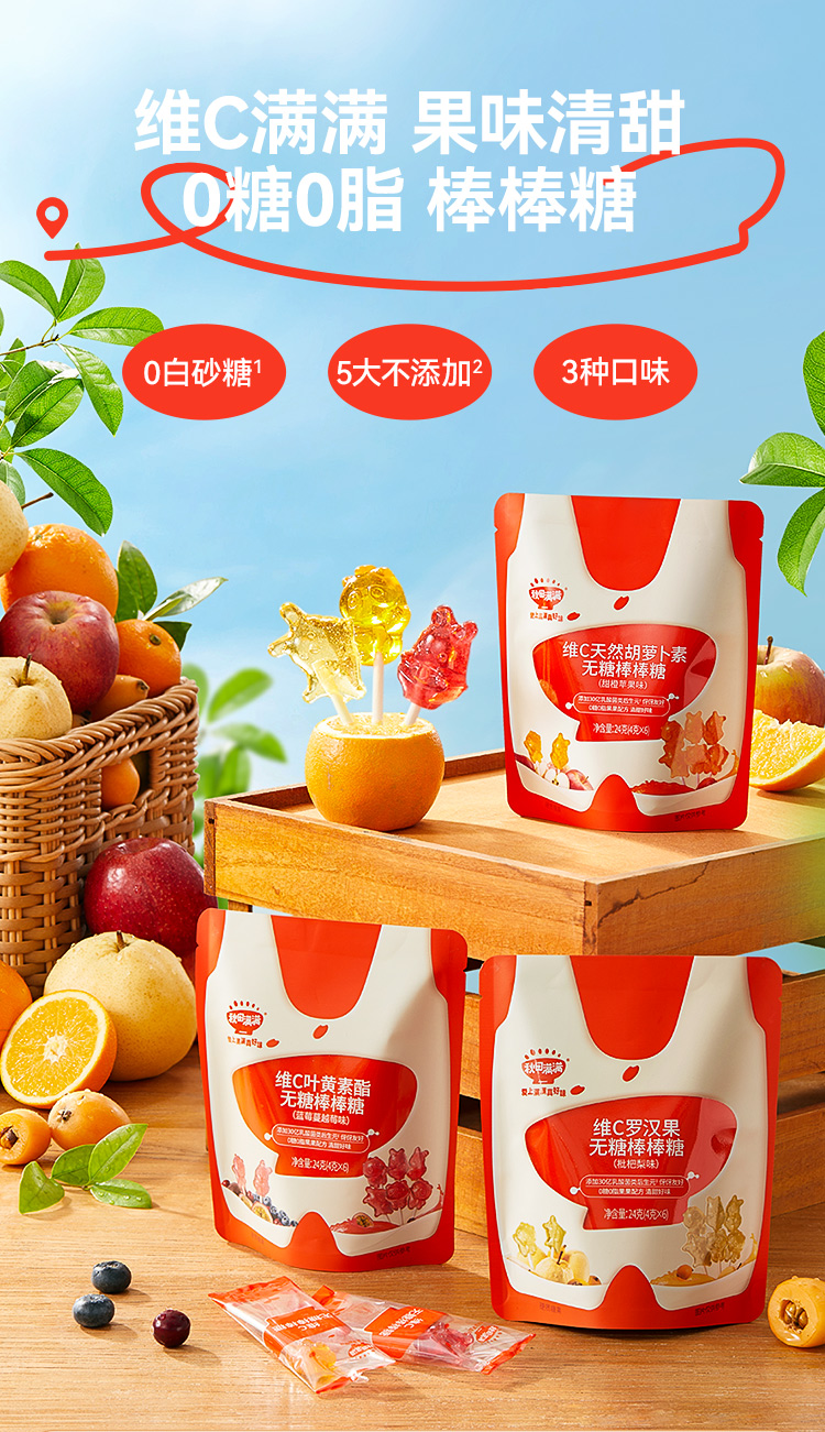 【零食】维C棒棒糖24g 罗汉果甜润枇杷梨味/叶黄素酯蓝莓蔓越莓味,送辅食食谱