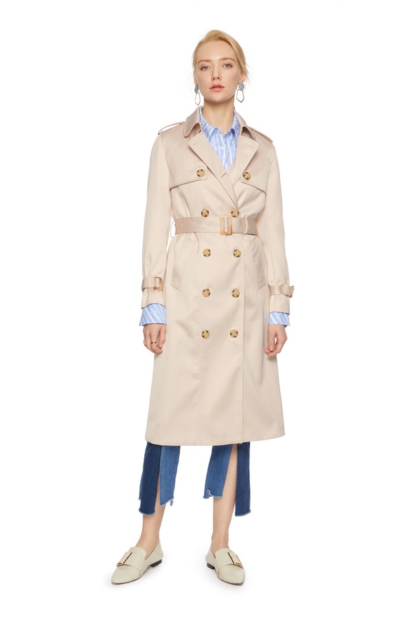 LNNNS 奶油色双排扣长风衣 6061