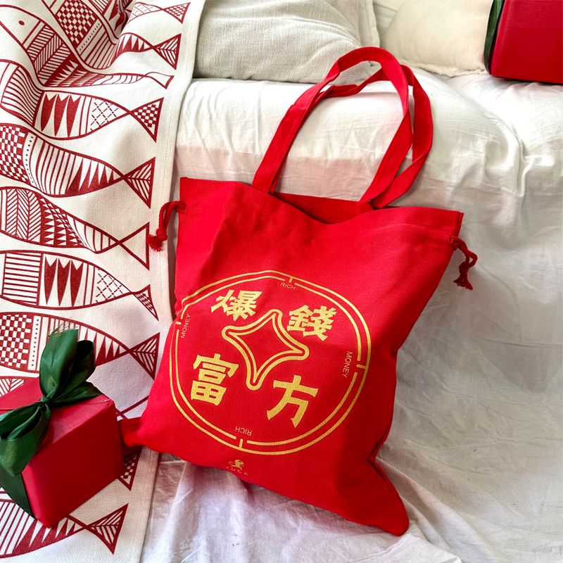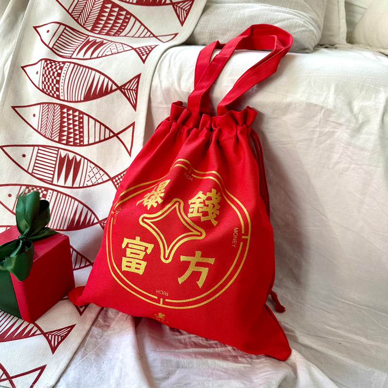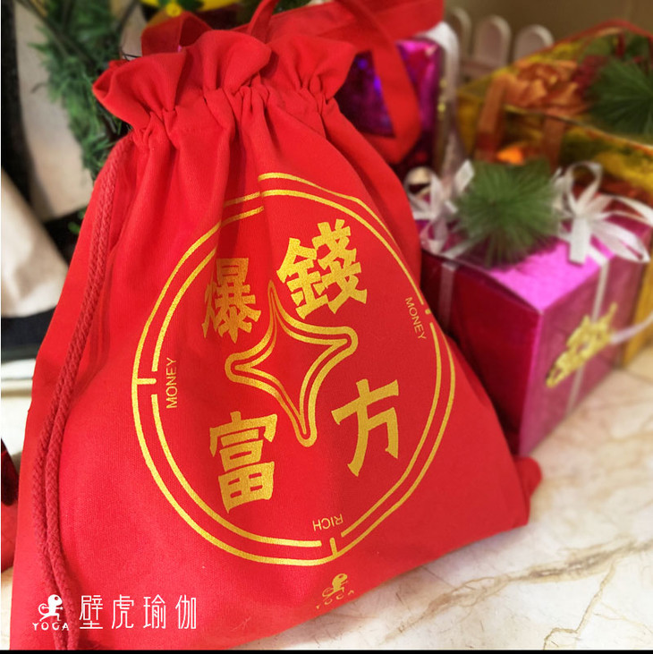 (现货秒发)壁虎瑜伽【钱方暴富包】大红布袋