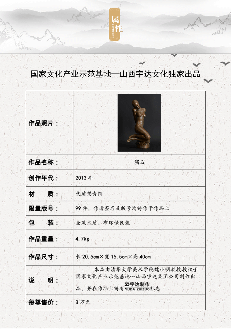 宇达青铜全铜摆件 魏小明作品《媚玉》限量99件 家居艺术装饰摆件 高40cm