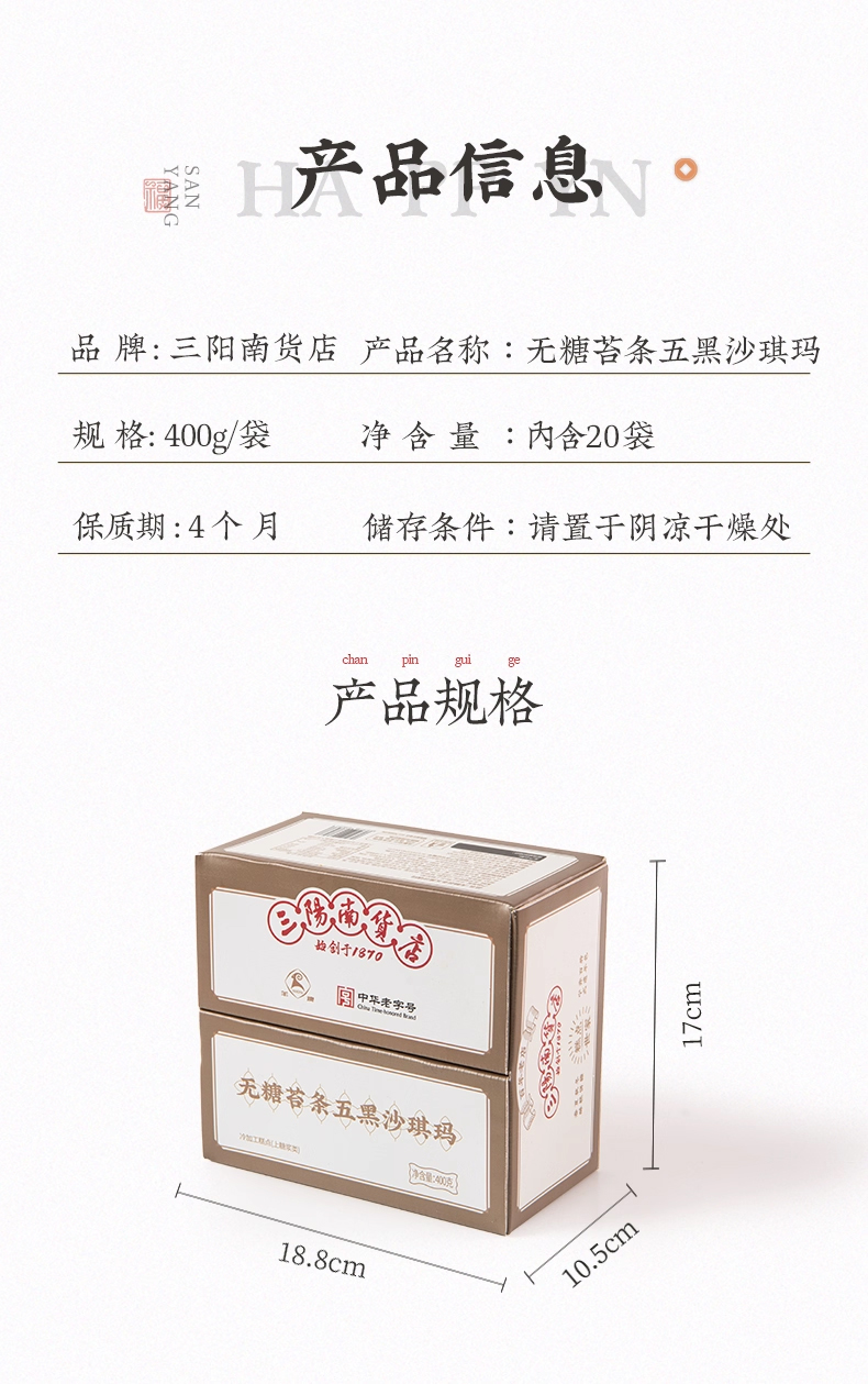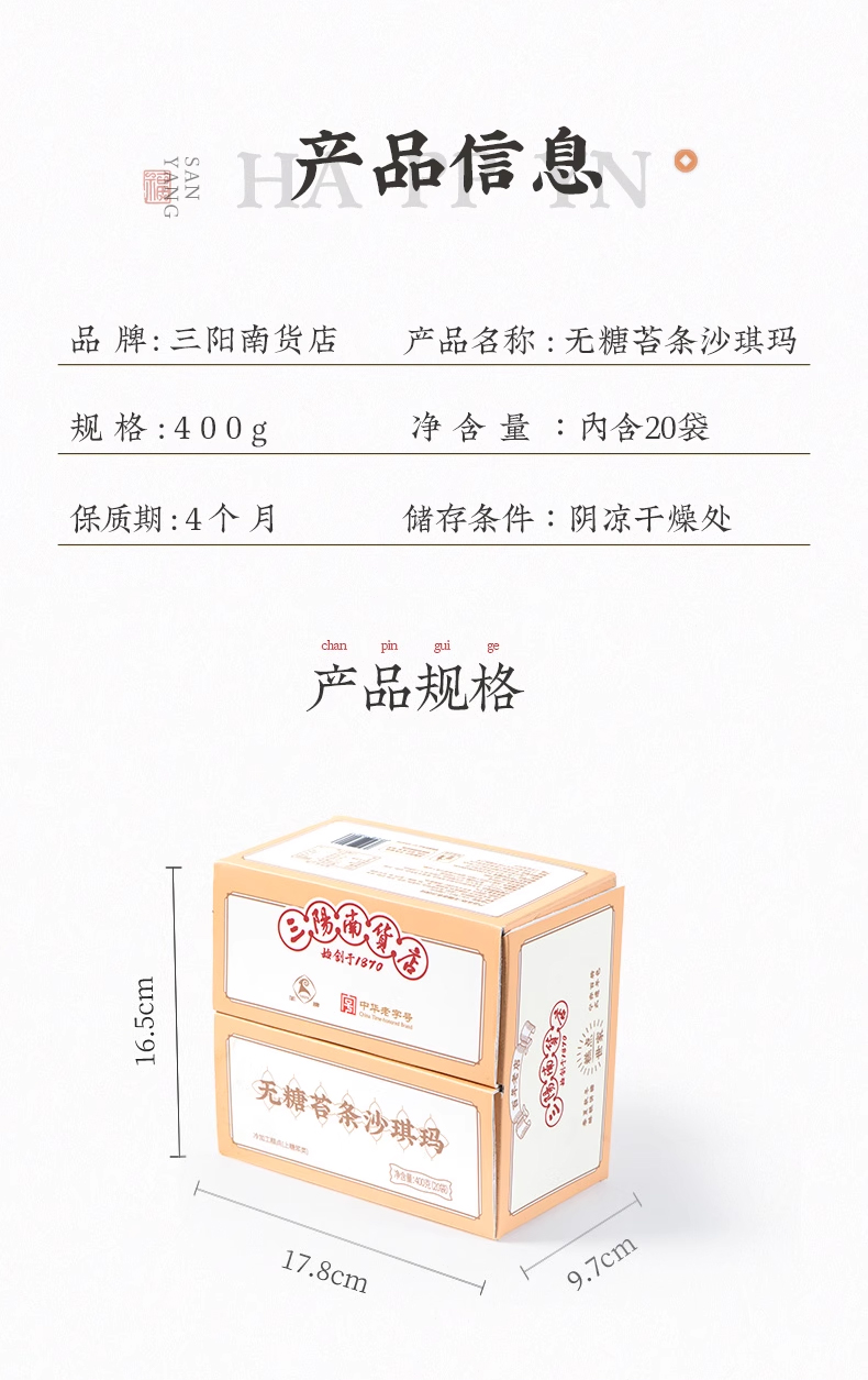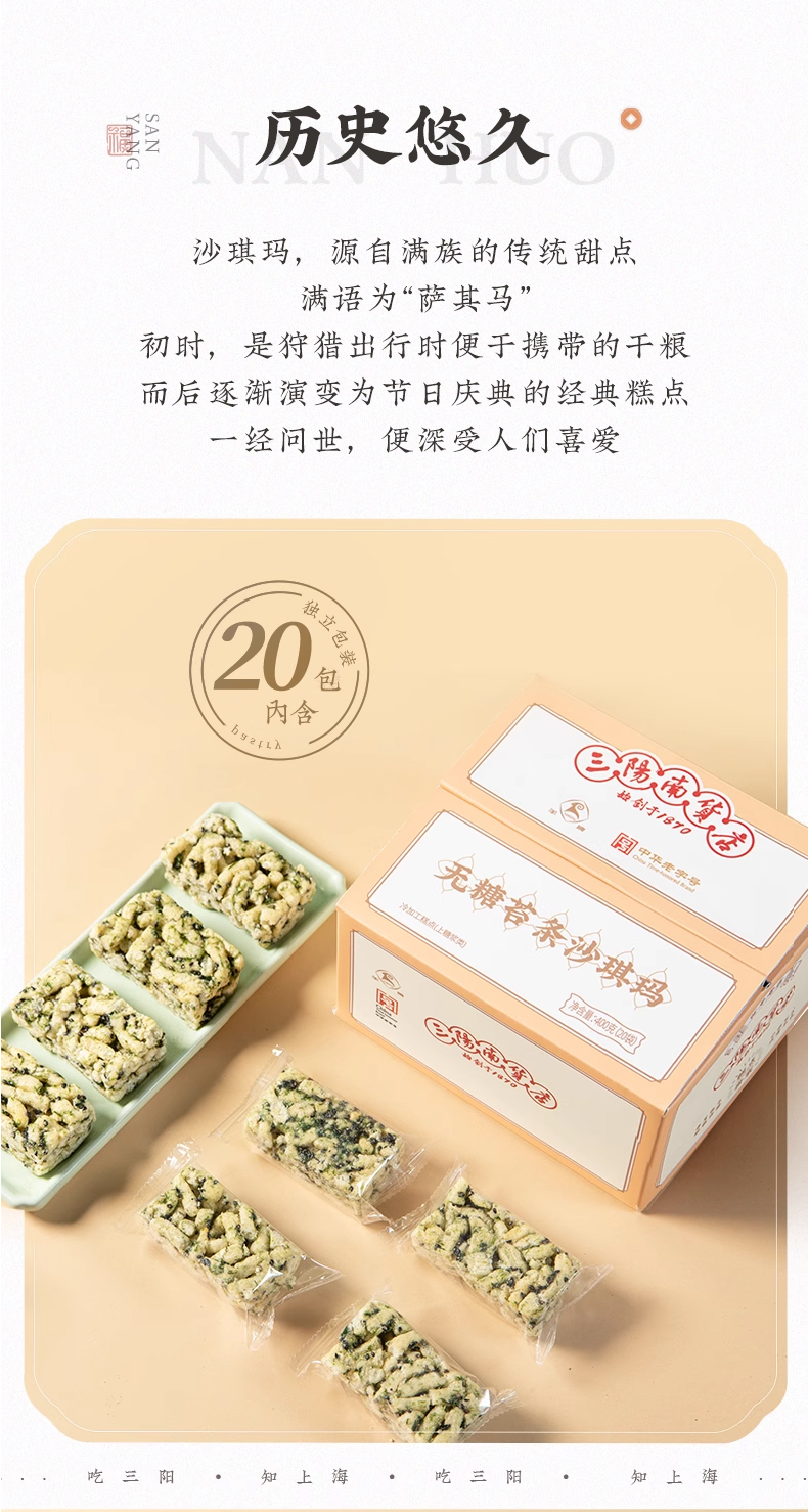 【三阳南货店】无糖苔条沙琪玛400g+苔条五黑沙琪玛400g
