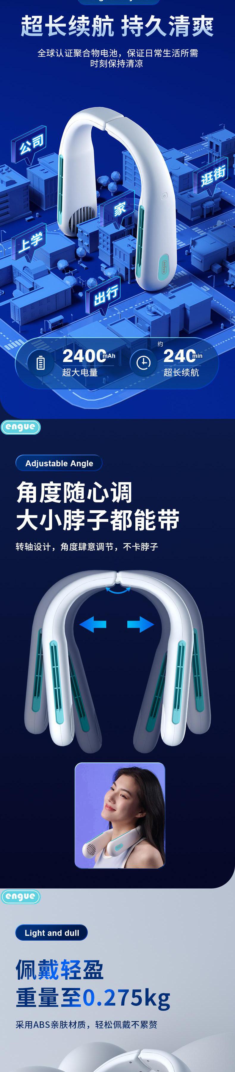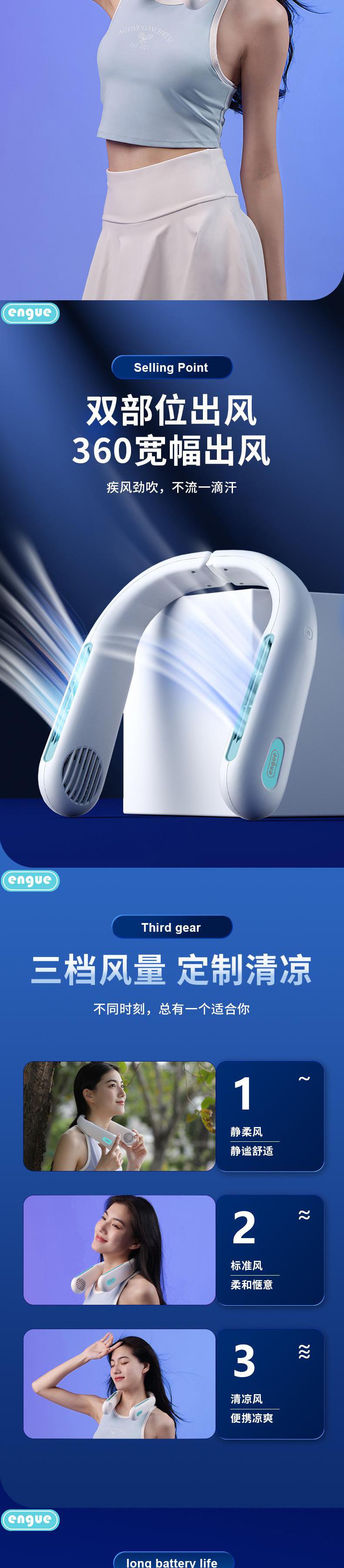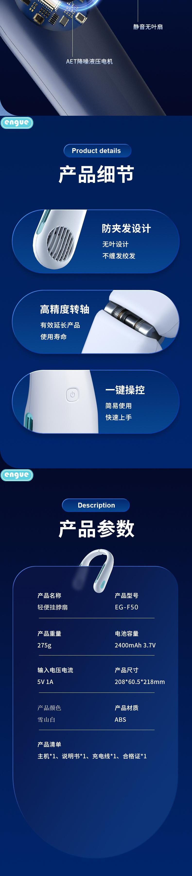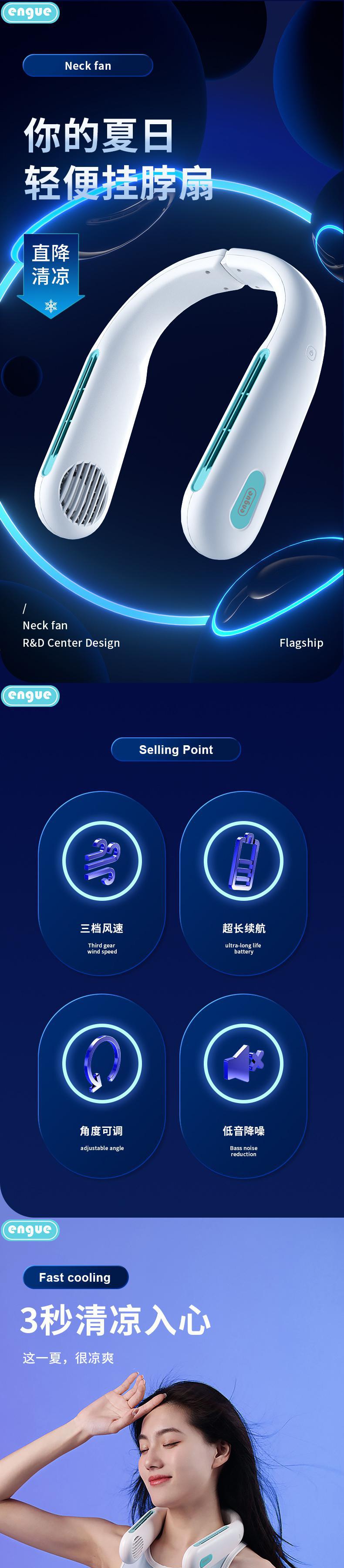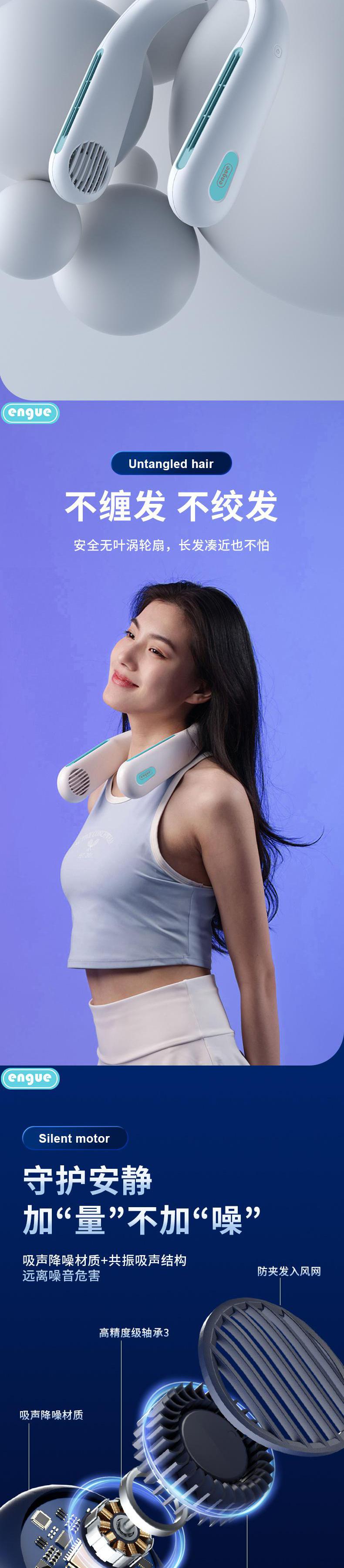 engue恩谷 便携折叠挂脖风扇 EG-F50轻量化涡轮风道解放双手户外降温