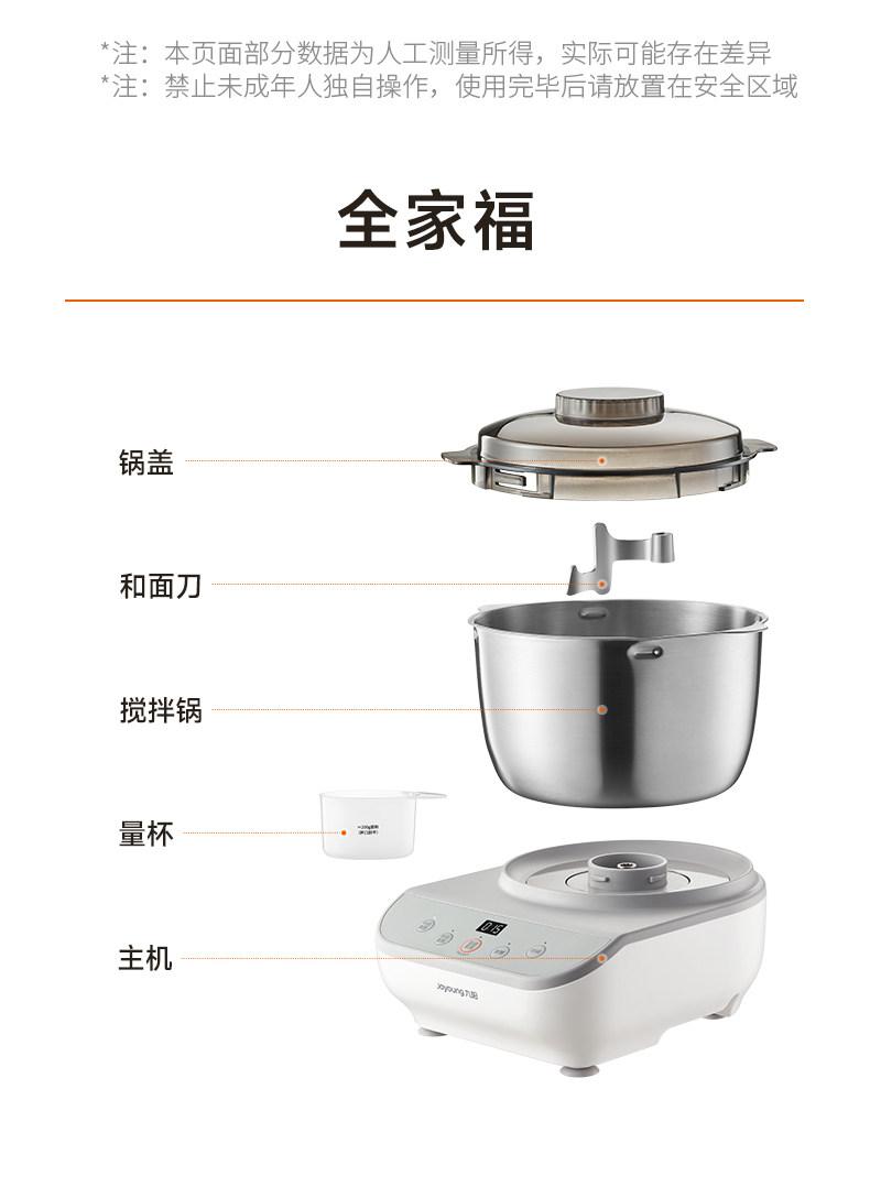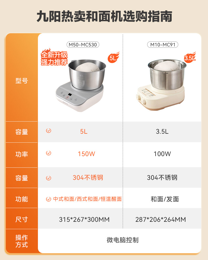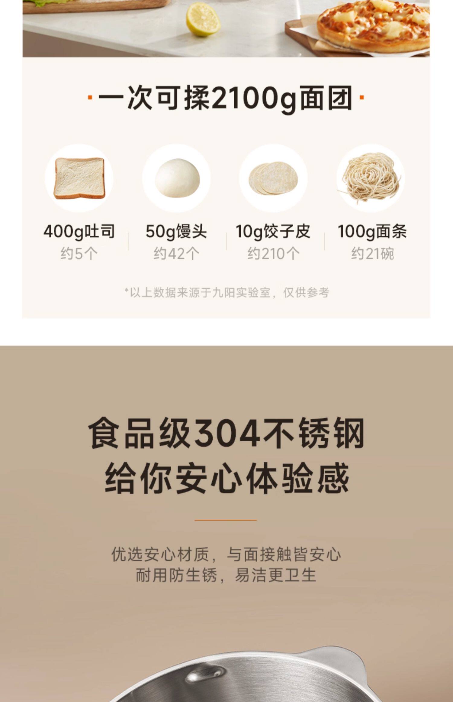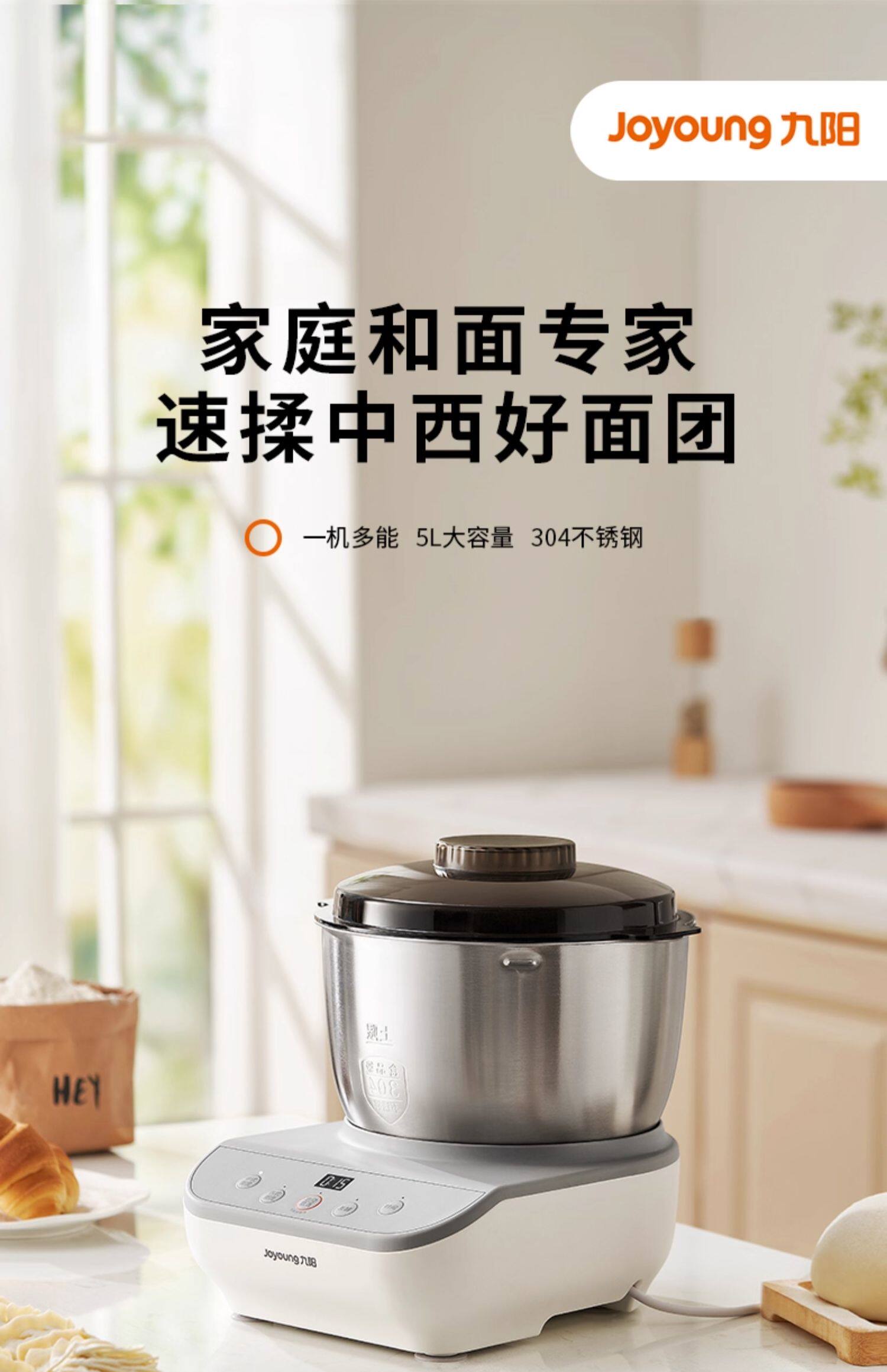 九阳(Joyoung)多功能家用厨师机和面机 304不锈钢压面机 全自动搅面机5L大容量 M50-MC530