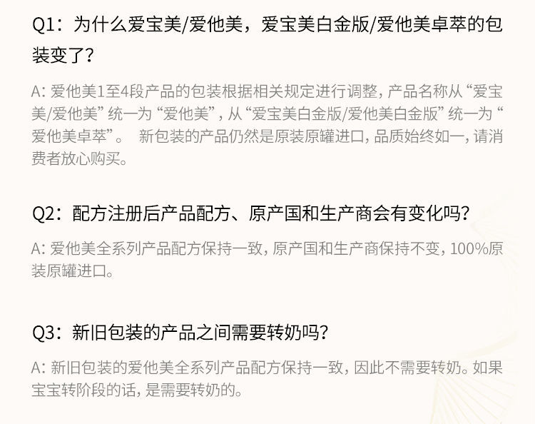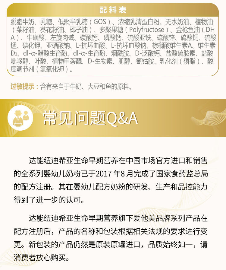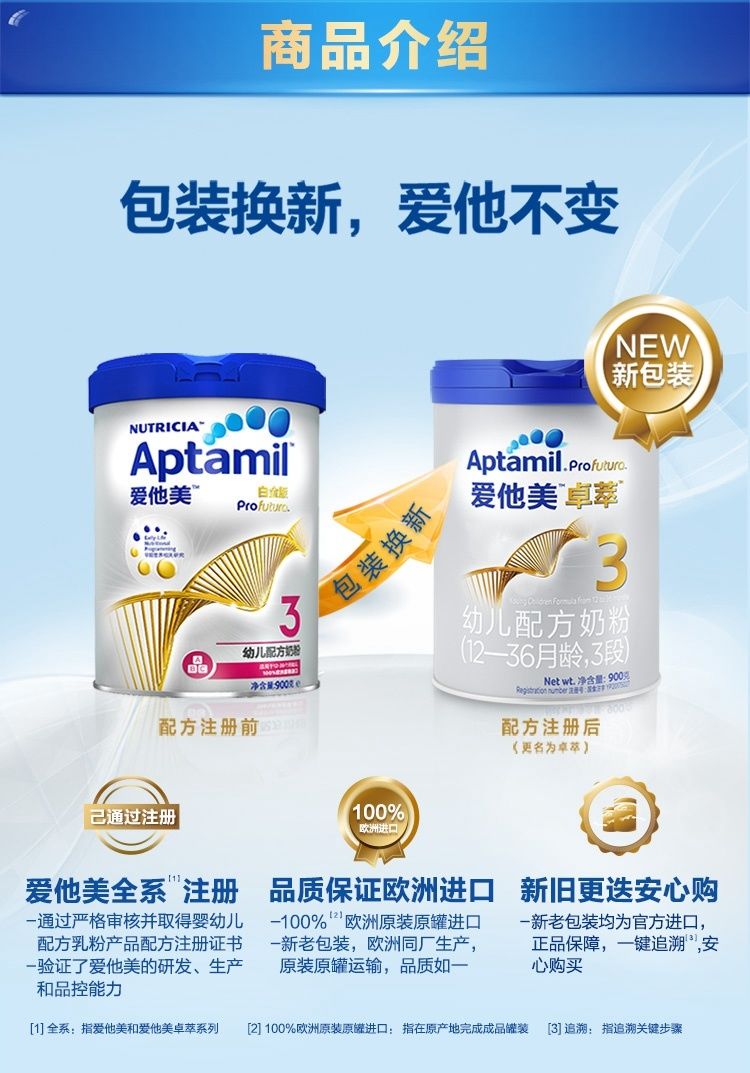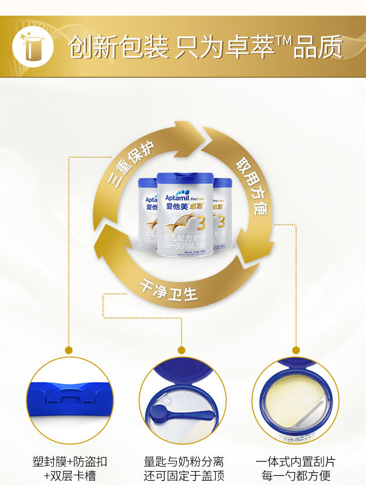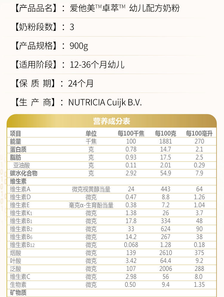 爱他美卓萃白金版奶粉3段12-36个月900g
