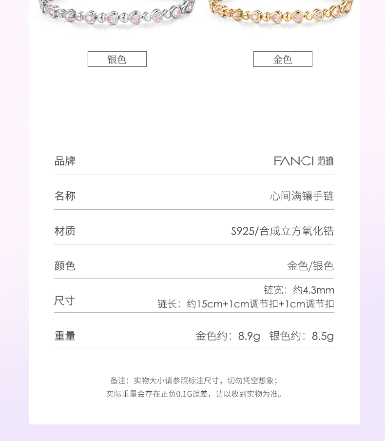 【心间满镶手链】Fanci范琦银饰女Tennis手环ins时尚个性轻奢生日礼物 下单赠精美礼盒+顺丰速运+运费险