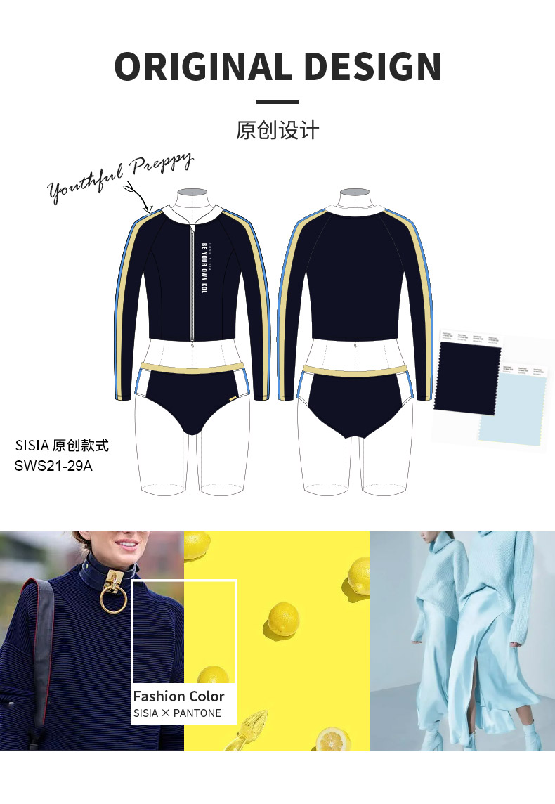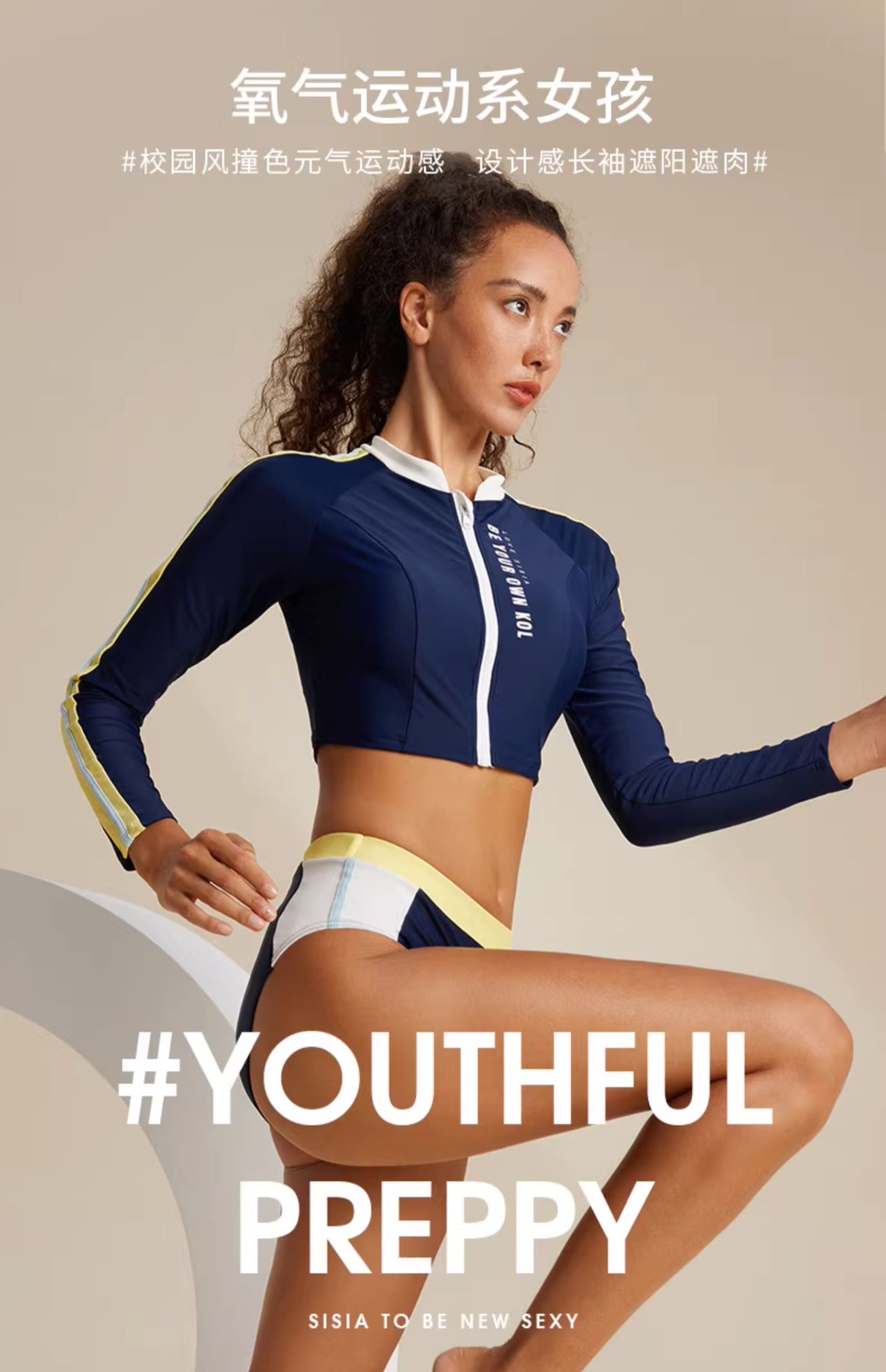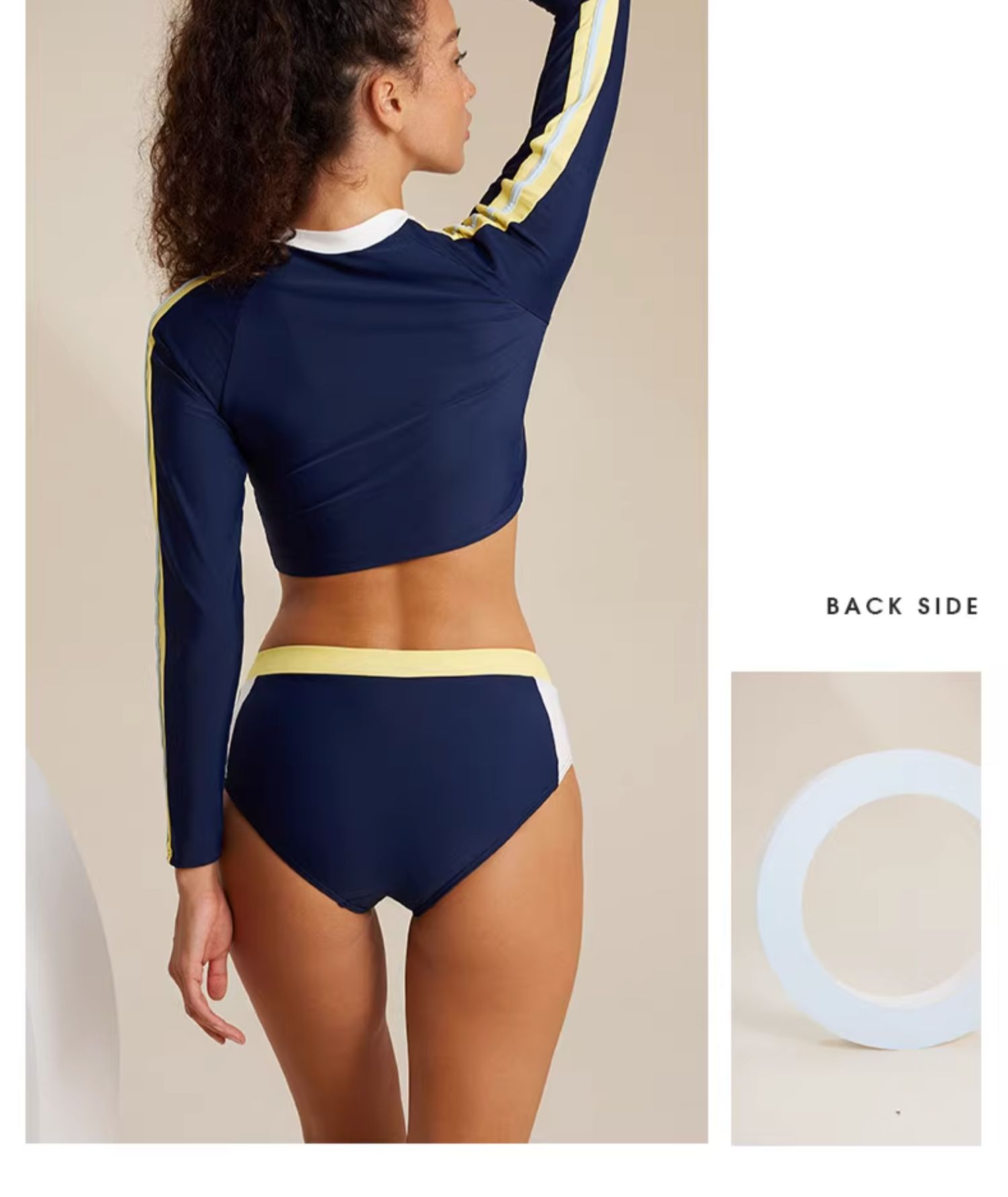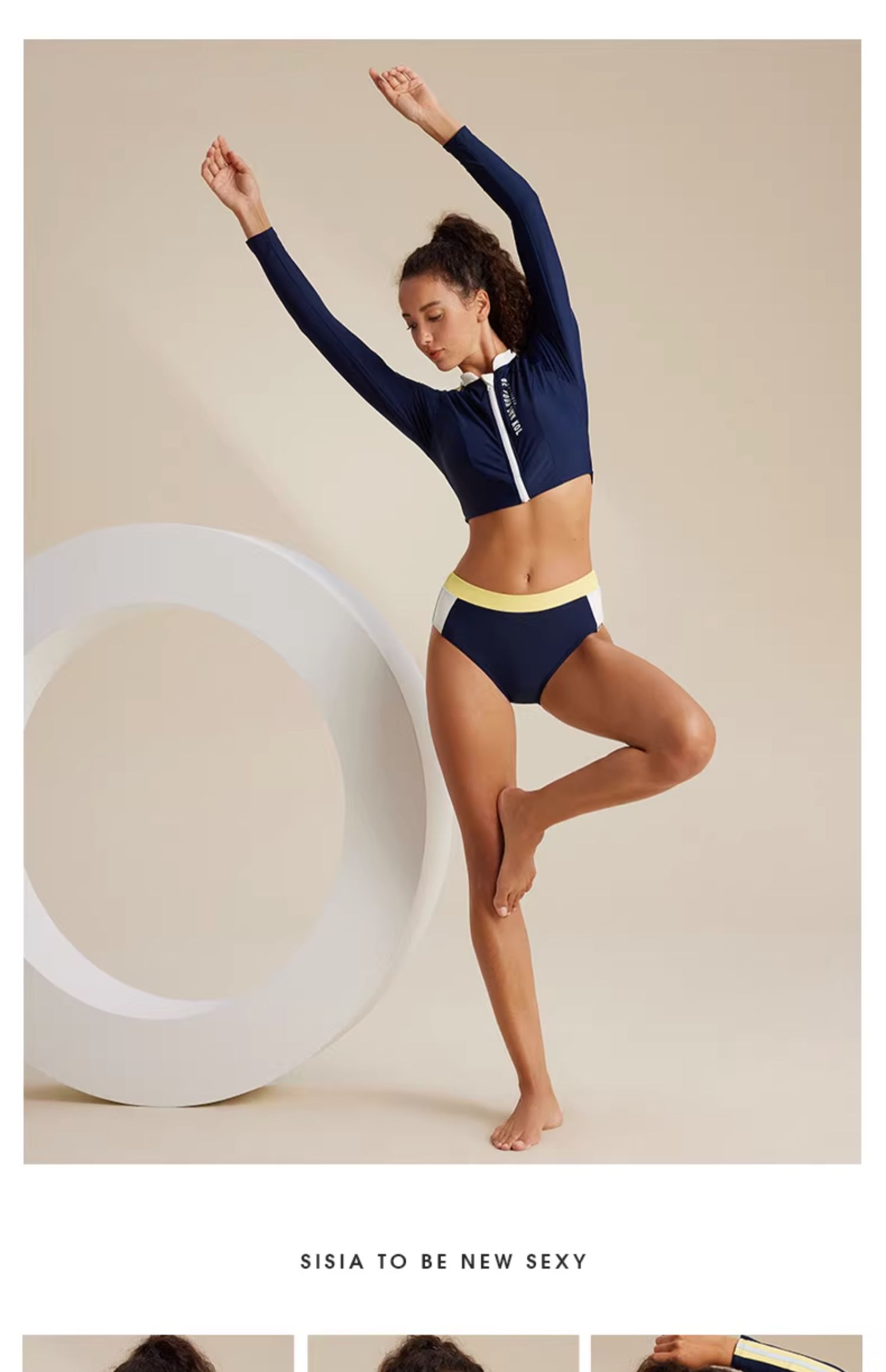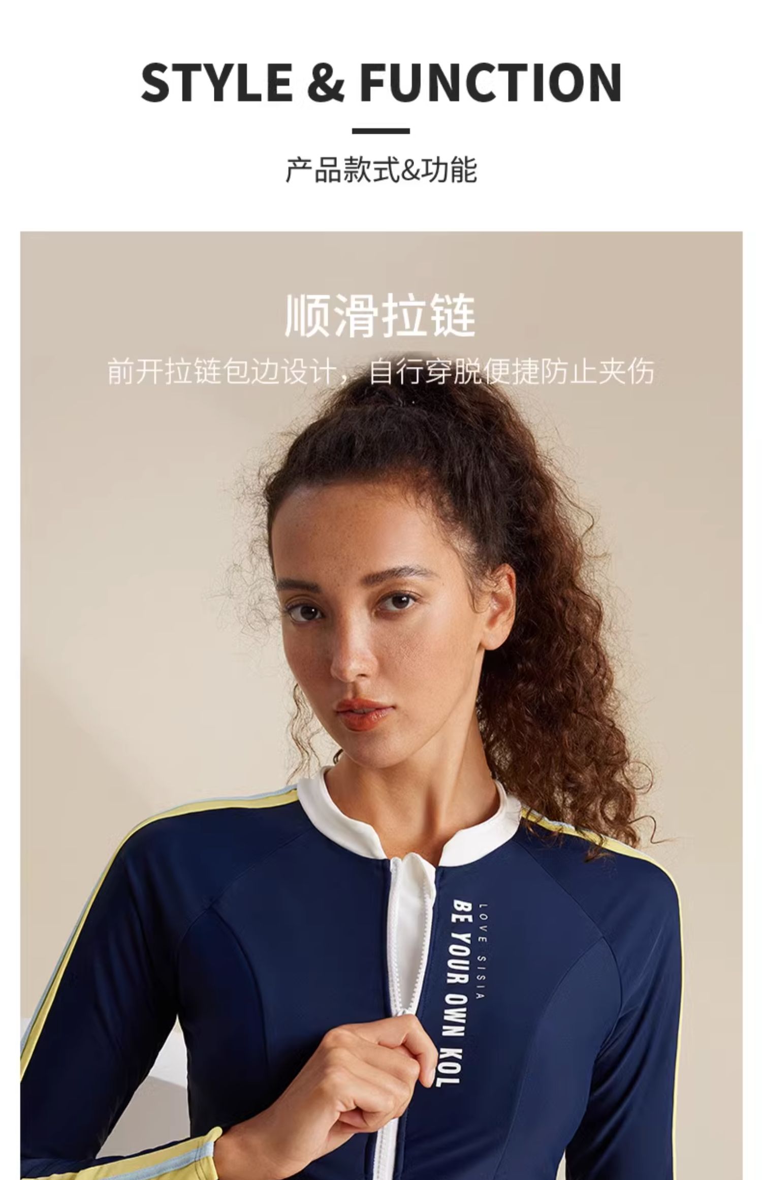 sisia2023新款泳衣女夏时尚撞色性感长袖防晒冲浪运动分体泳衣