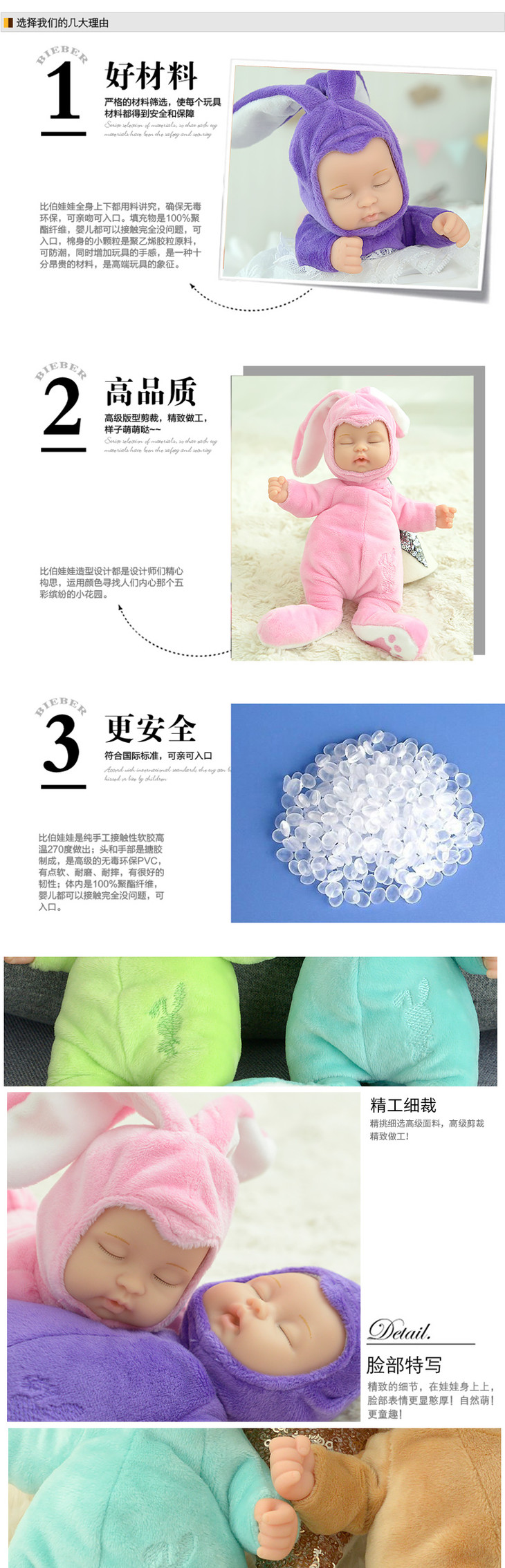 【已下架】积分购 | 比伯娃娃bieber 仿真婴儿安抚玩具 睡眠娃娃毛绒玩偶(不支持无理由退换)[福利品]