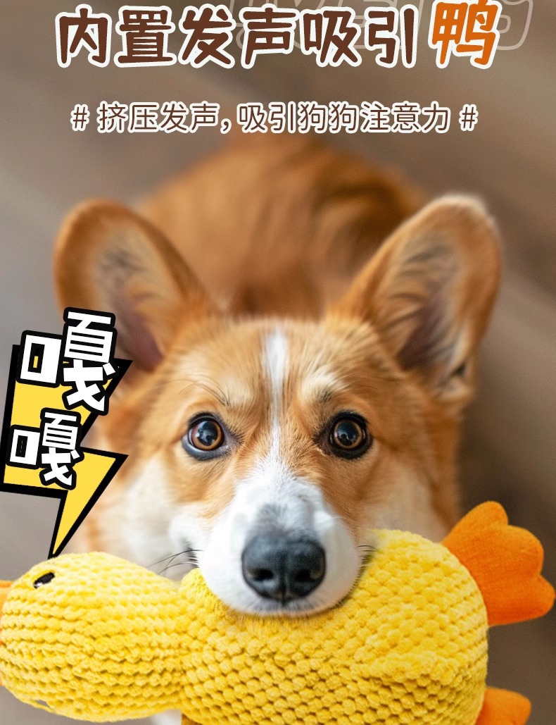 小黄鸭狗狗玩具自嗨发声解闷神器毛绒玩偶陪伴鸭菠萝绒玩具/个