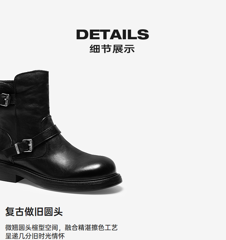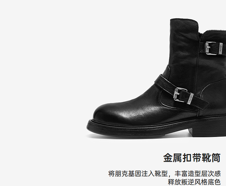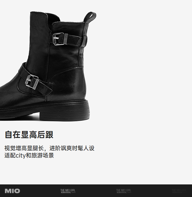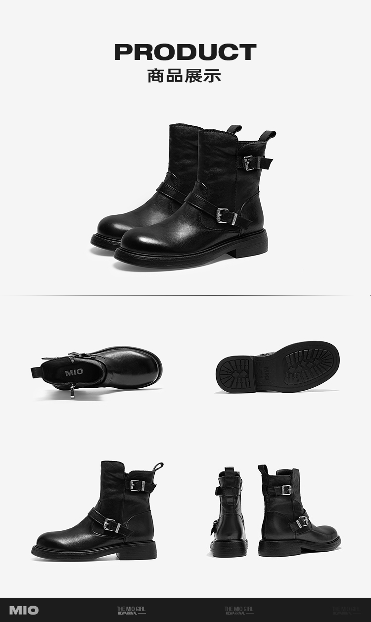 MIO米奥水洗牛皮切尔西靴皮带扣擦色褶皱马丁靴女鞋M255672601