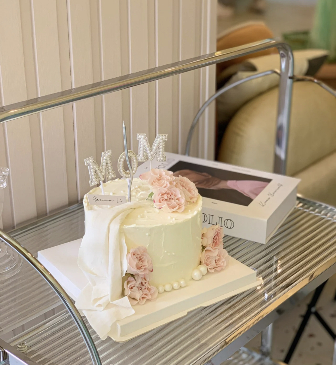母亲节女神白色高级绸缎鲜花奶油蛋糕妈妈