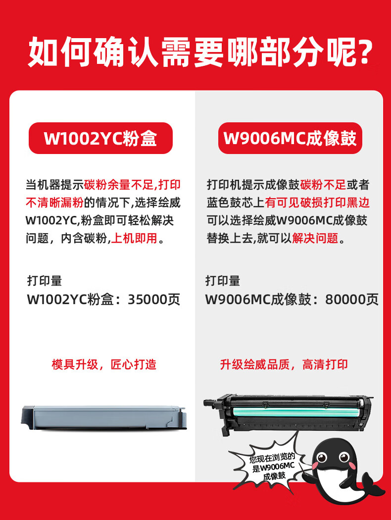 绘威W1002YC粉盒 适用惠普HP LaserJet Managed MFP M72625dn M72630dn打印机硒鼓 墨盒 碳粉盒 墨粉盒