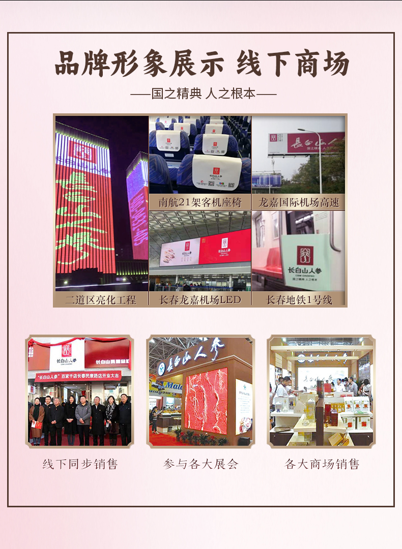 吉林省政府授权:“长白山人参”全国独家品牌运营商。主要经营长白山人参有关产品和长白山特产类产品