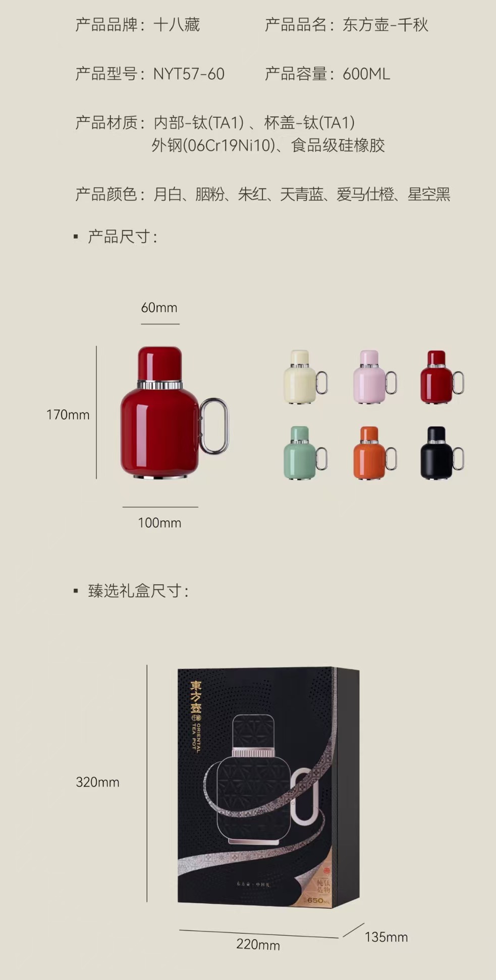 【高档纯钛闷茶壶】东方壶纯钛焖茶壶保温壶迷你便携车载焖泡壶家用保温热水壶暖水壶