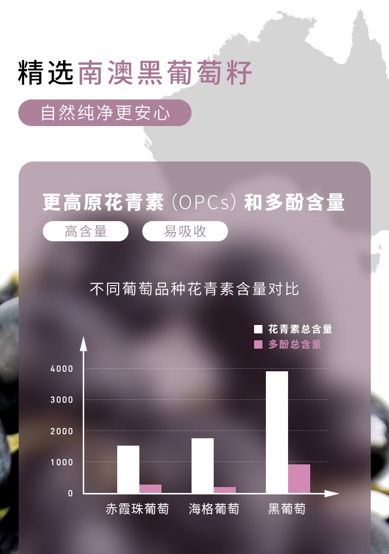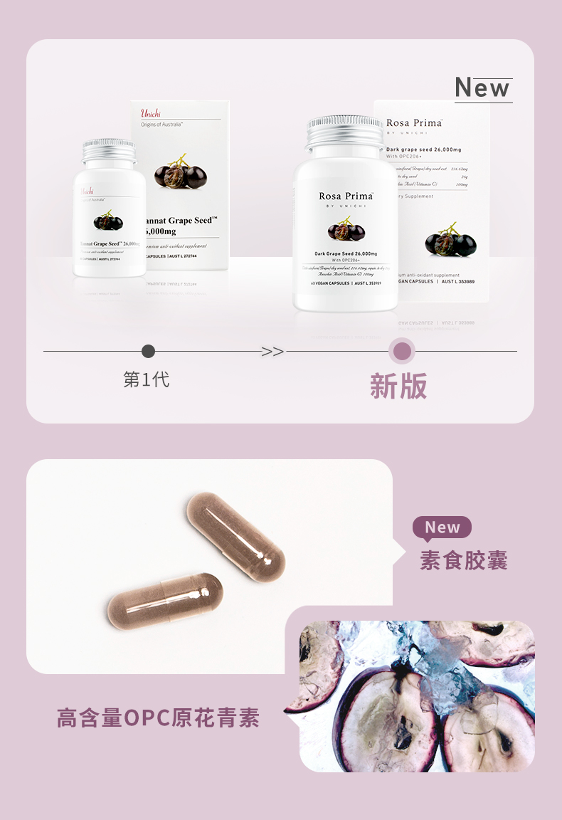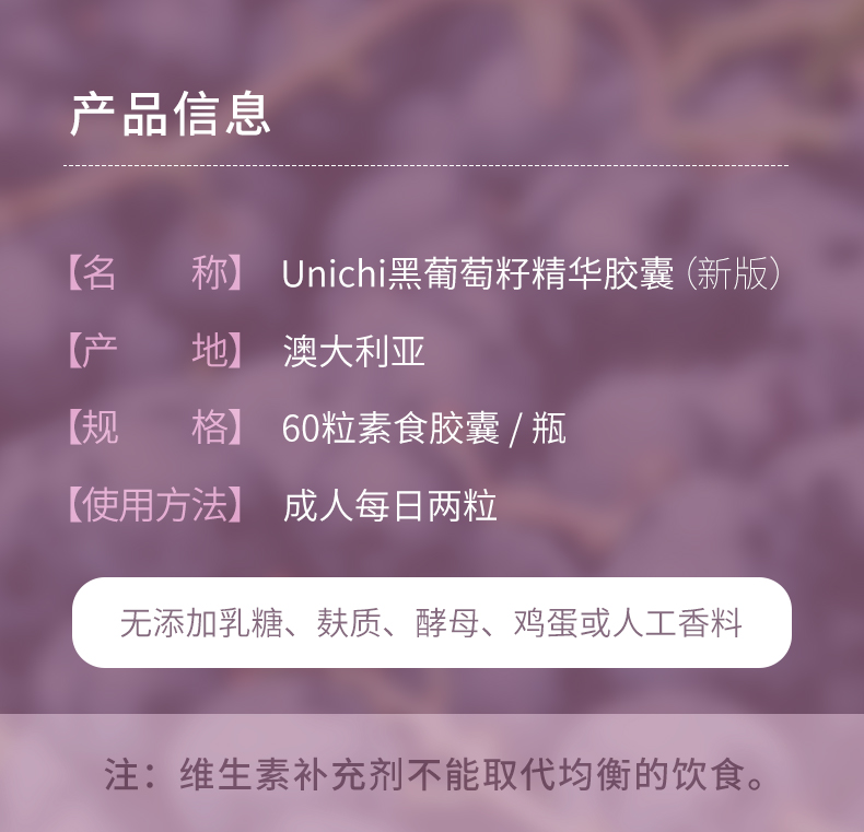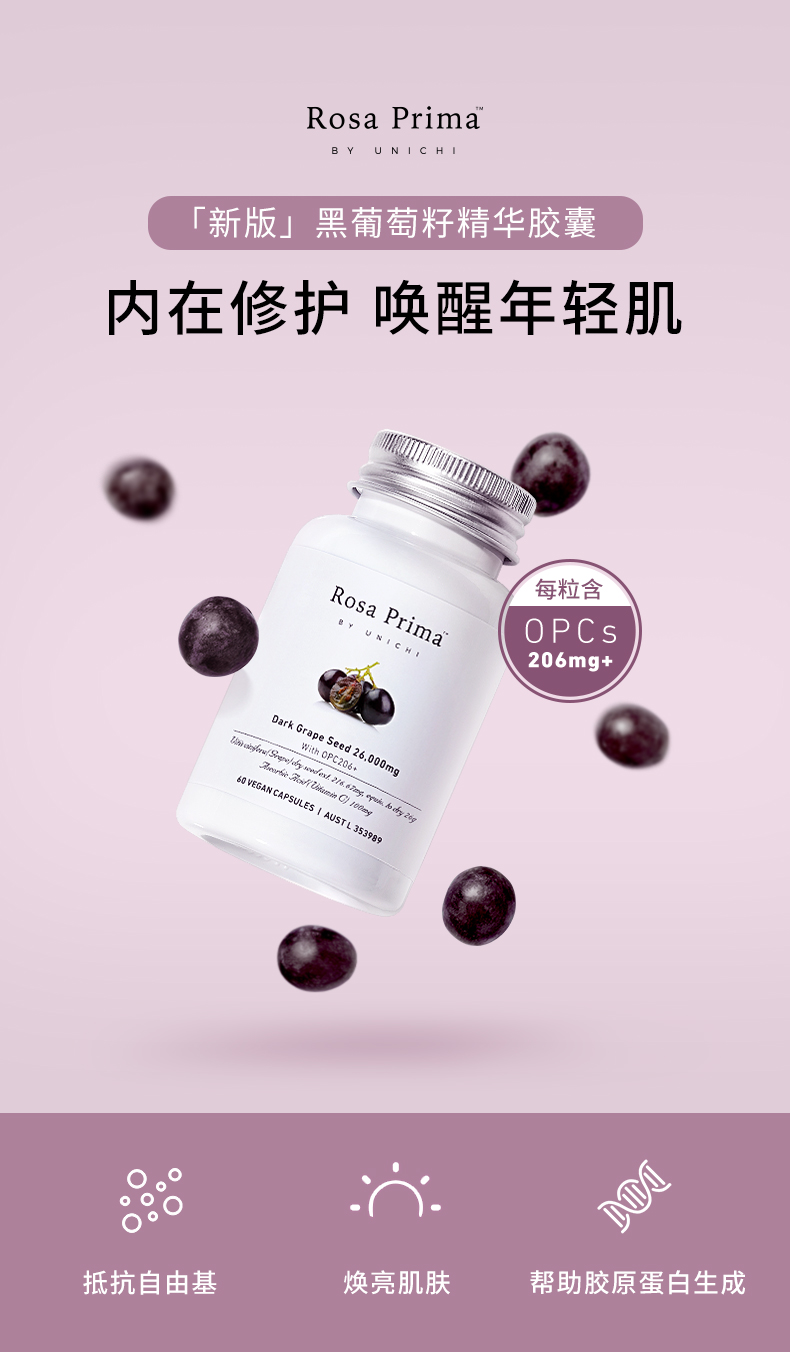 【保税仓】澳洲 Unichi 新品黑葡萄籽精华胶囊澳洲维生素抵御初老花青素纯天然 60粒/瓶(有效期至26年5月)
