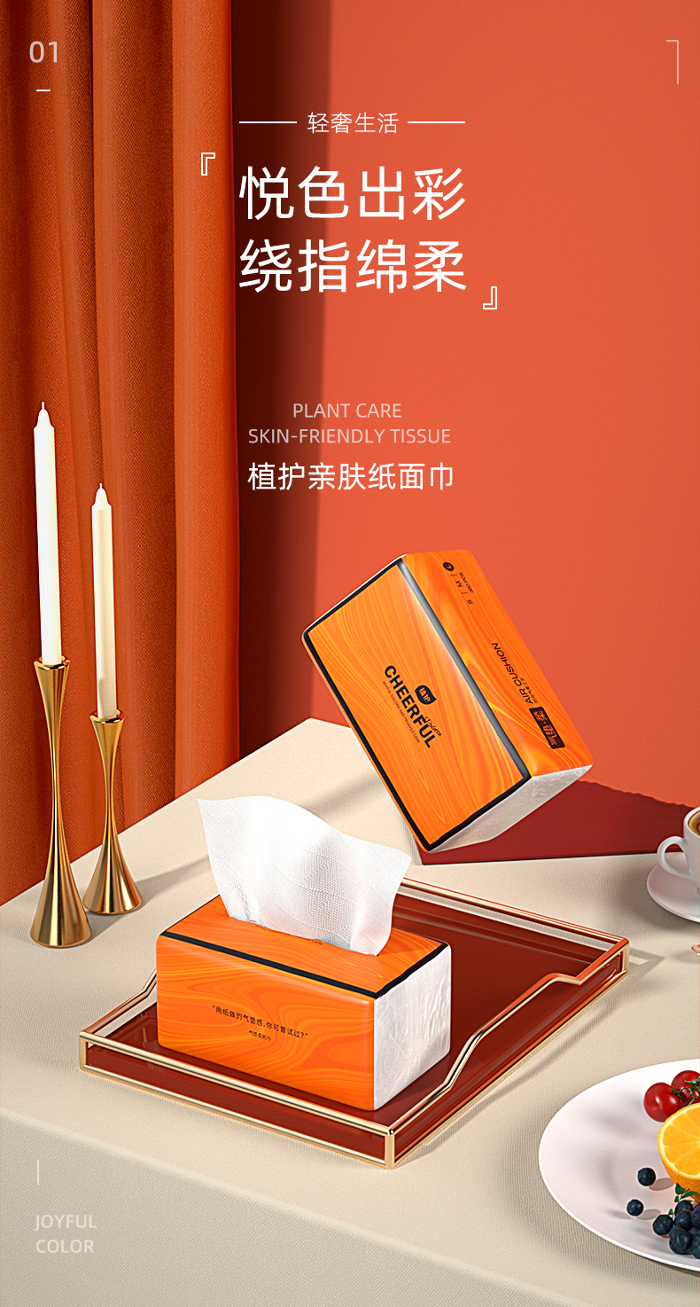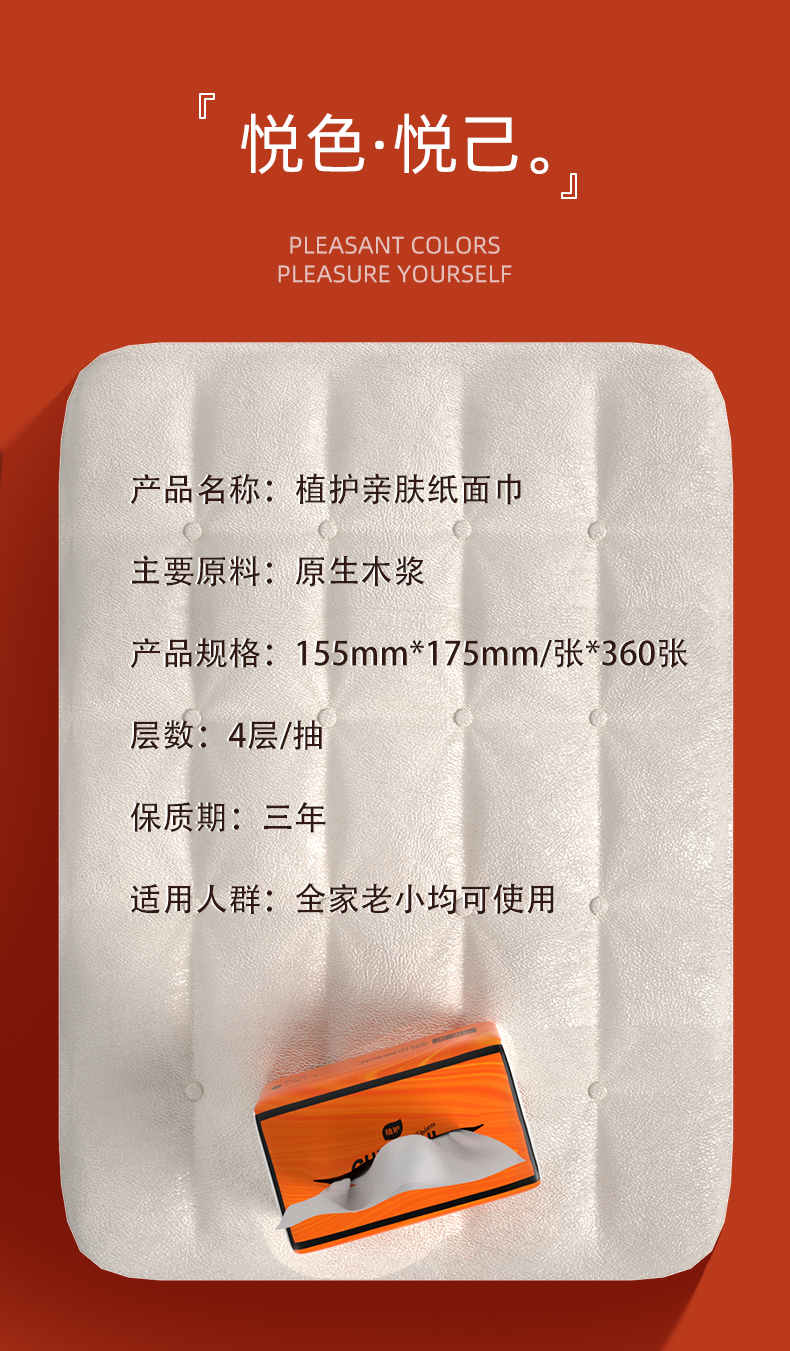 【自营】植护 悦色橙纸面巾90抽 6包/提