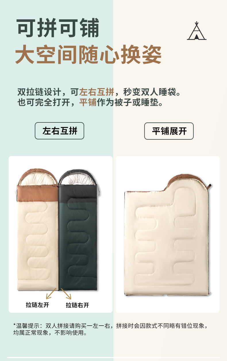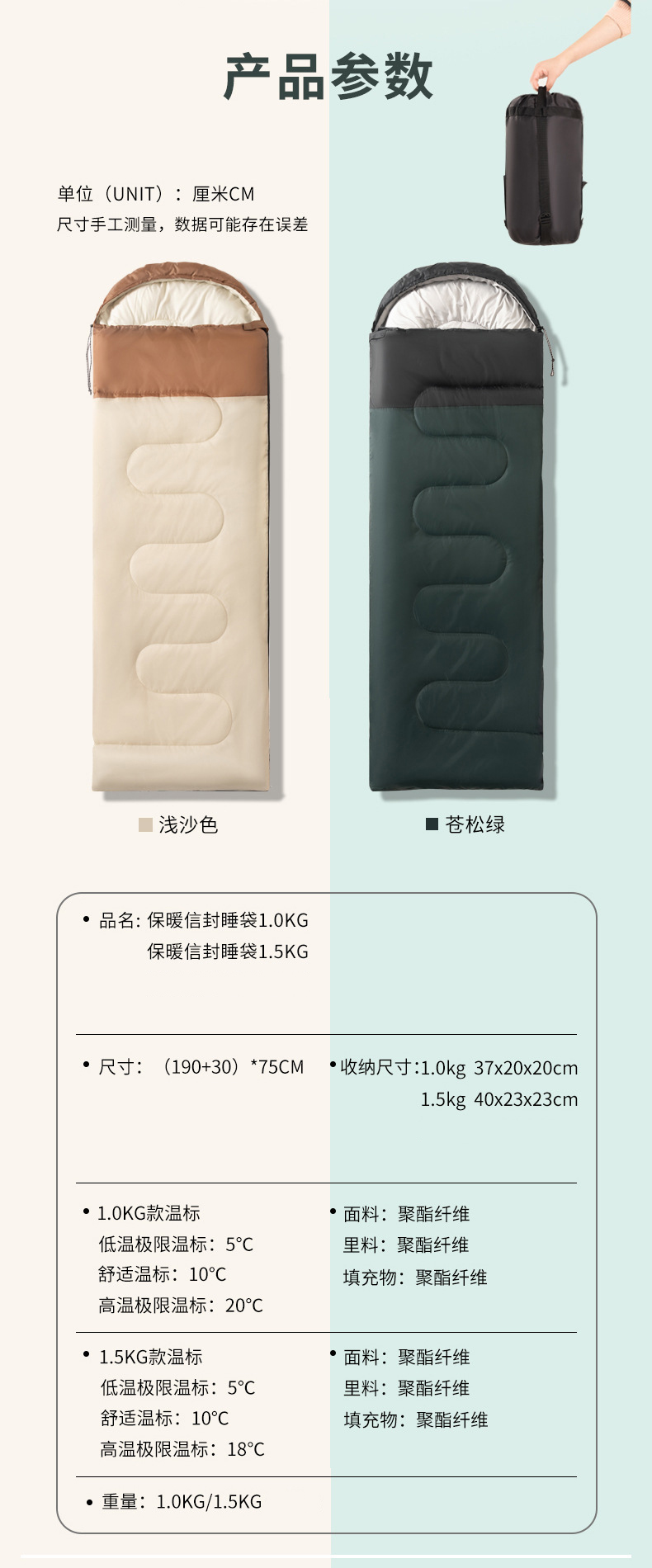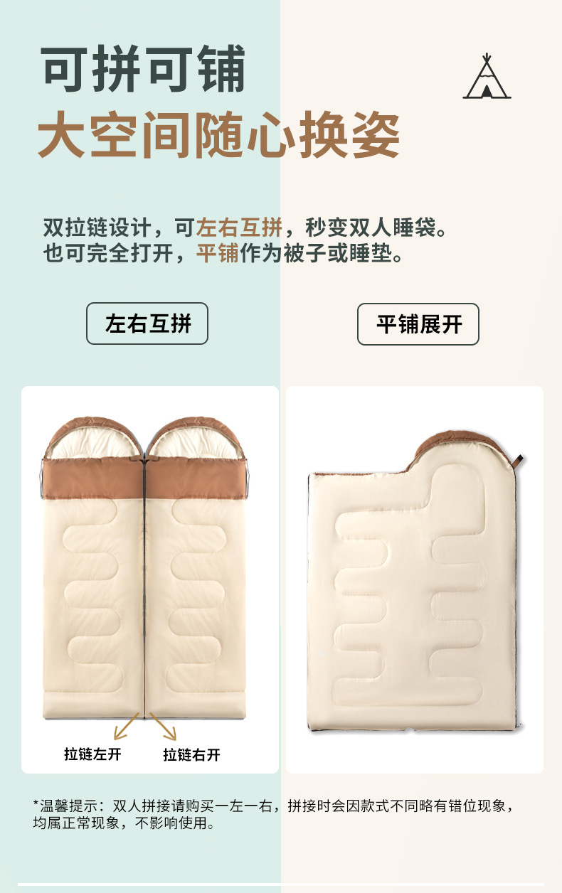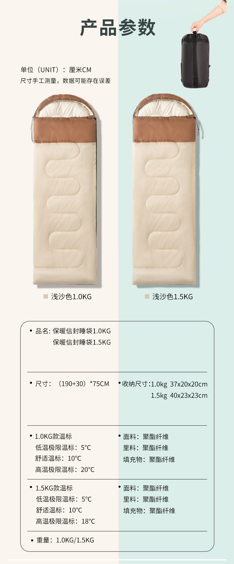 飞图乐(FTLY)可拼接春秋野营睡袋1KG/1.5KG 浅咖 SD18000 LP