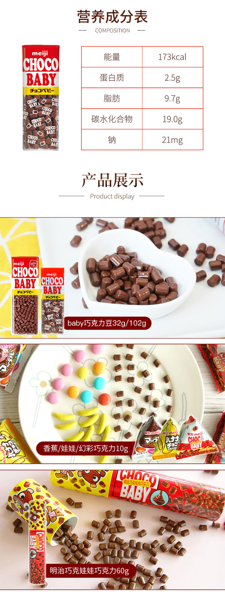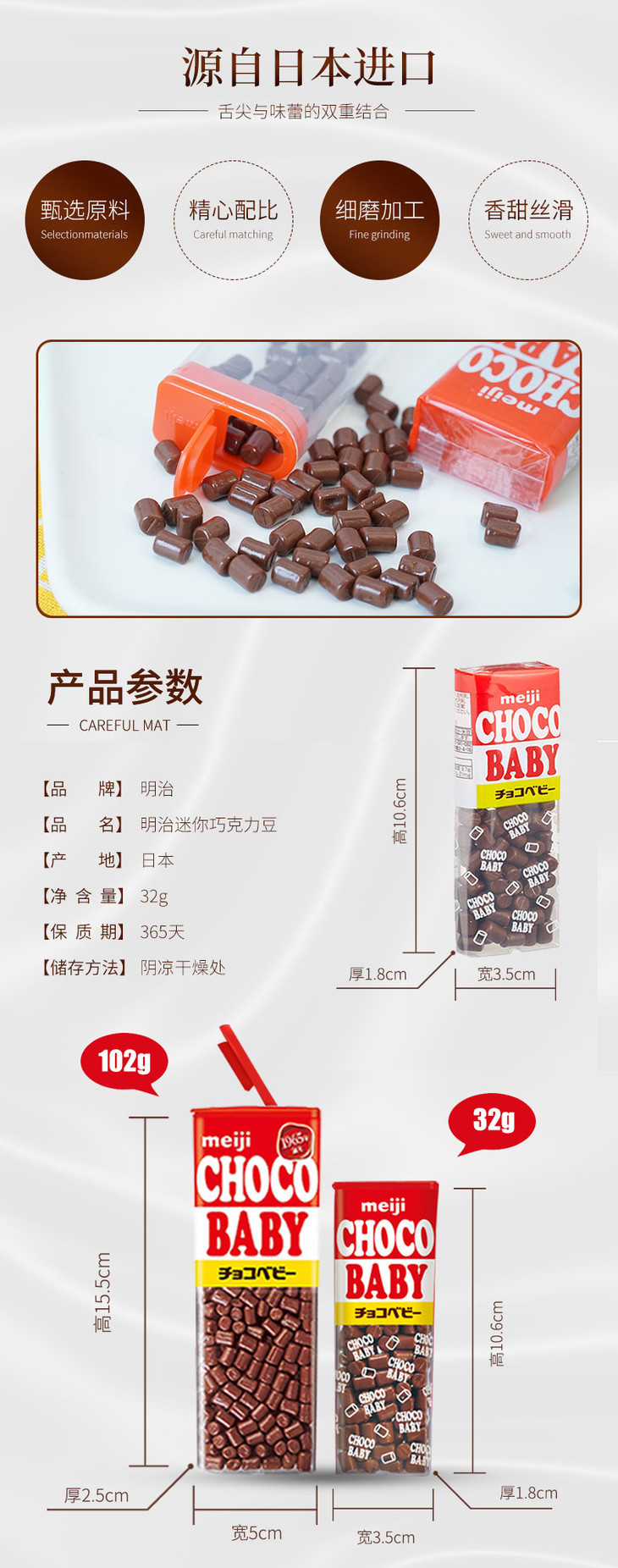 日本进口零食品 Meiji明治 Choco Baby迷你牛奶巧克力豆盒 102g(126760)
