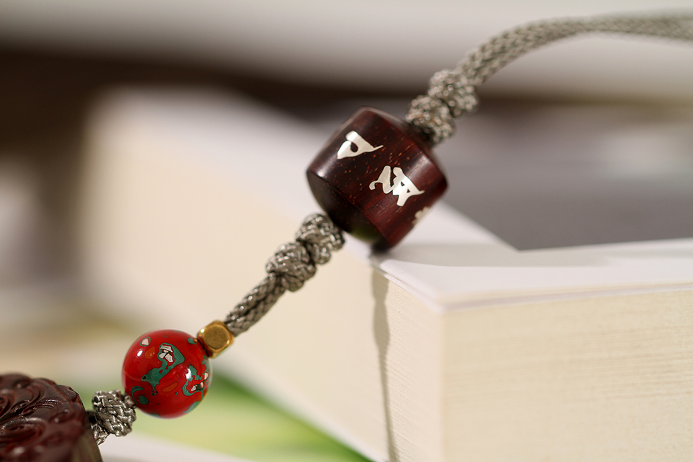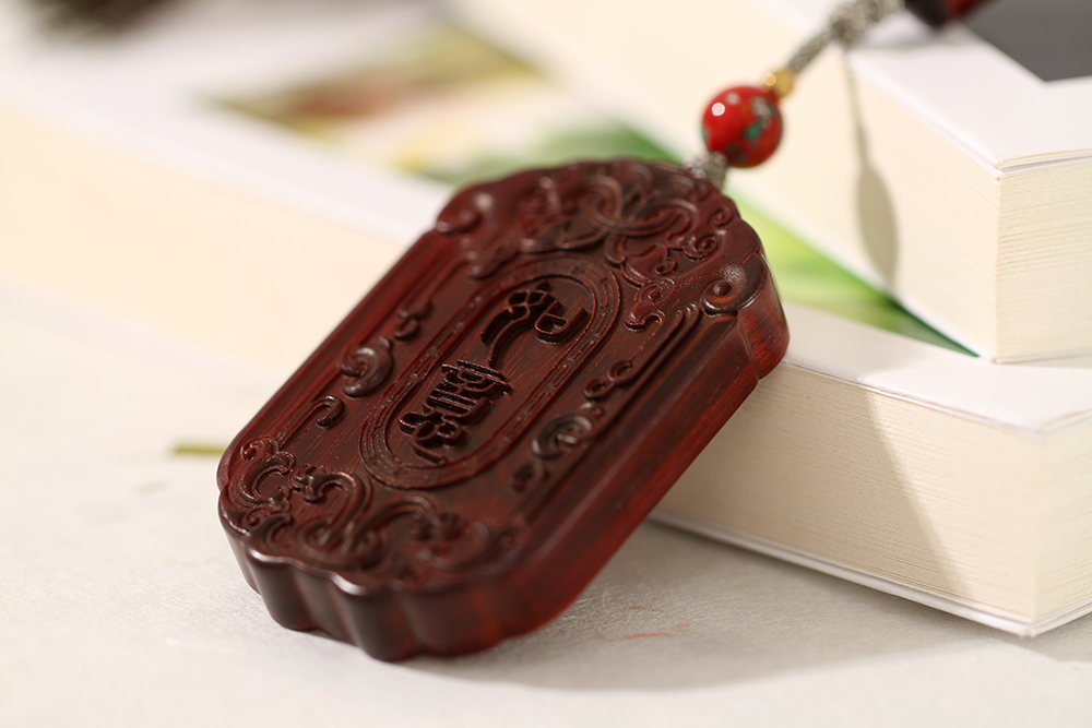 搭配:高品质紫檀手工雕制,搭配小叶紫檀吉祥如意牌,紫檀桶珠镶银,大漆,精美流苏