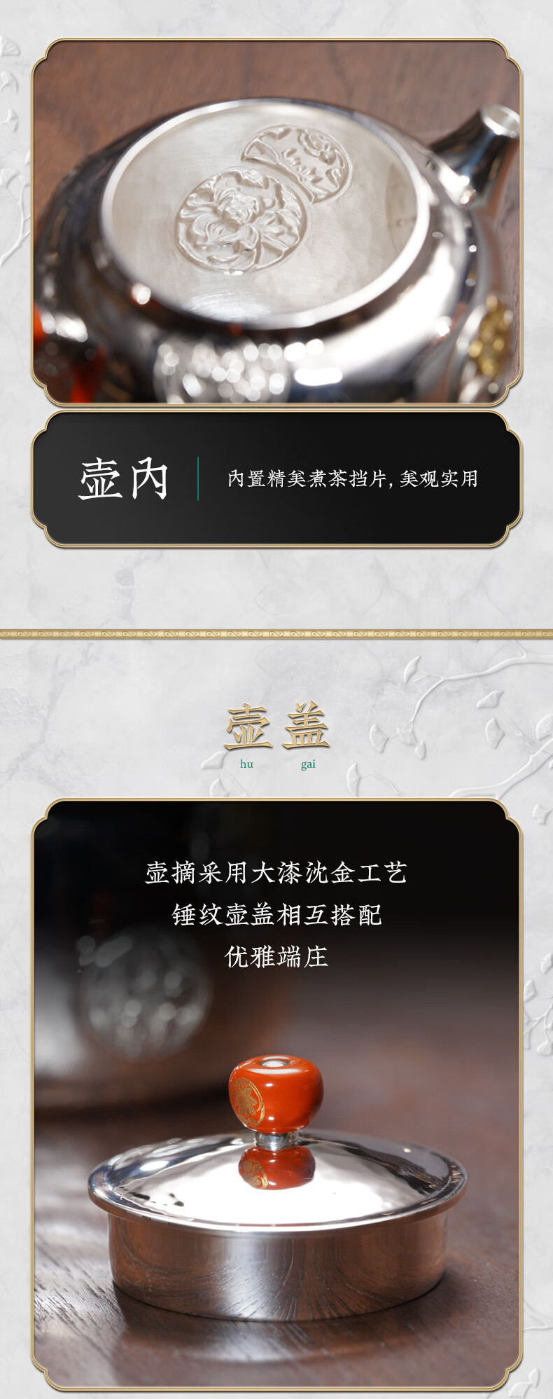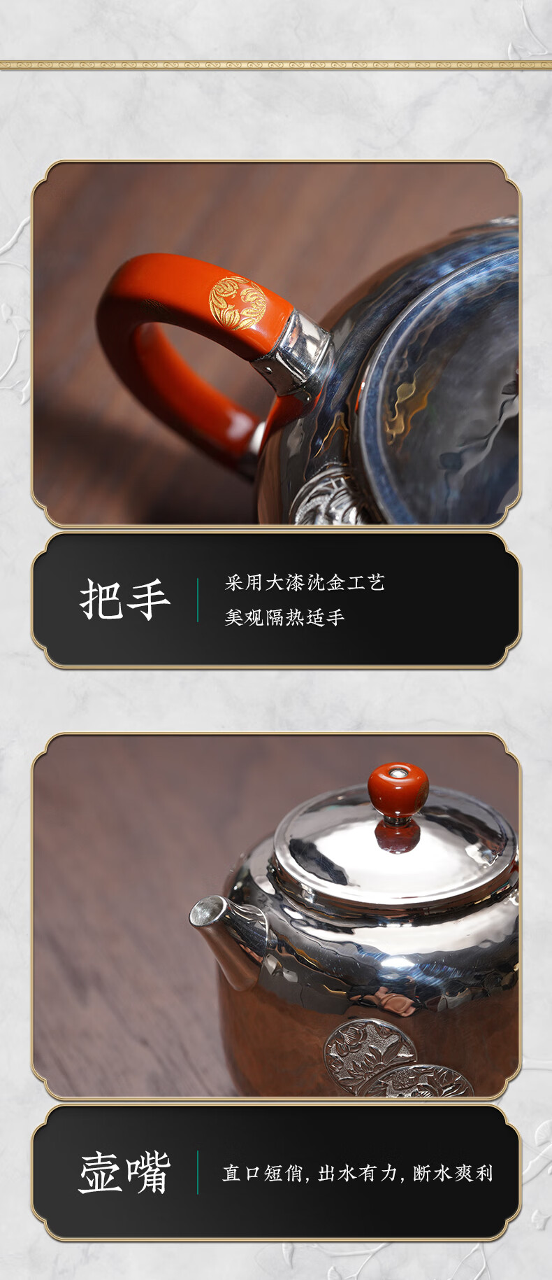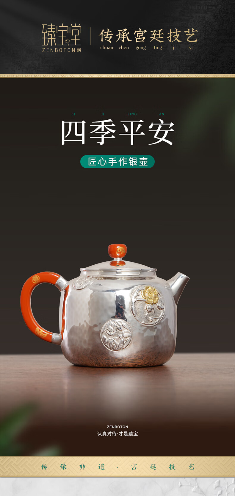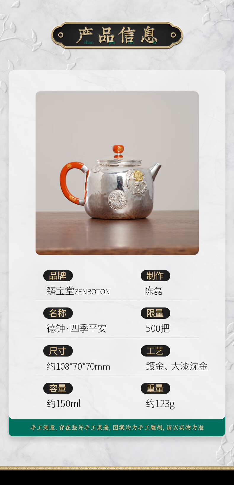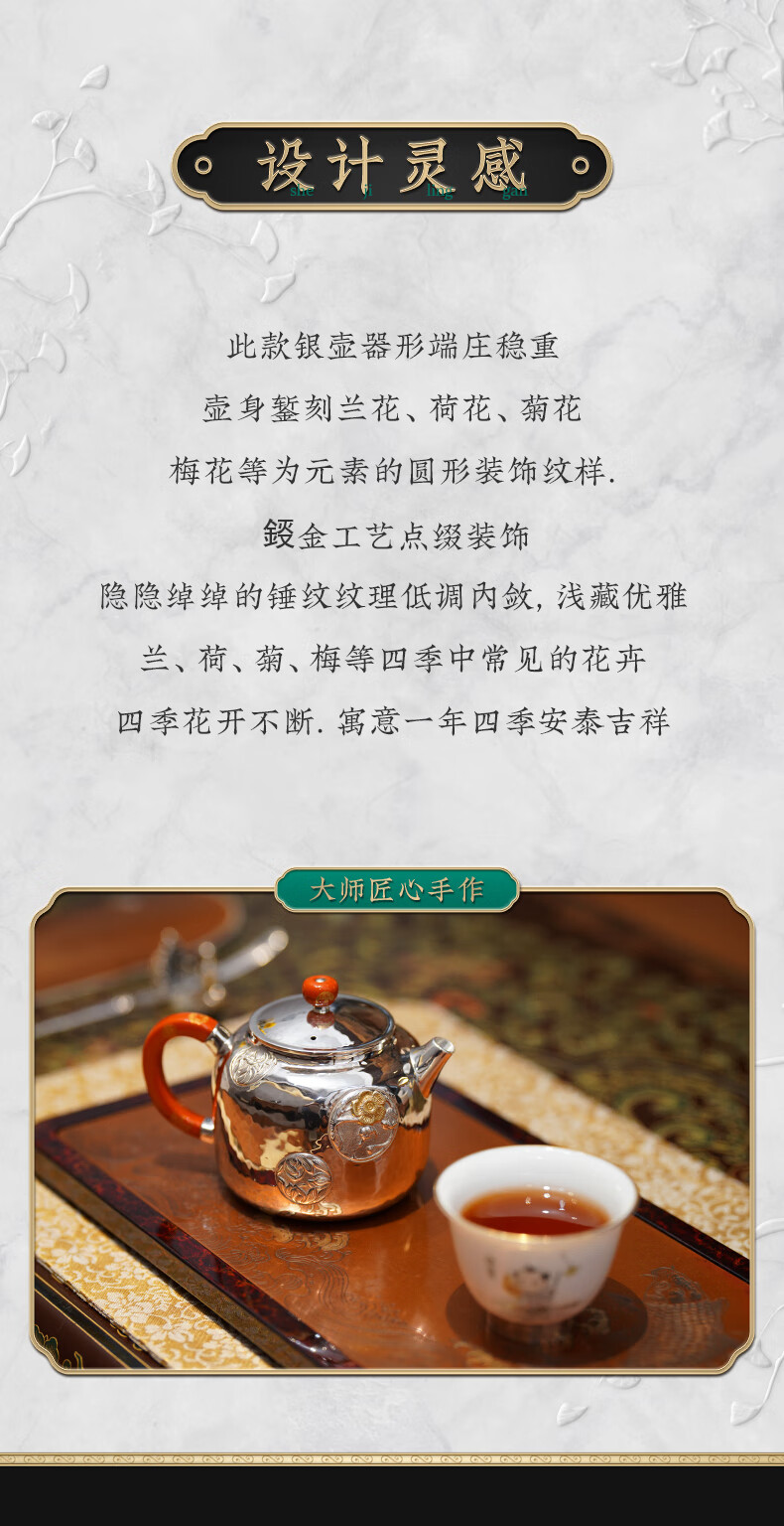 臻宝堂银壶9999纯银泡茶壶纯手工錾刻花卉小壶四季平安家用足银养生茶具 德钟四季平安-重约123g 容量约150ml