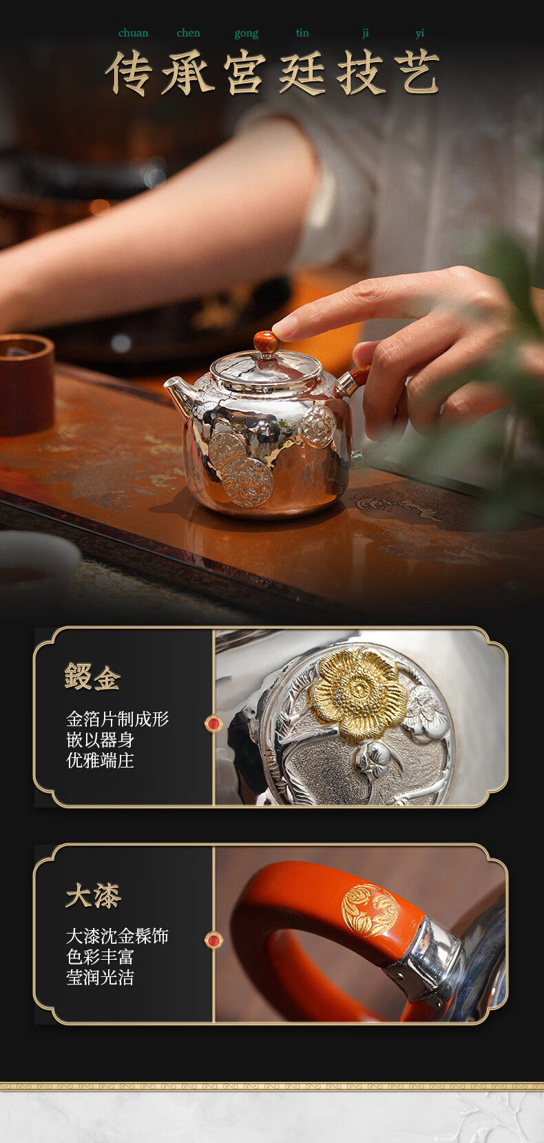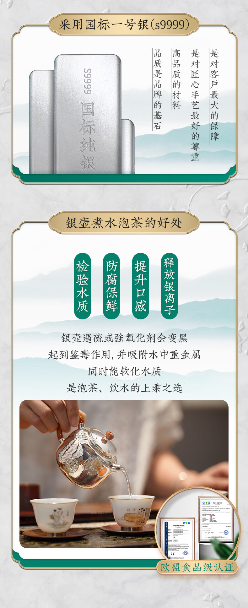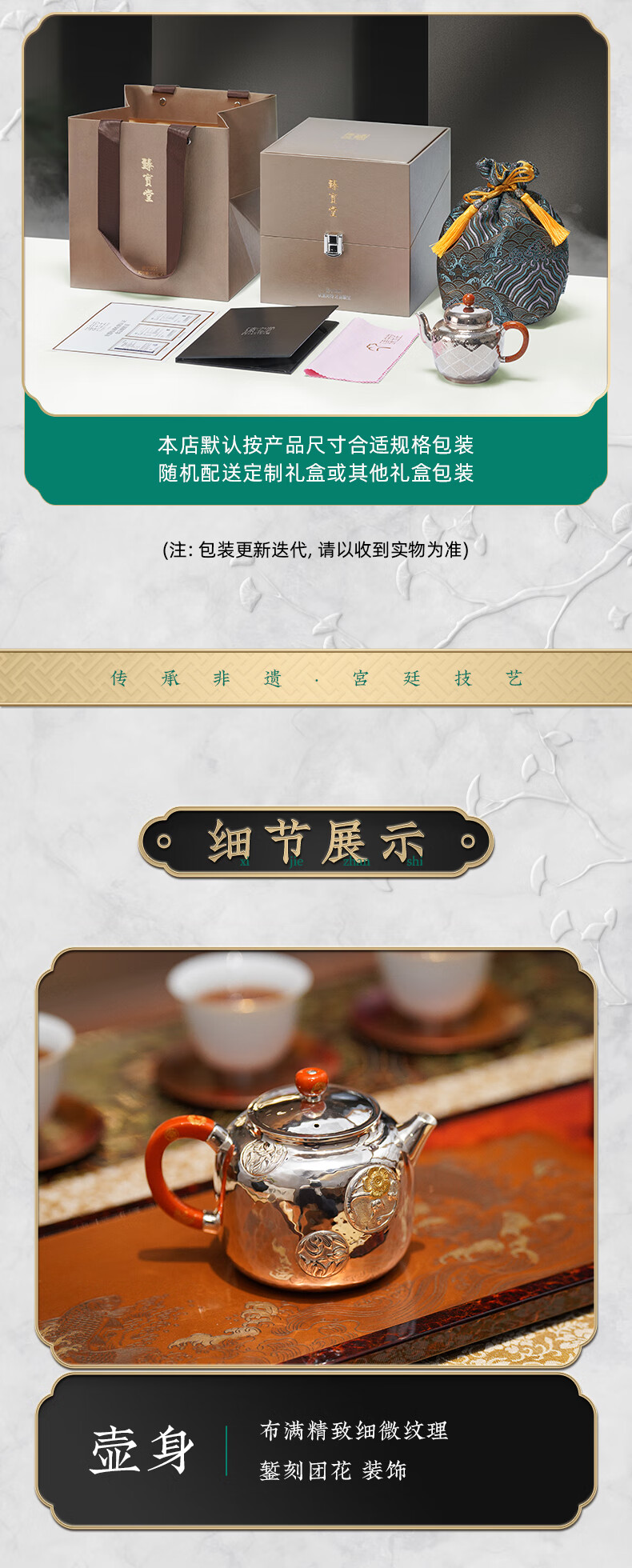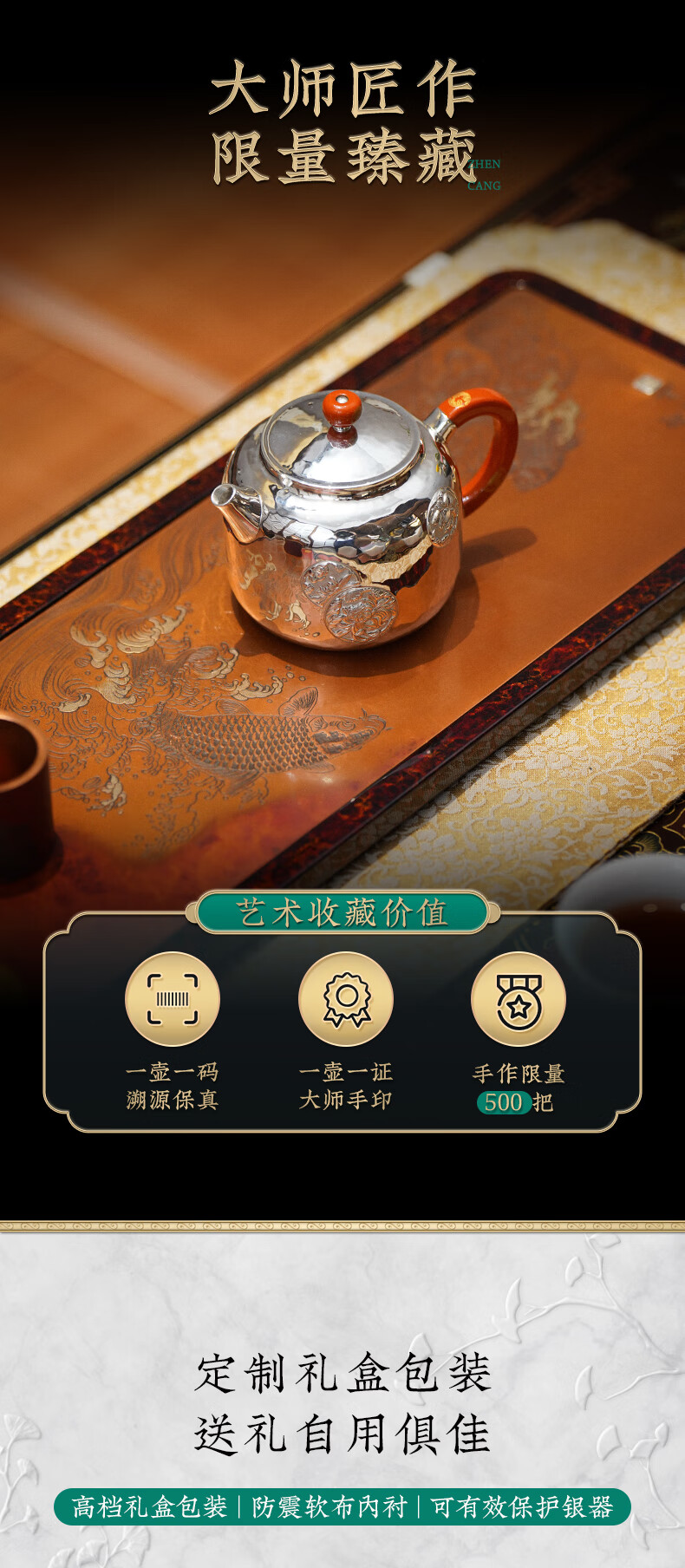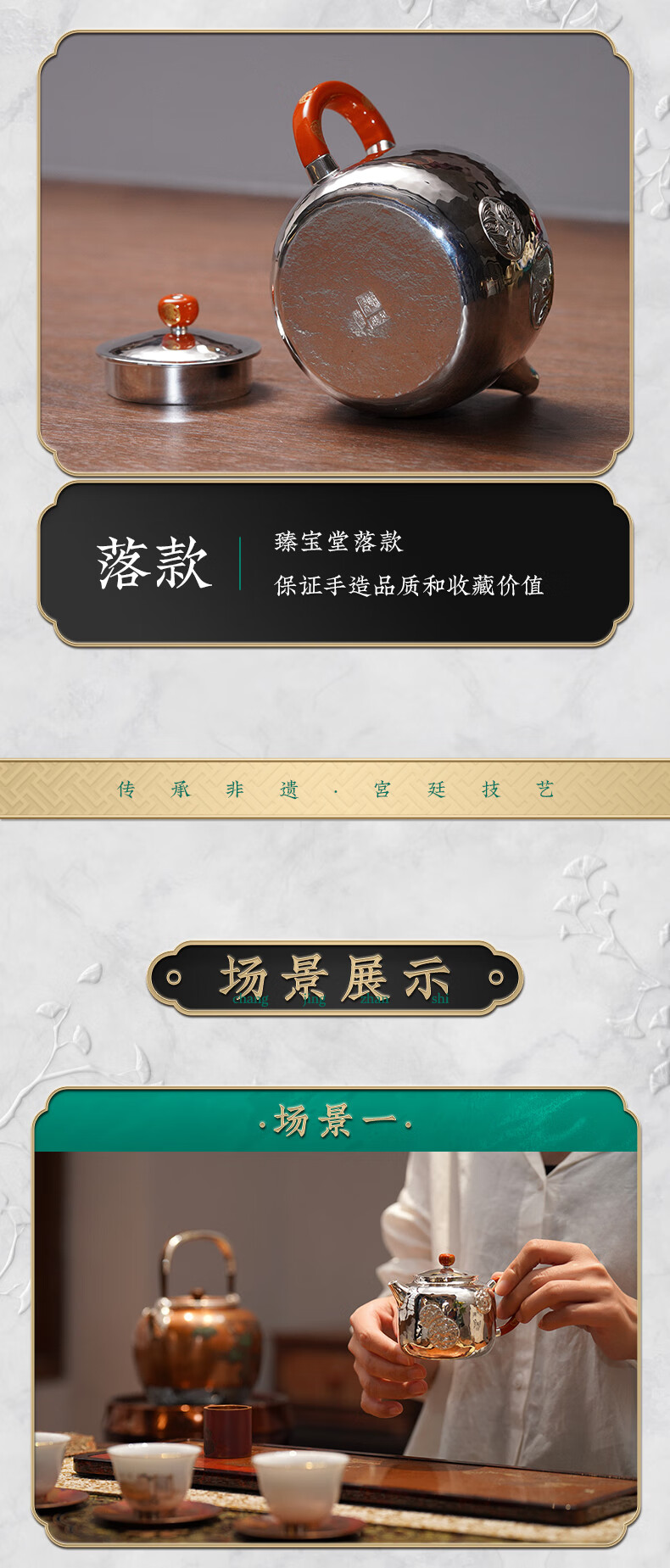 臻宝堂银壶9999纯银泡茶壶纯手工錾刻花卉小壶四季平安家用足银养生茶具 德钟四季平安-重约123g 容量约150ml
