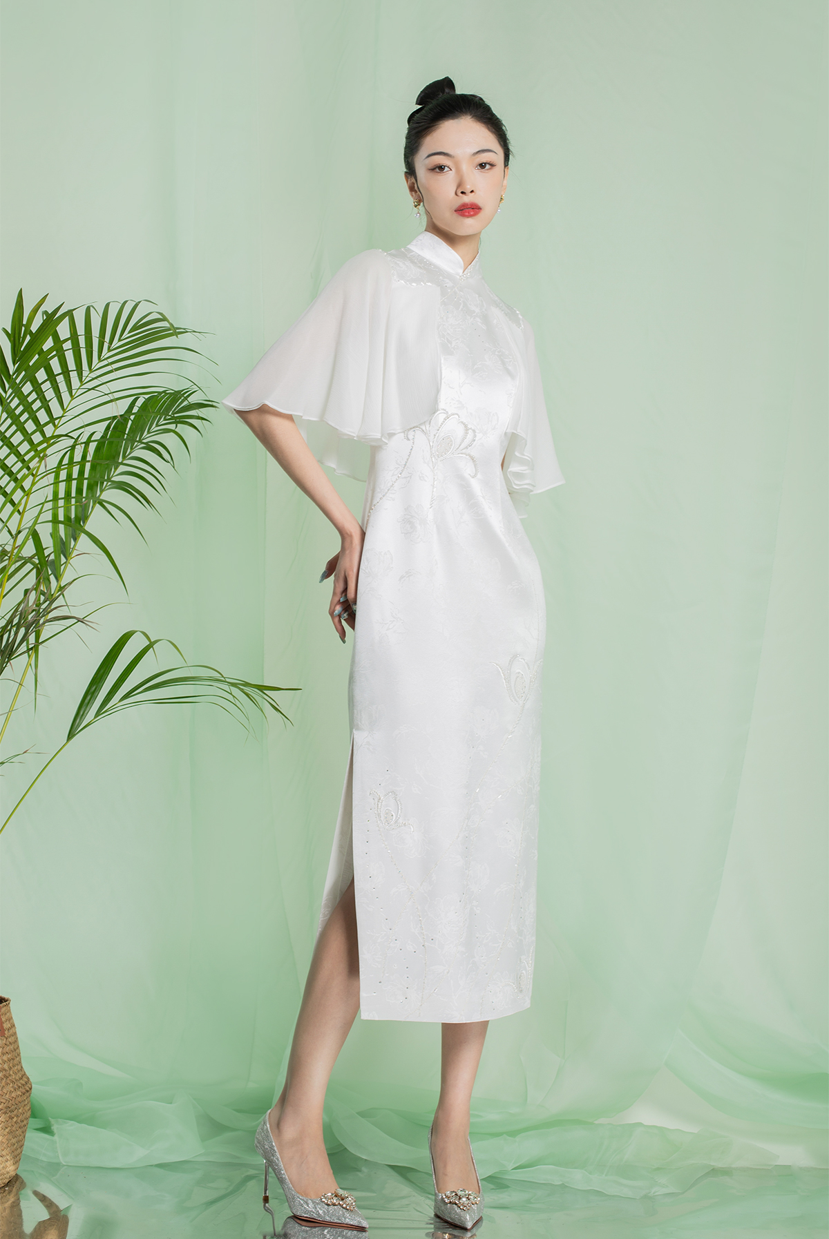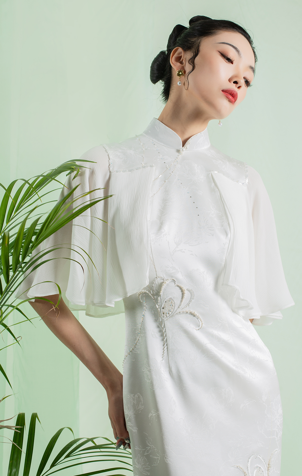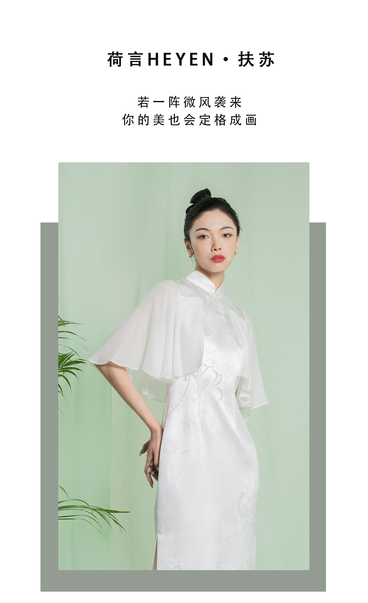 【明星同款】荷言HEYEN 扶苏 白色设计感旗袍高级定制
