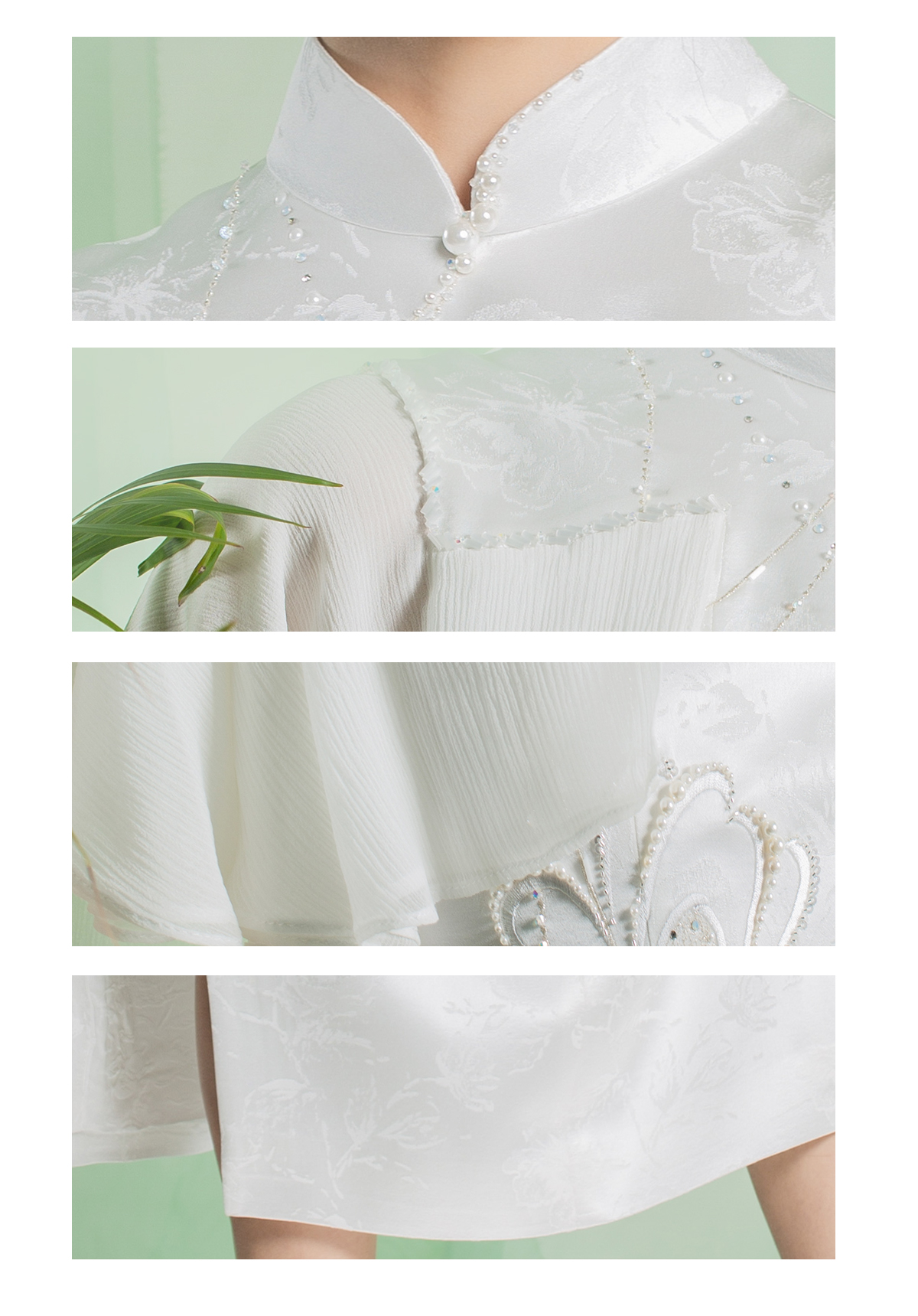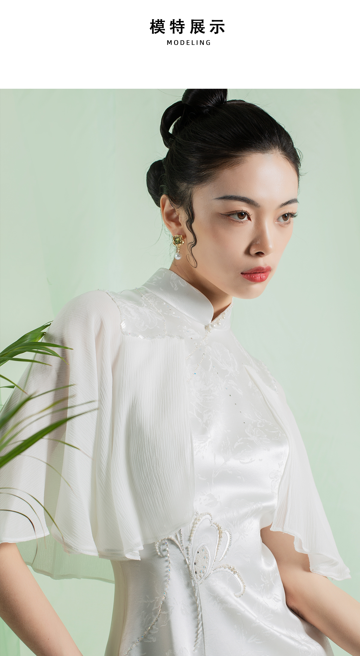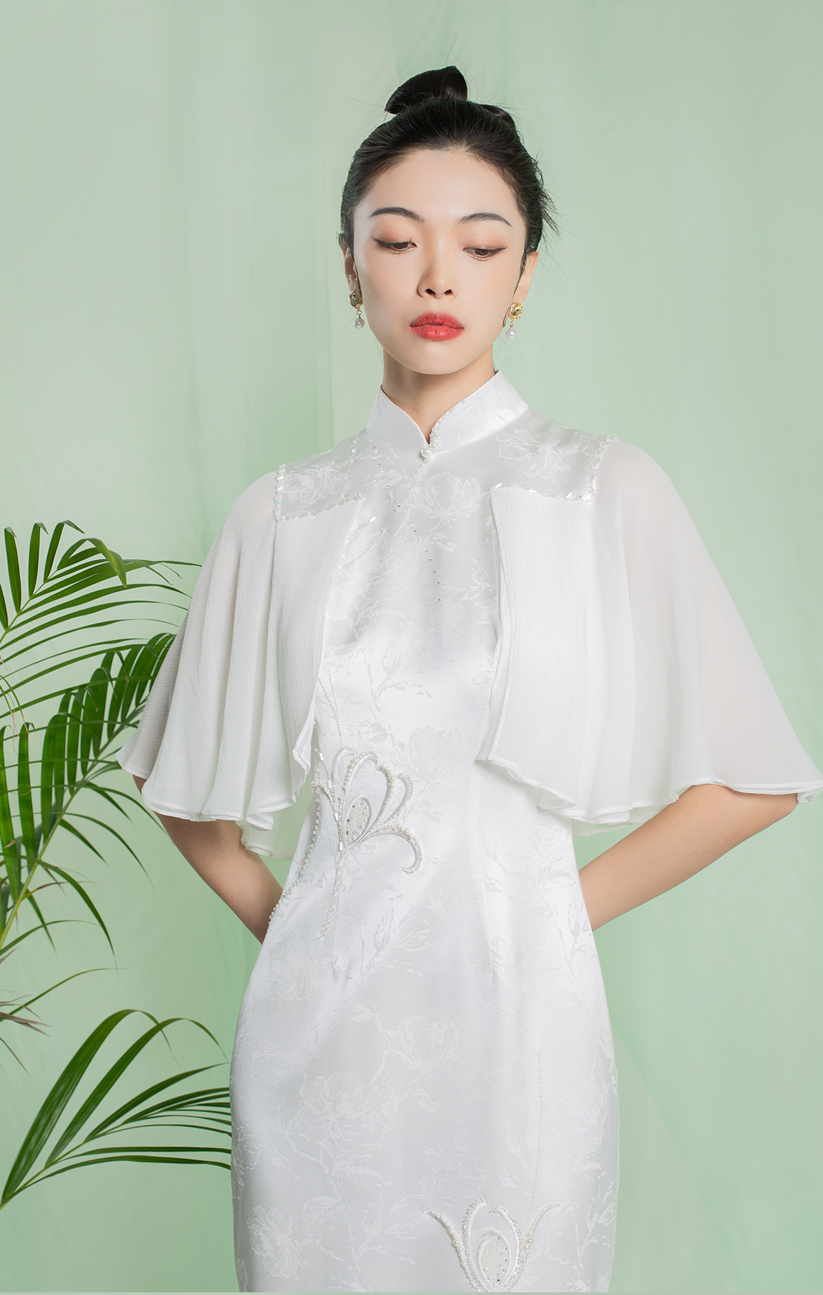 【明星同款】荷言HEYEN 扶苏 白色设计感旗袍高级定制