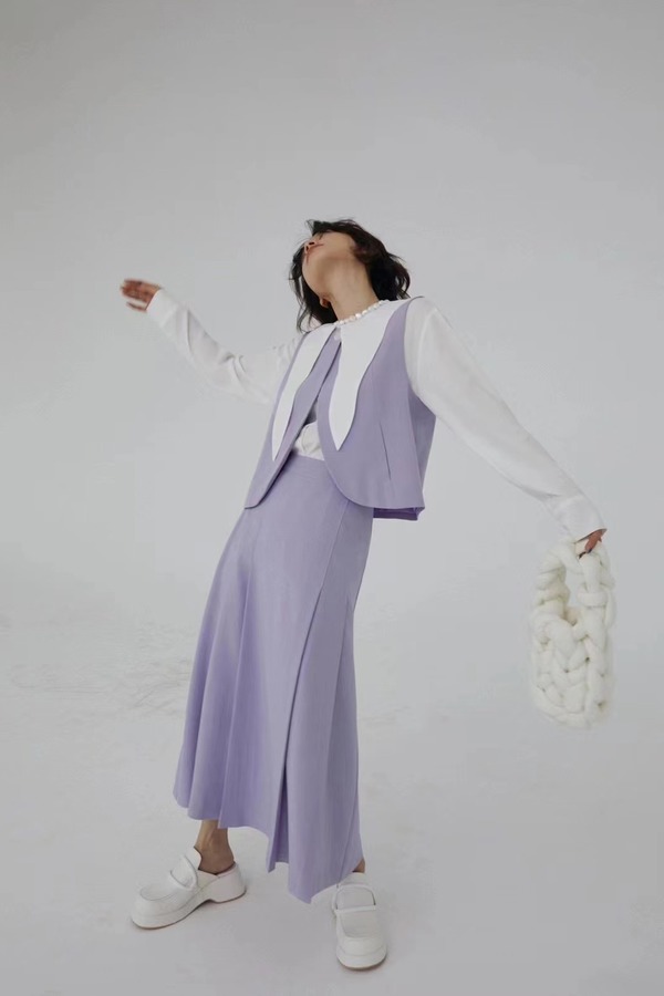 ANSUABEL 紫色单粒扣马甲半裙套装 15844