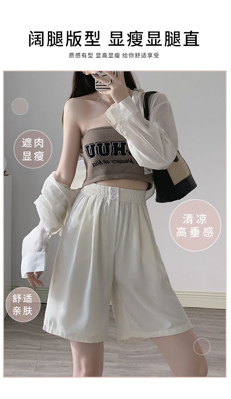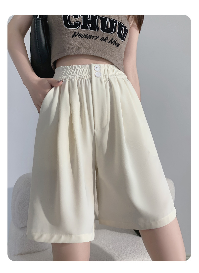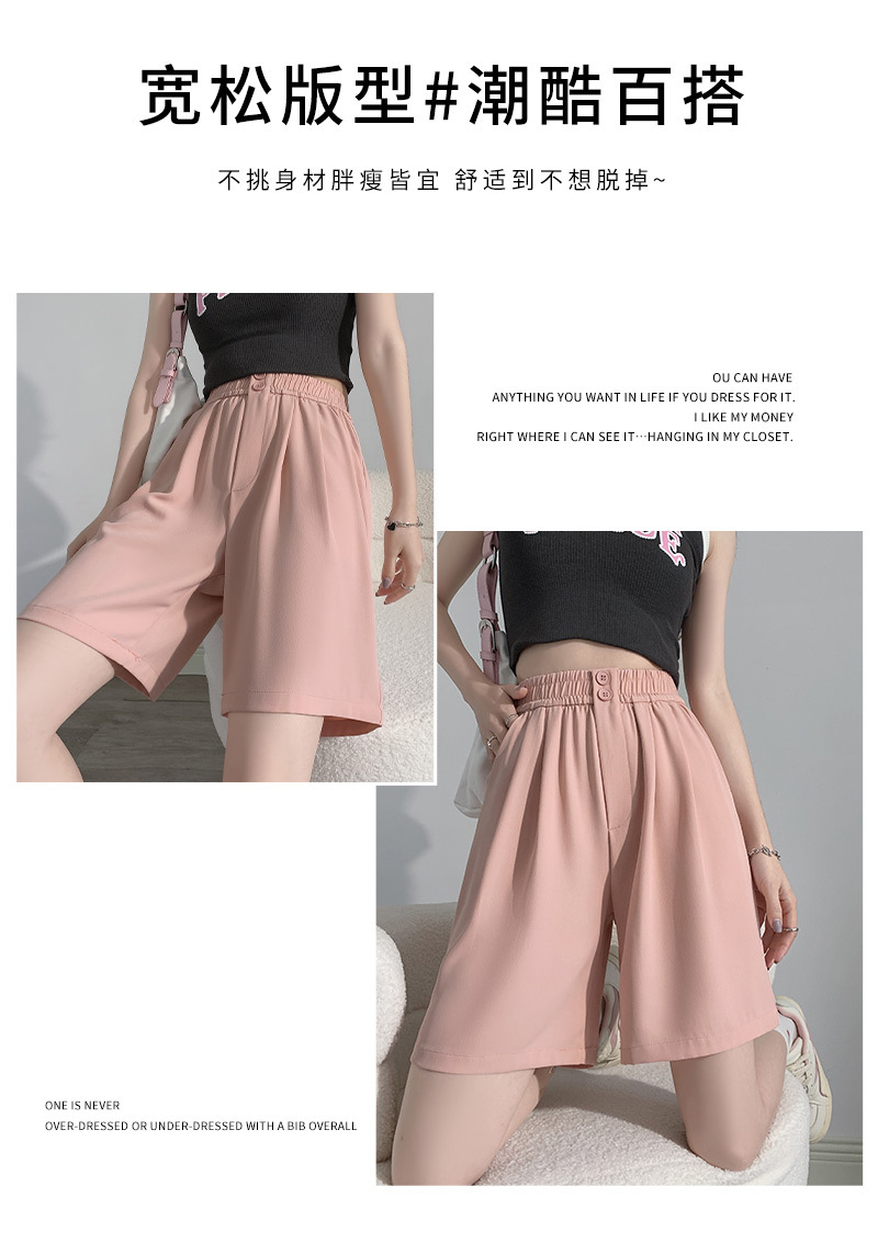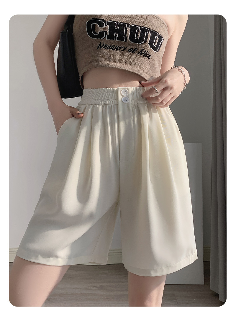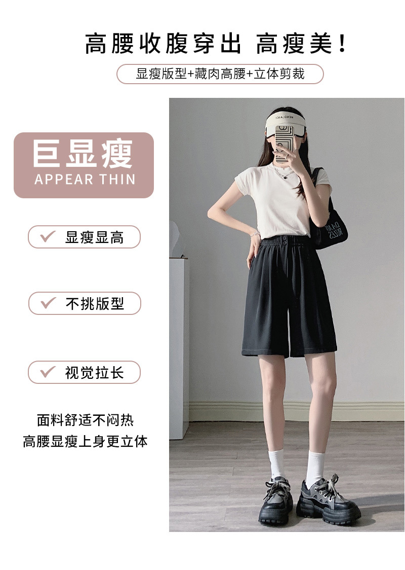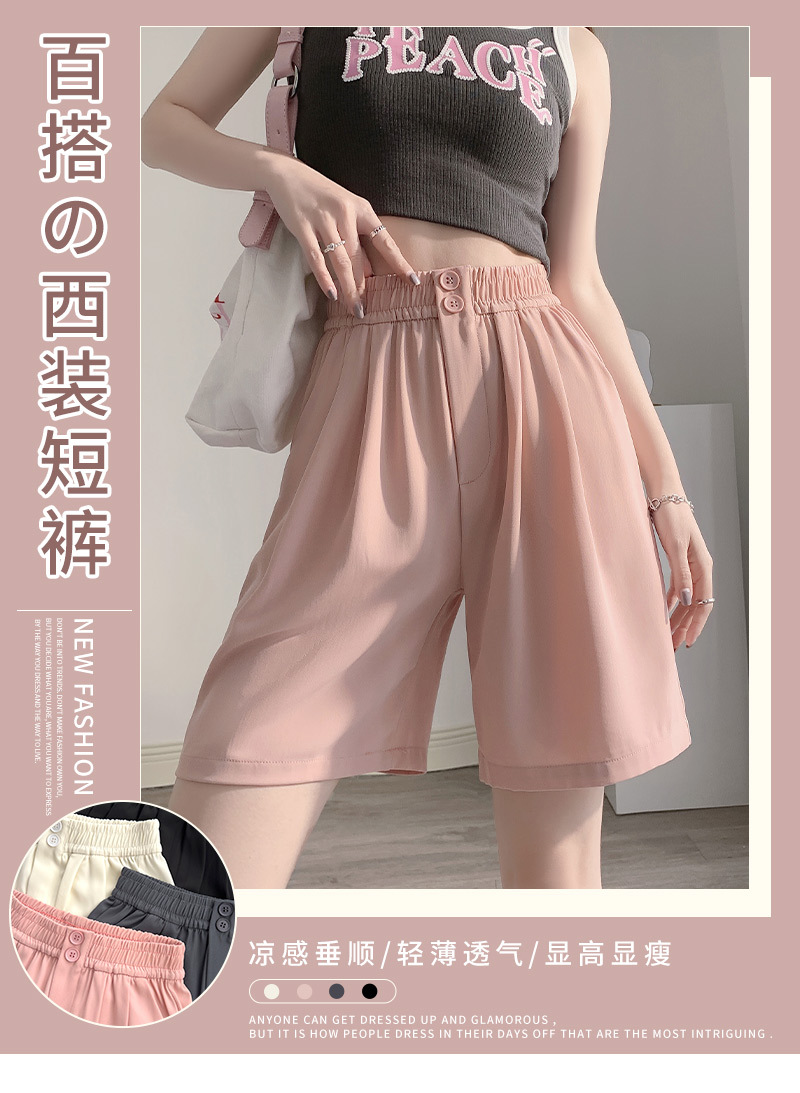 夏季必备!西装短裤女,高腰设计显瘦,五分裤长度修饰腿型,宽松版型舒适自在。卡其色中裤百搭实穿,让你轻松驾驭各种场合。小个子也能穿出气质!