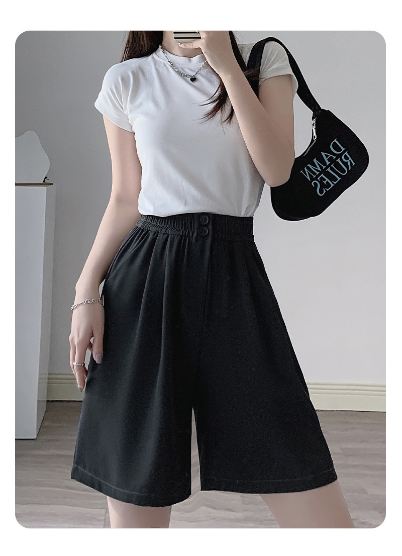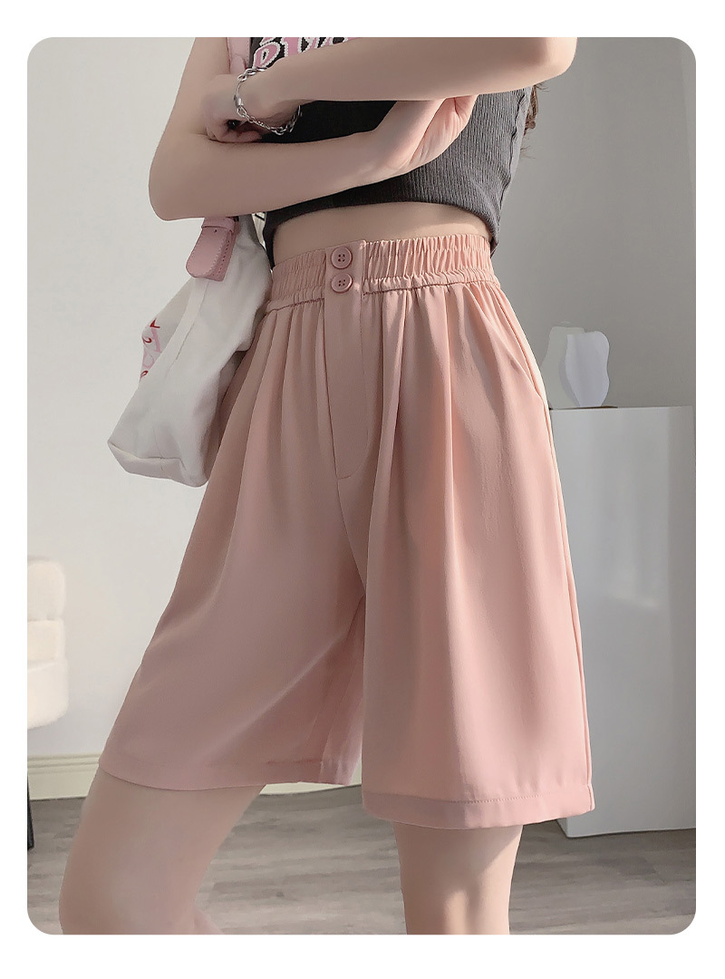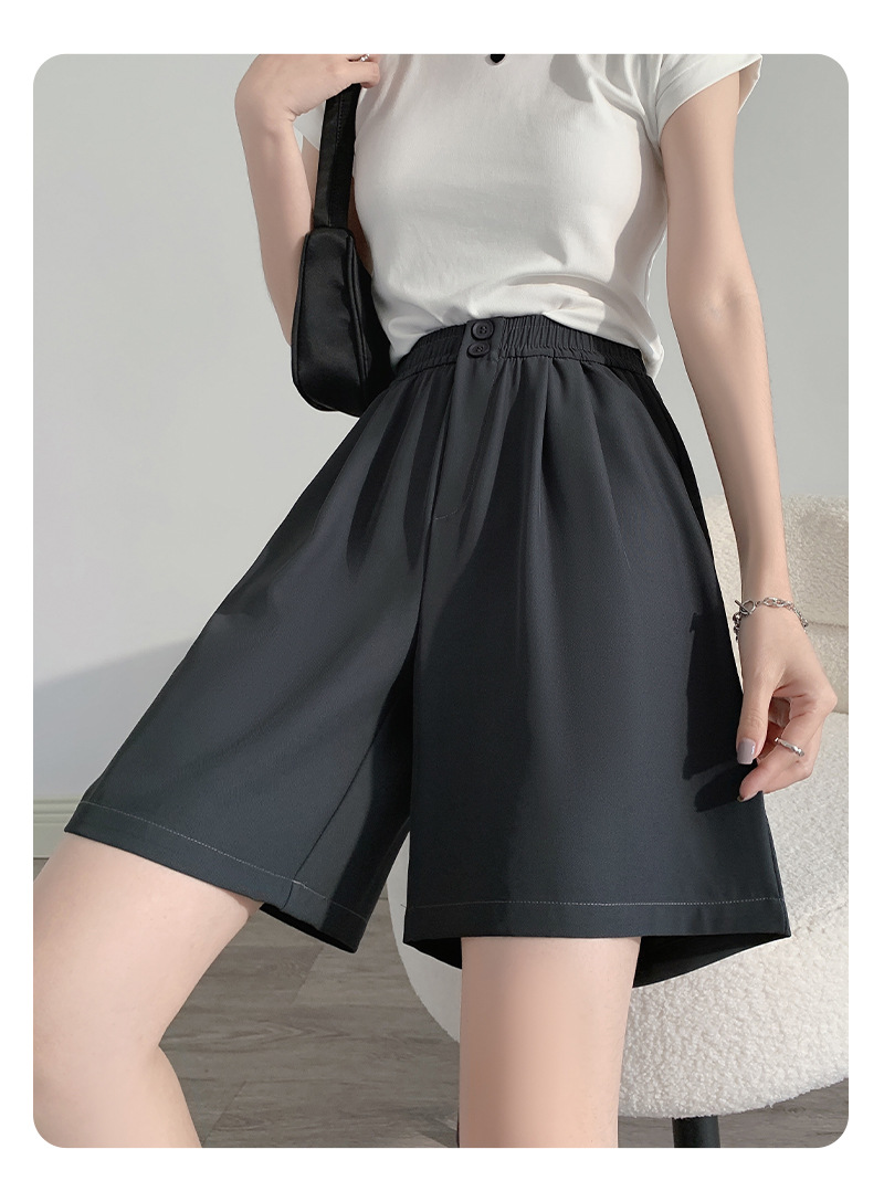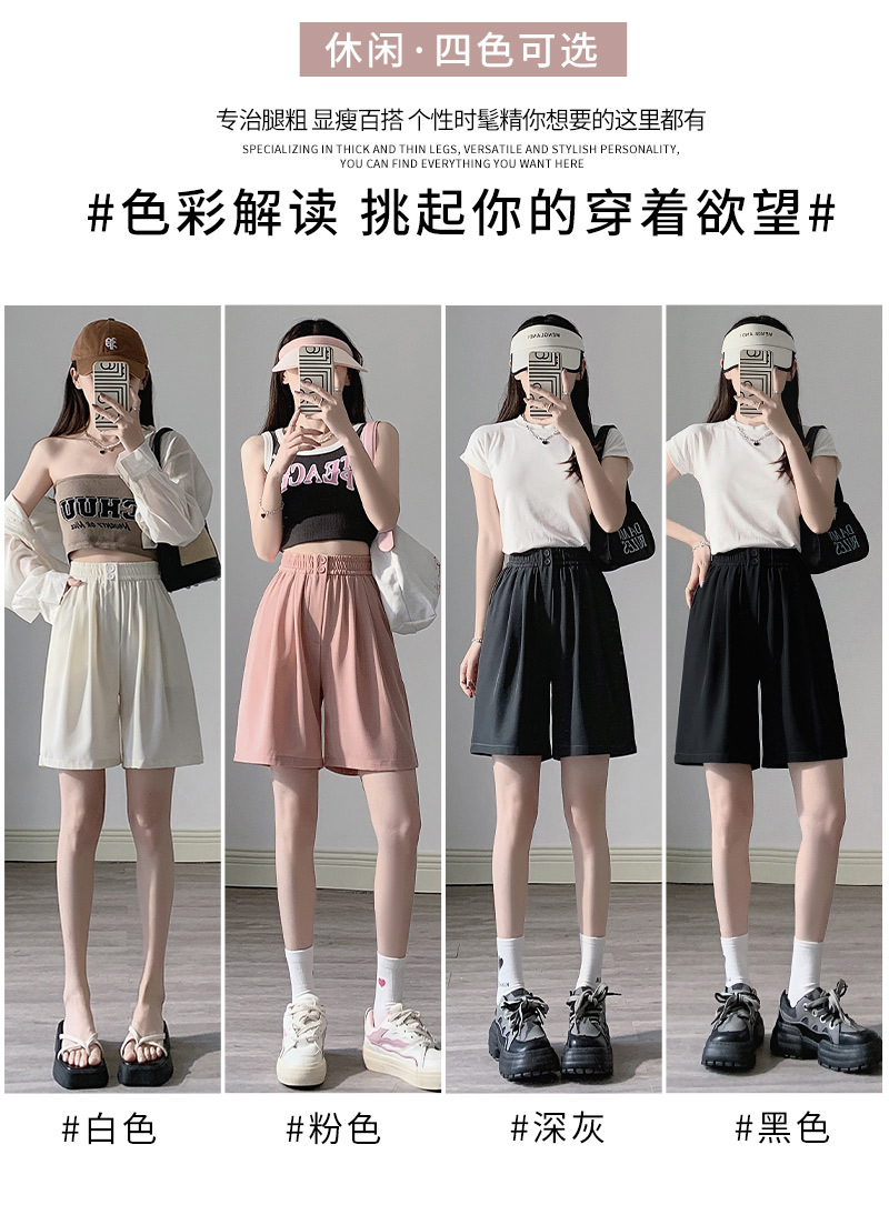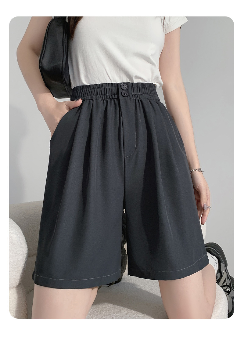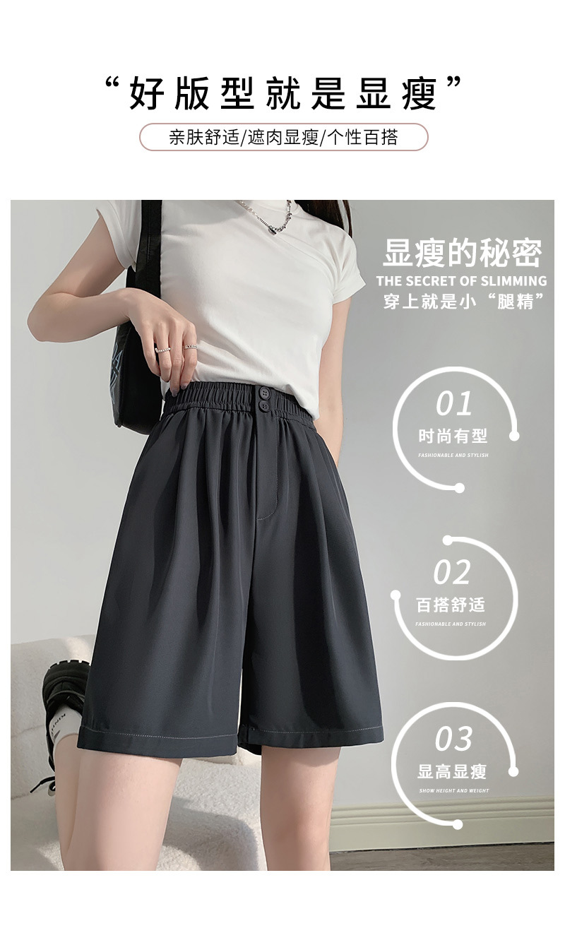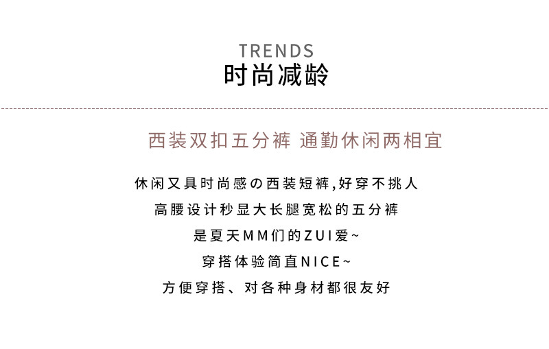 夏季必备!西装短裤女,高腰设计显瘦,五分裤长度修饰腿型,宽松版型舒适自在。卡其色中裤百搭实穿,让你轻松驾驭各种场合。小个子也能穿出气质!