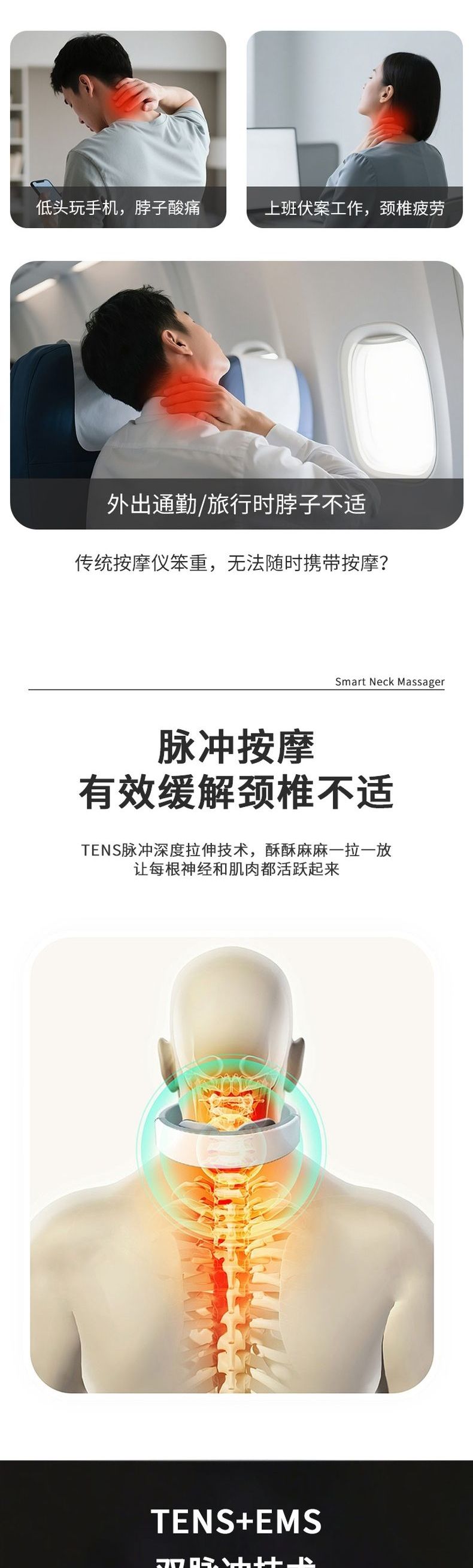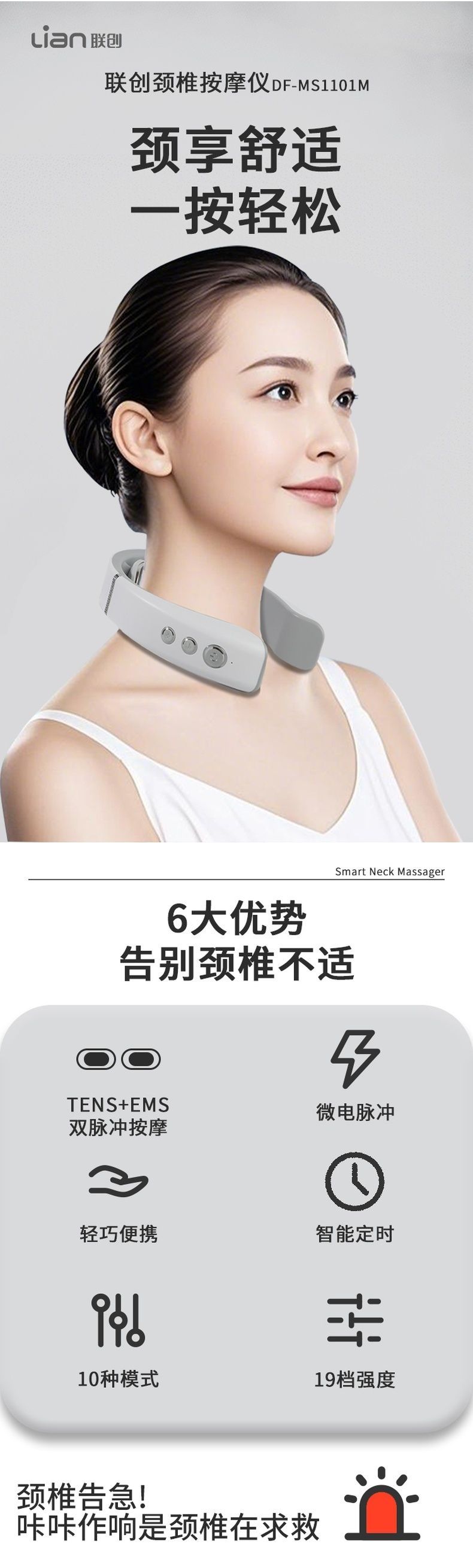 联创 颈椎按摩仪 DF-MS1101M 颈部按摩器电动揉捏热敷枕