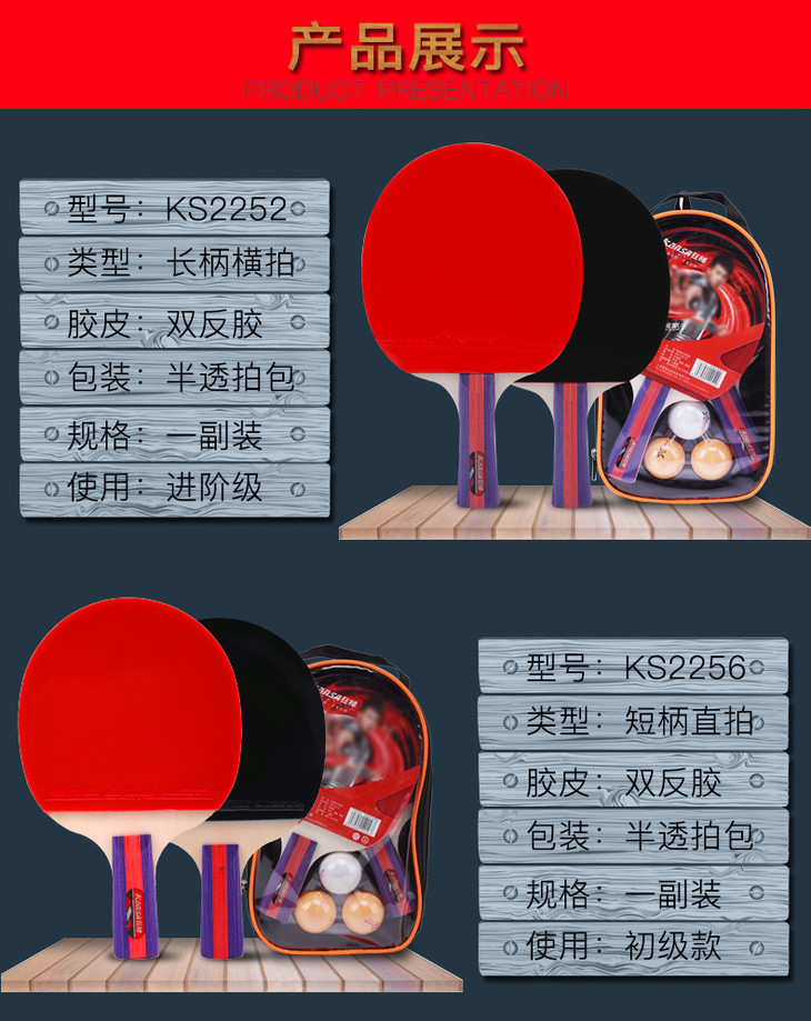 狂神乒乓球拍 胶皮级战拍套包儿童小学生ks2252