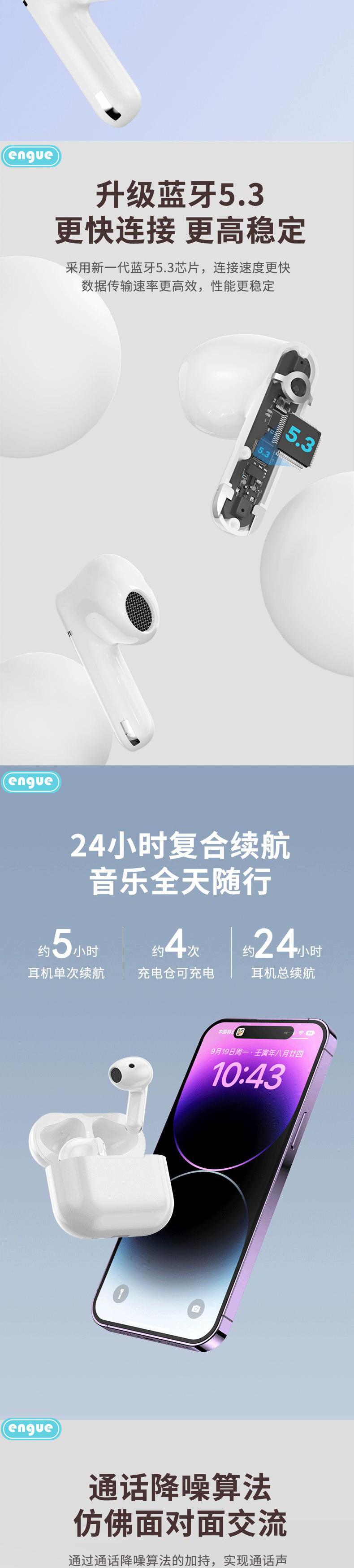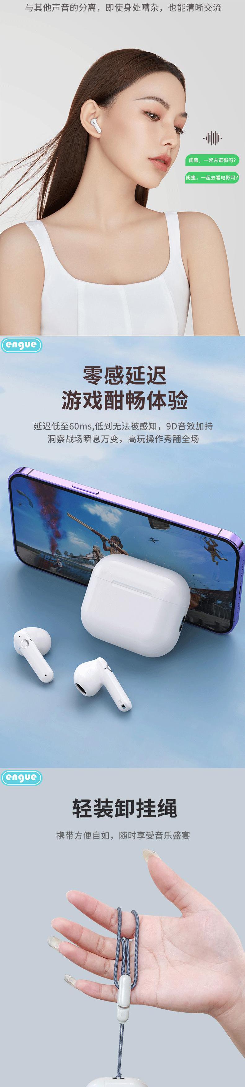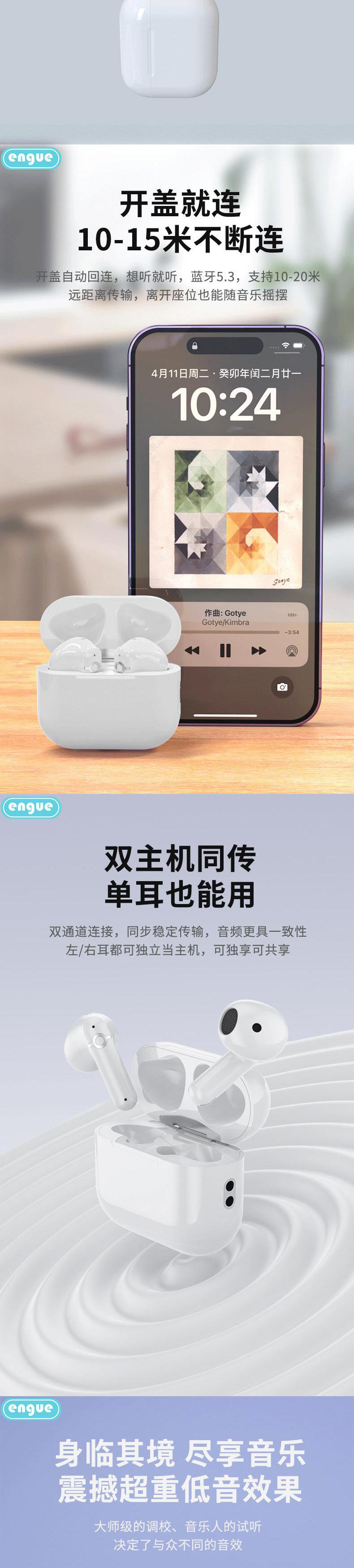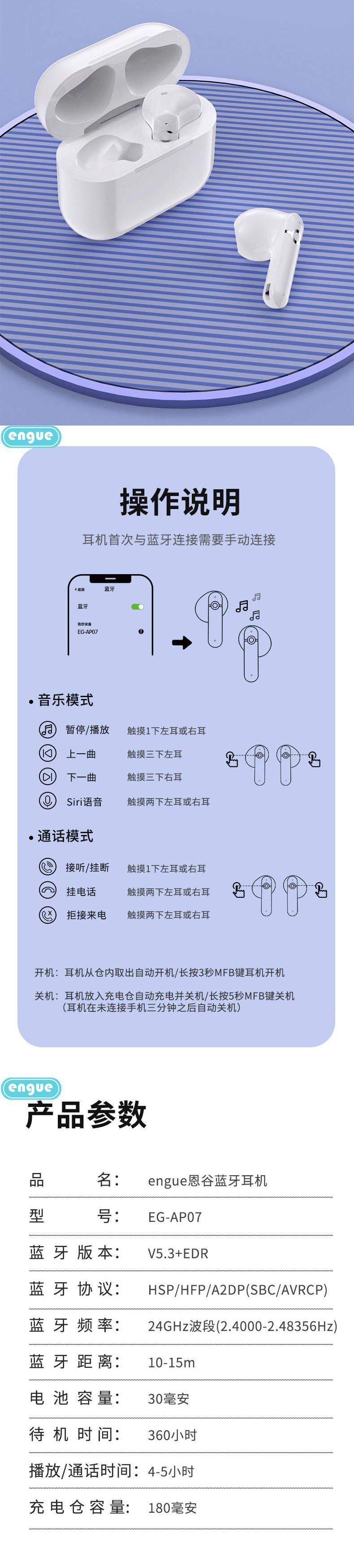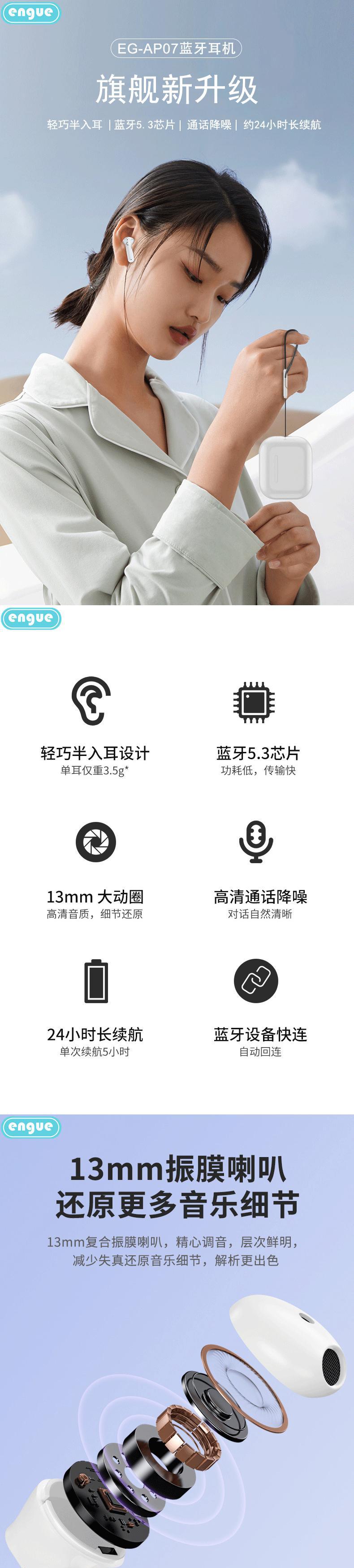【自营】engue恩谷 TWS 双耳真无线蓝牙耳机EG-AP07迷你半入耳开盖即连久戴不痛