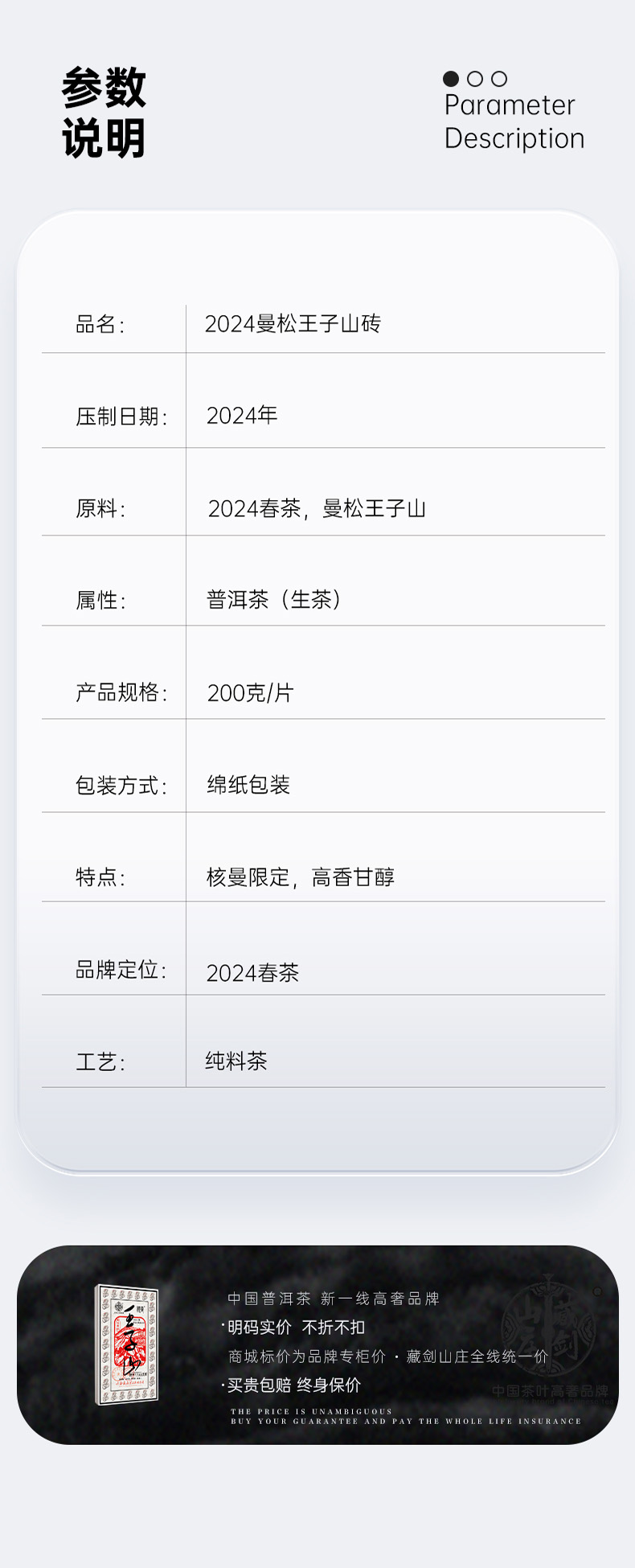 【藏剑山庄】云南普洱茶生茶 2024年春茶 核曼® 核心曼松王子山纯料!200克/砖!