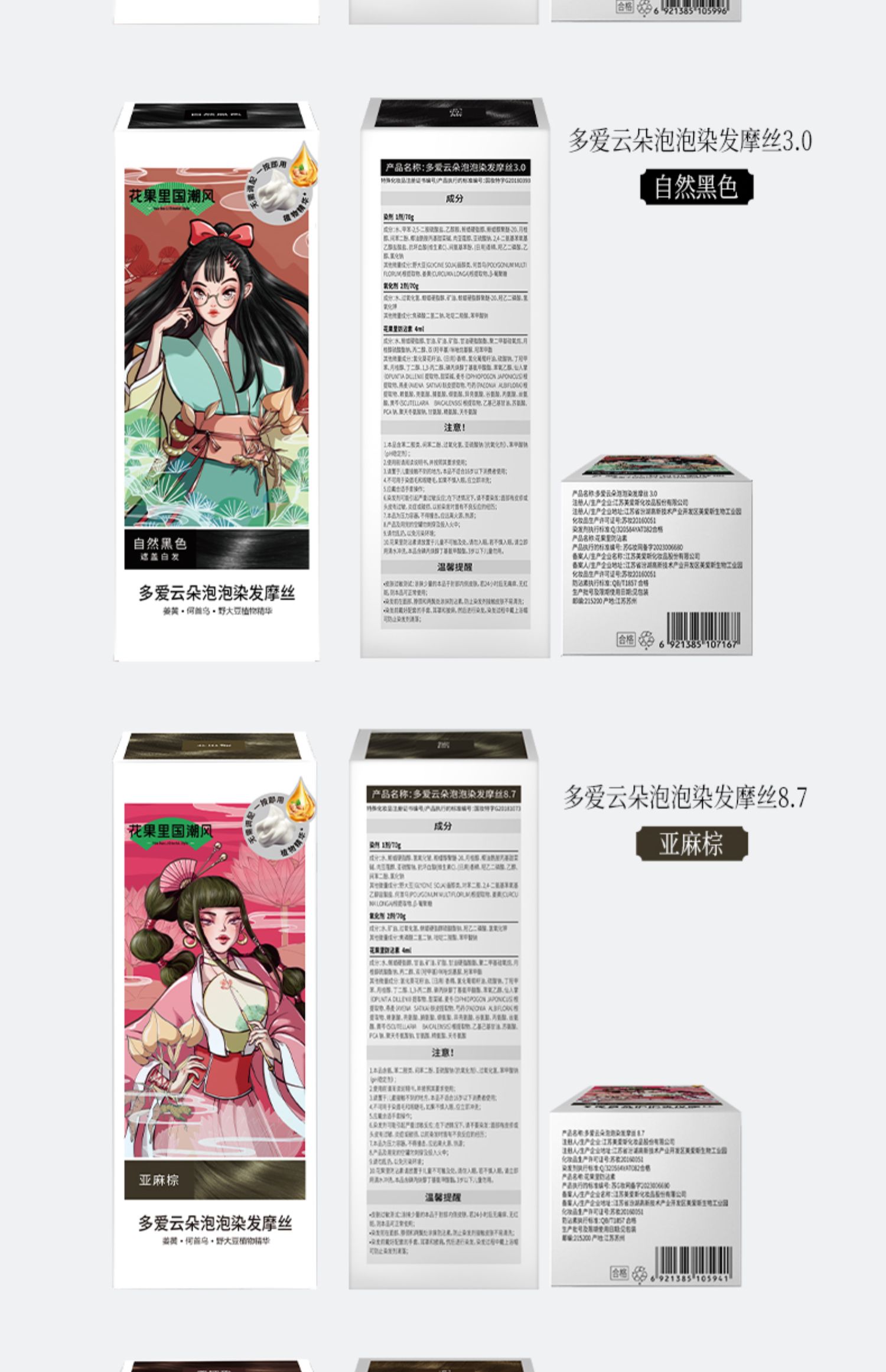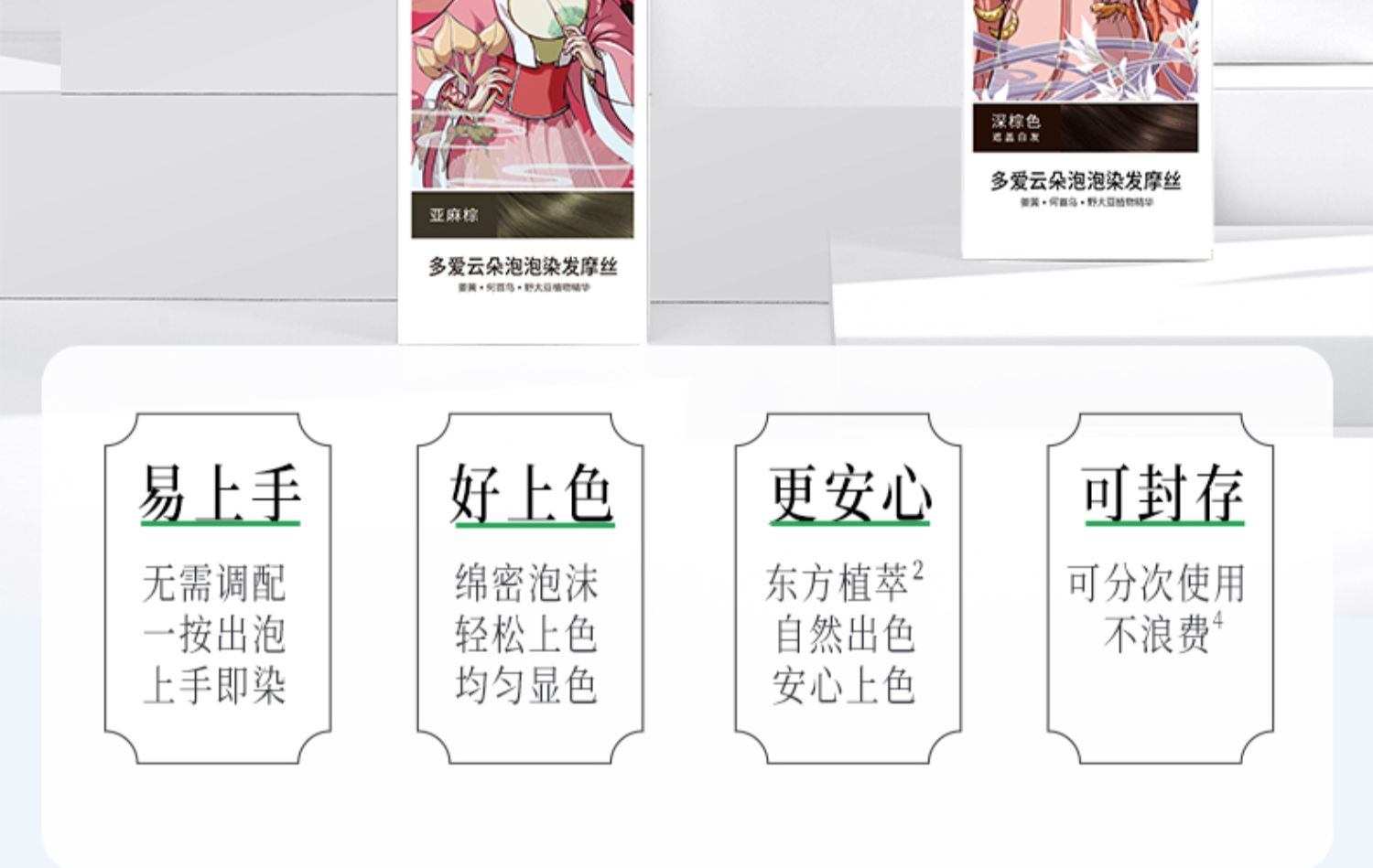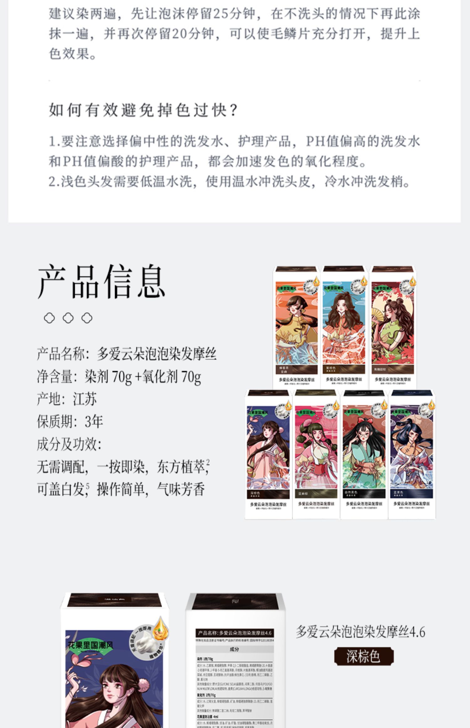 Body In Joy花果里多爱修护染发摩丝国潮修护染发摩丝*2(4个颜色)泡泡染发剂自己在家染