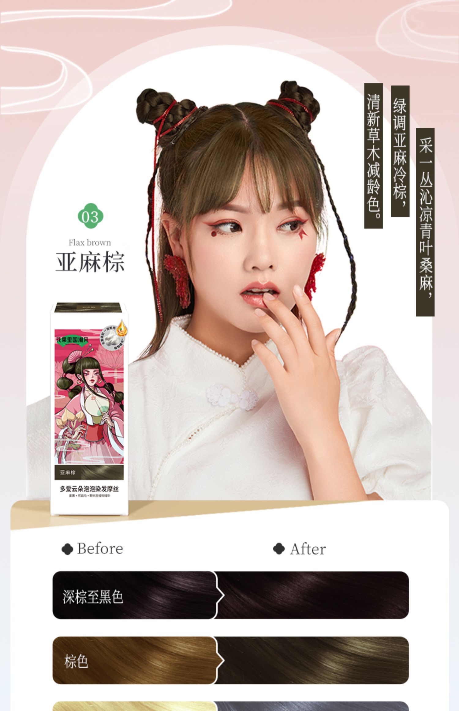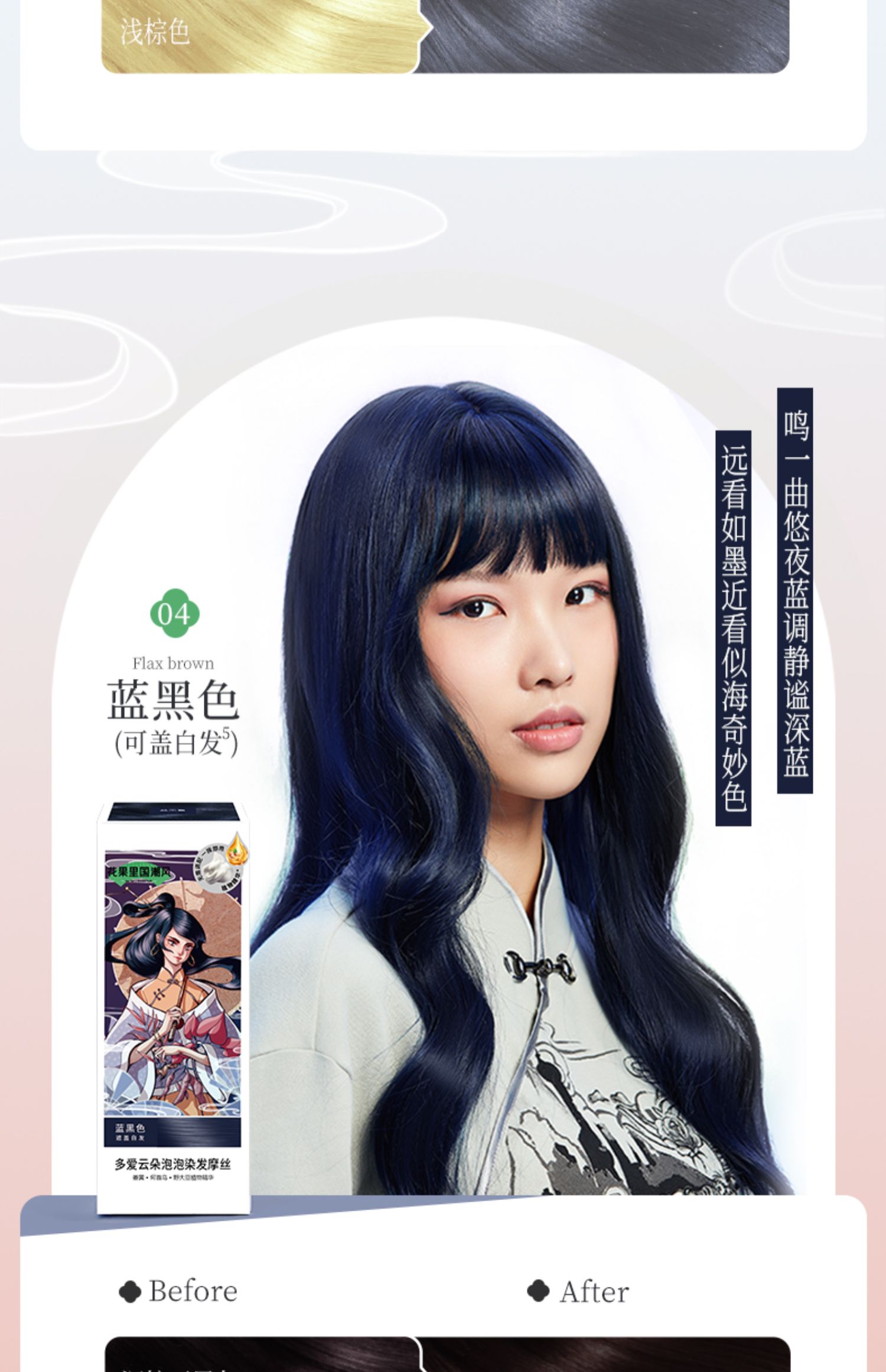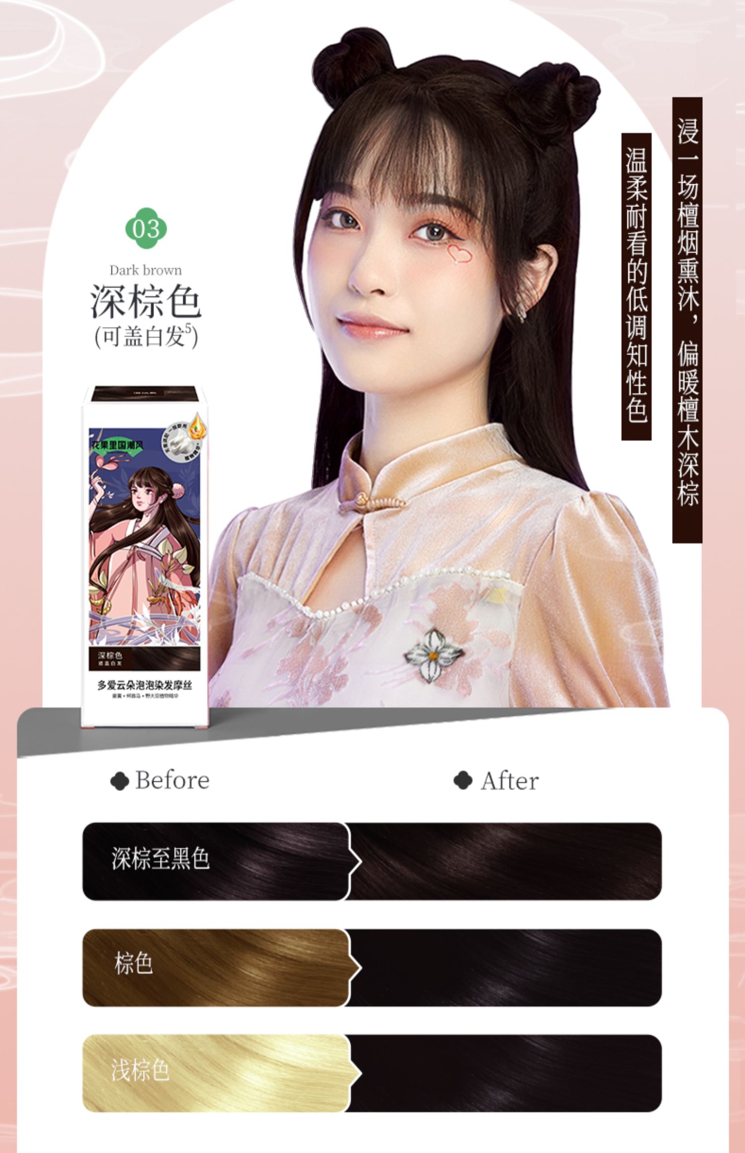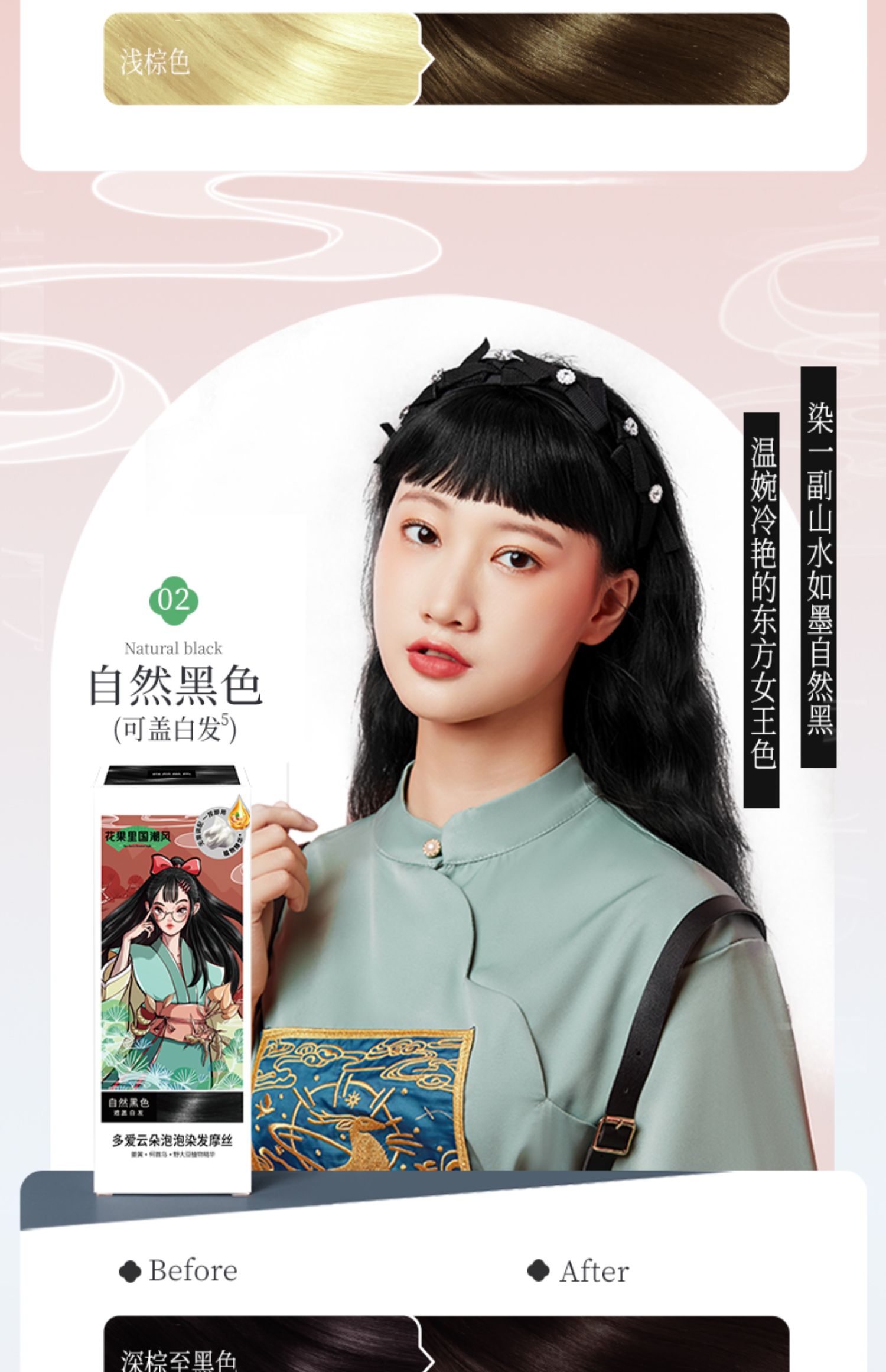 Body In Joy花果里多爱修护染发摩丝国潮修护染发摩丝*2(4个颜色)泡泡染发剂自己在家染