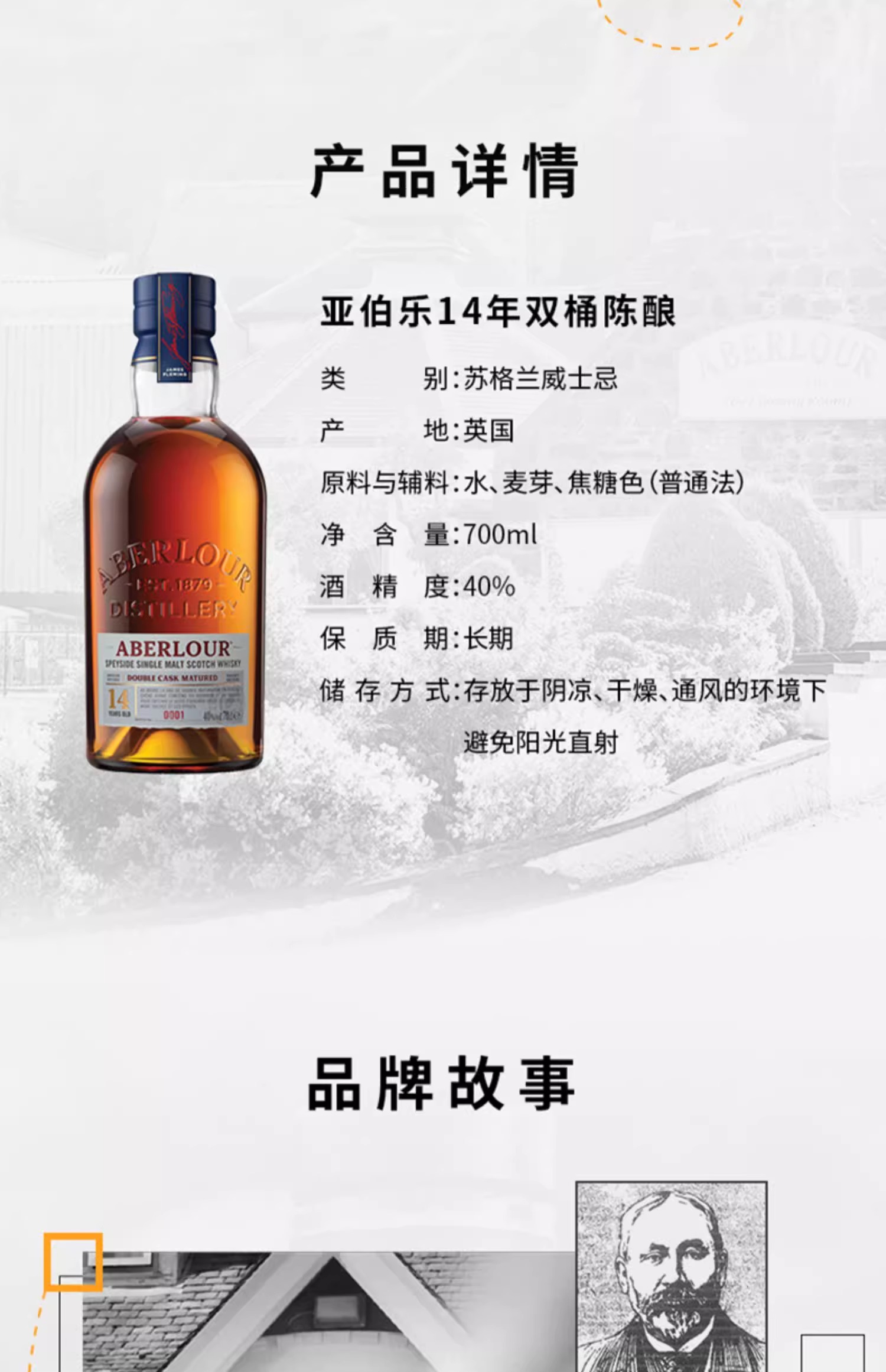 亚伯乐斯佩塞单一麦芽威士忌14年双桶陈酿700ml*1