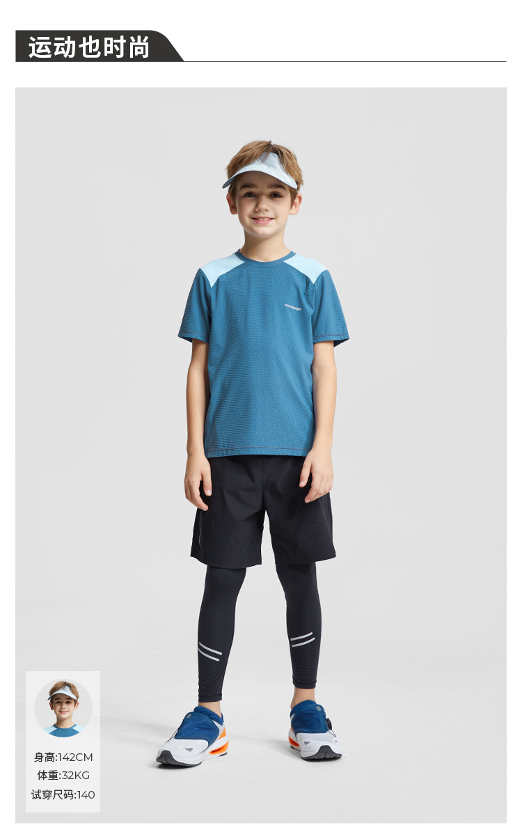 【24年夏新品】moodytiger男童假两件长裤春秋新款打底裤柔软弹力运动裤| 小云朵 M02111501