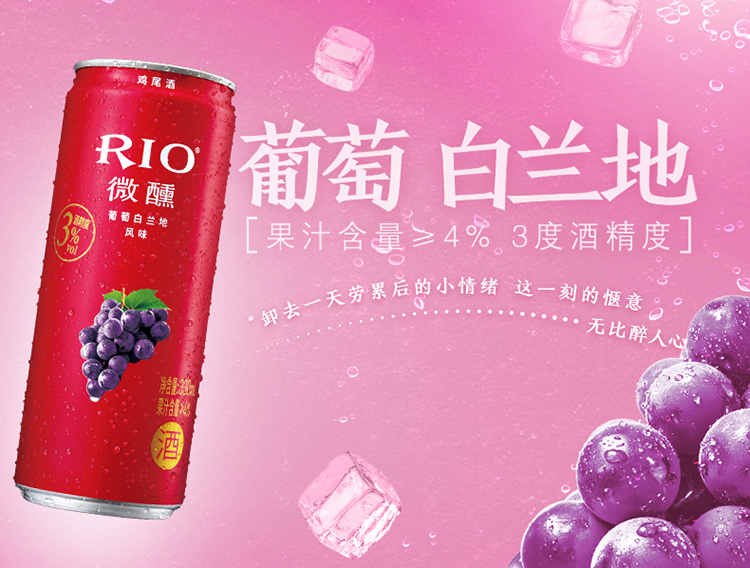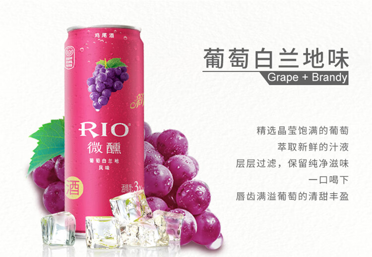 锐澳(RIO) 葡萄白兰地味鸡尾酒(预调酒) 3度 330ml