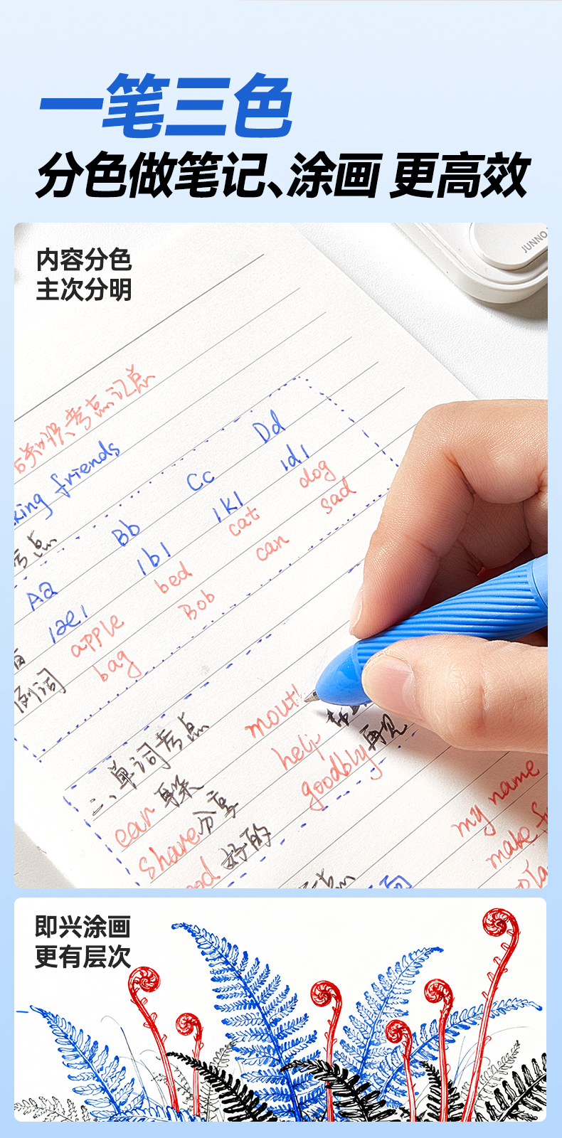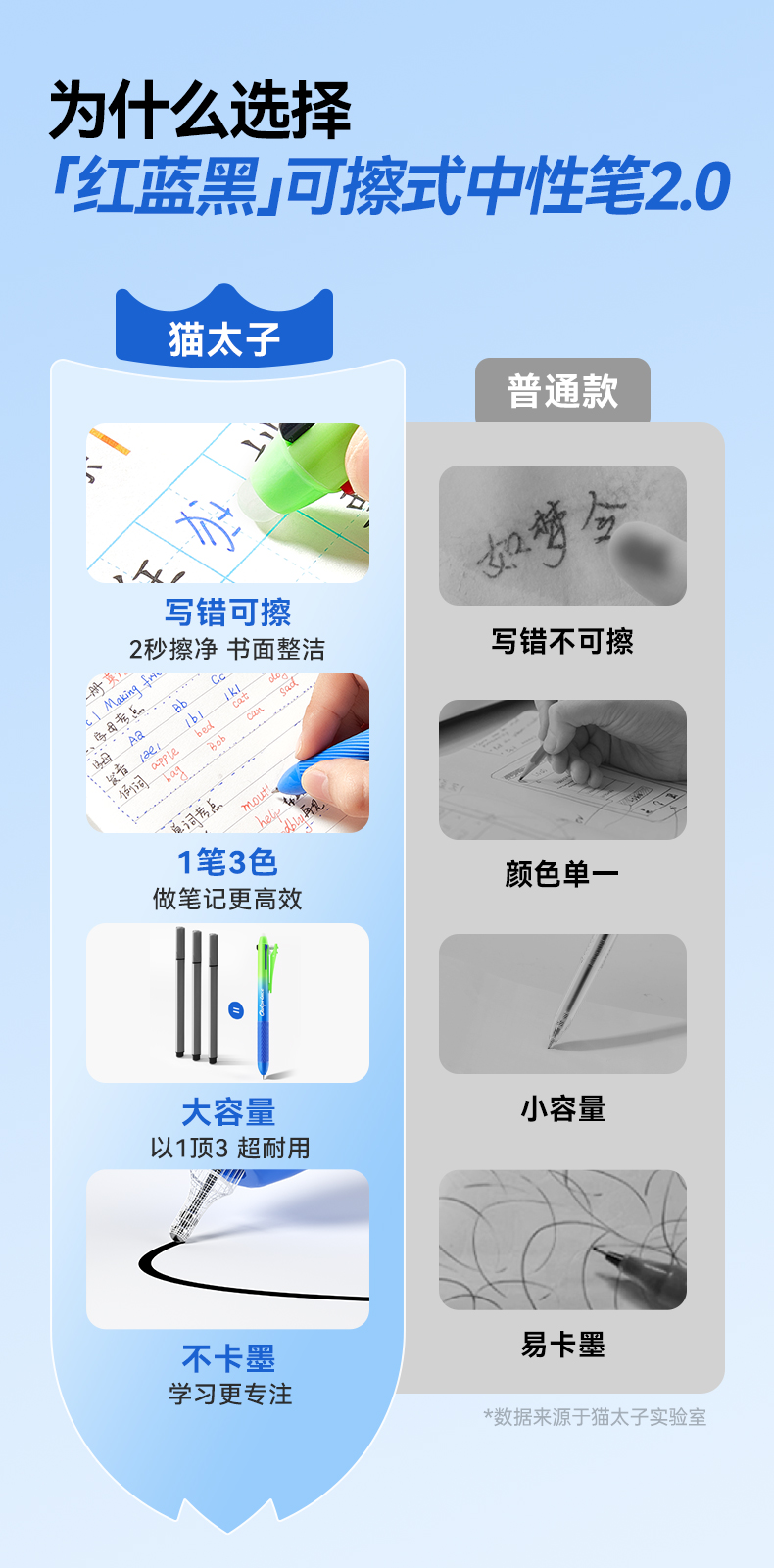 猫太子中性笔热可擦三色合一高颜值彩色蓝红色水笔黑小学生笔记热敏专用多色文具2025超火笔芯神器橡皮三色笔