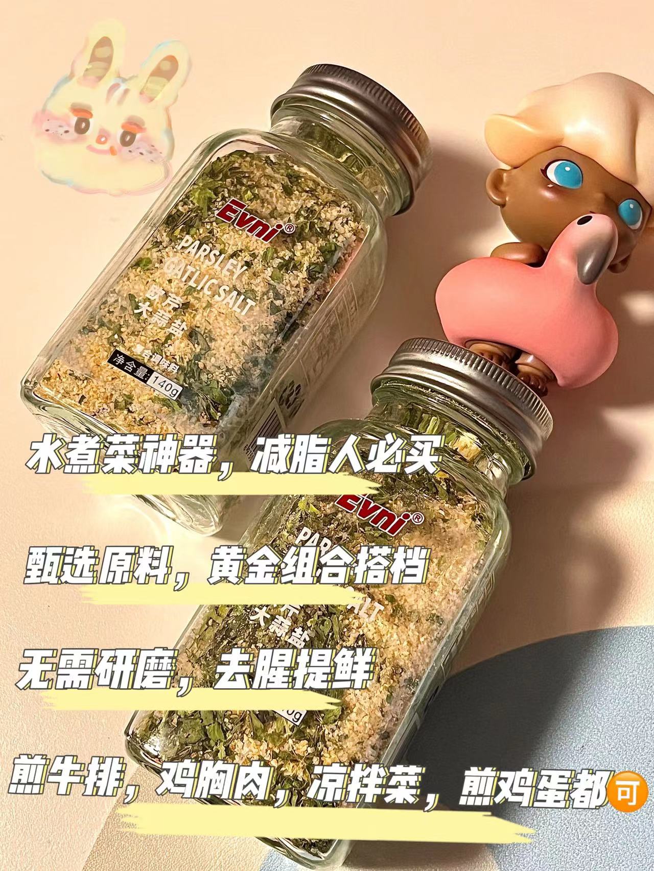 【Evni欧芹大蒜盐140g】🌟减脂人必买‼️水煮菜神器,一瓶让减脂餐立马变好吃的调料!加在鸡胸肉、凉拌菜、煎牛排、鸡蛋......都变得巨巨巨好吃