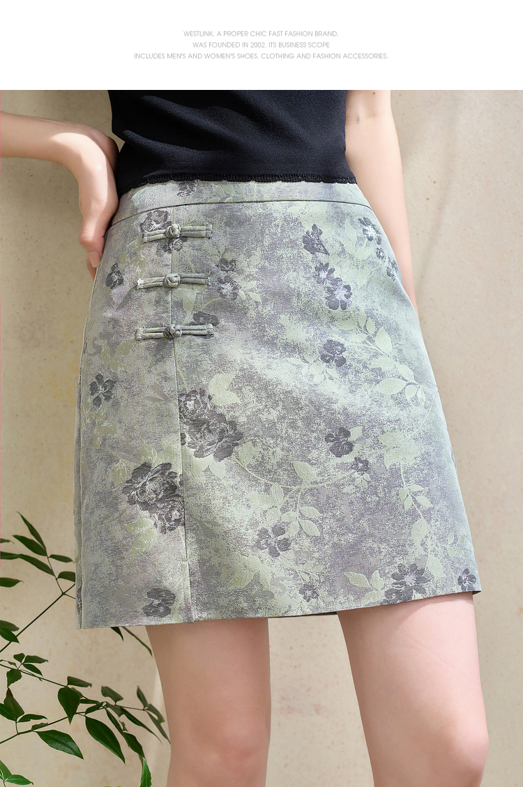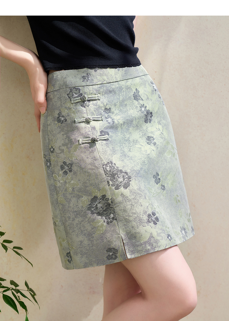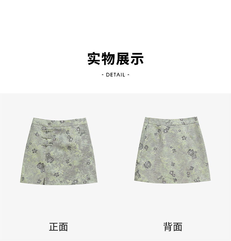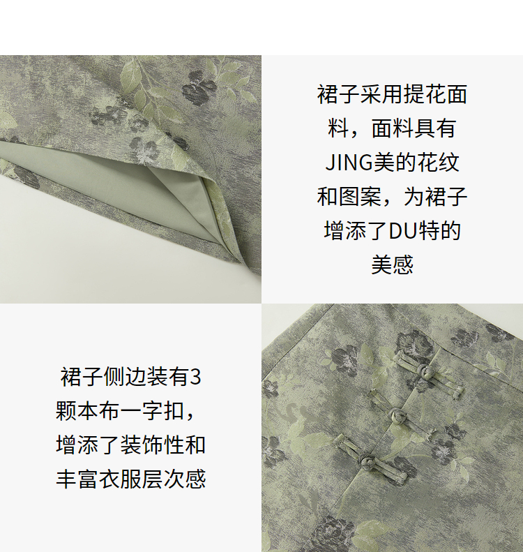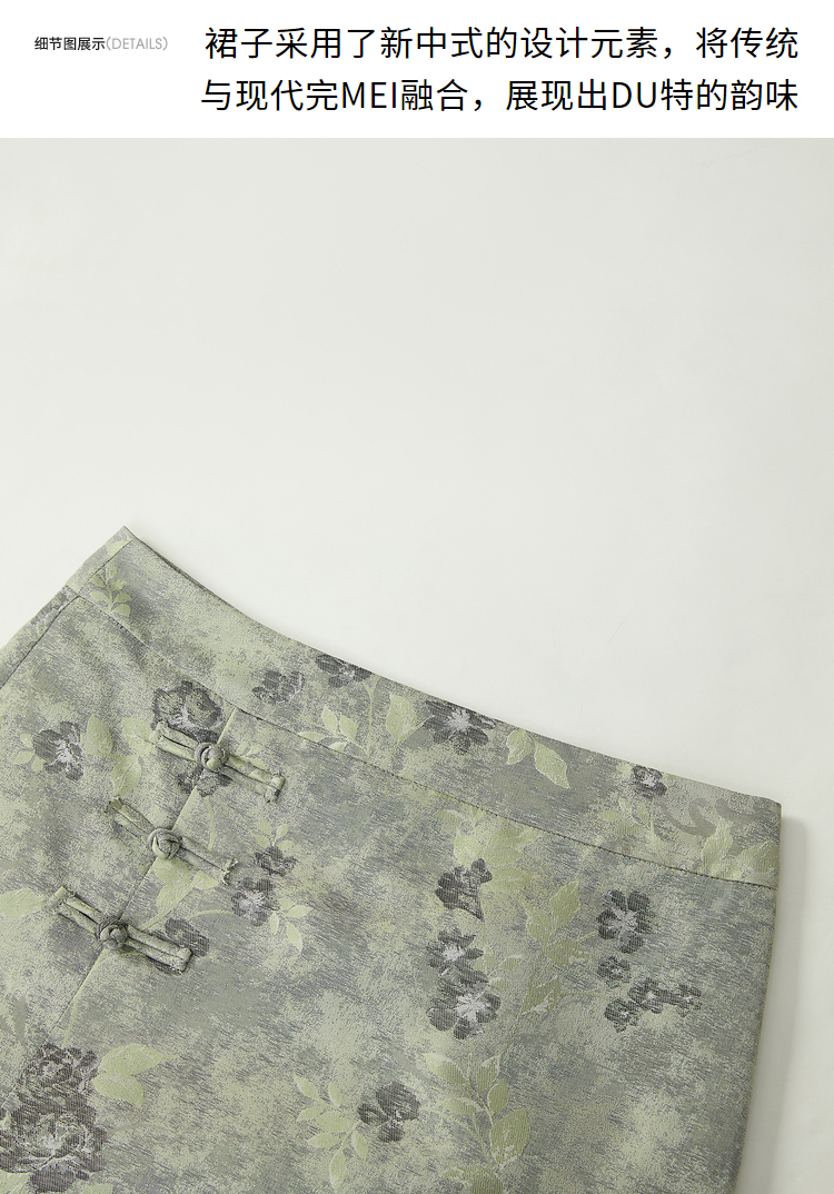 新中式国风重工提花一字扣半身裙女开叉直筒裙V2742130